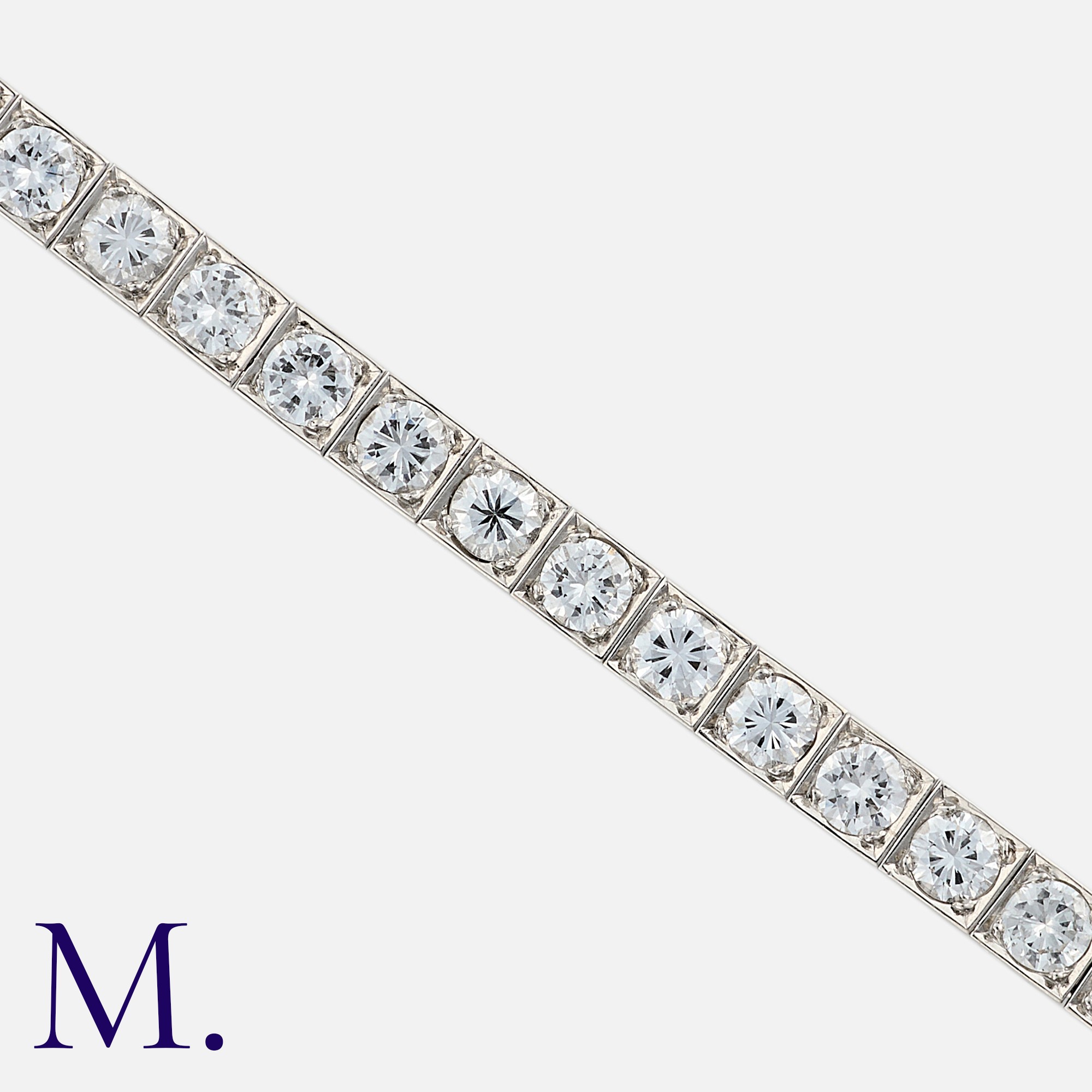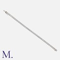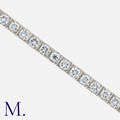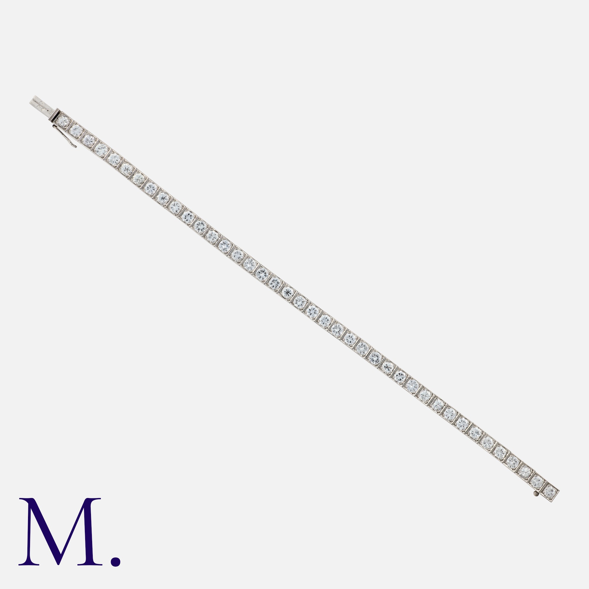 A French Diamond Line Bracelet in platinum, set with approximately 9.00 carats of round cut diamonds. French Assay marks for platinum.