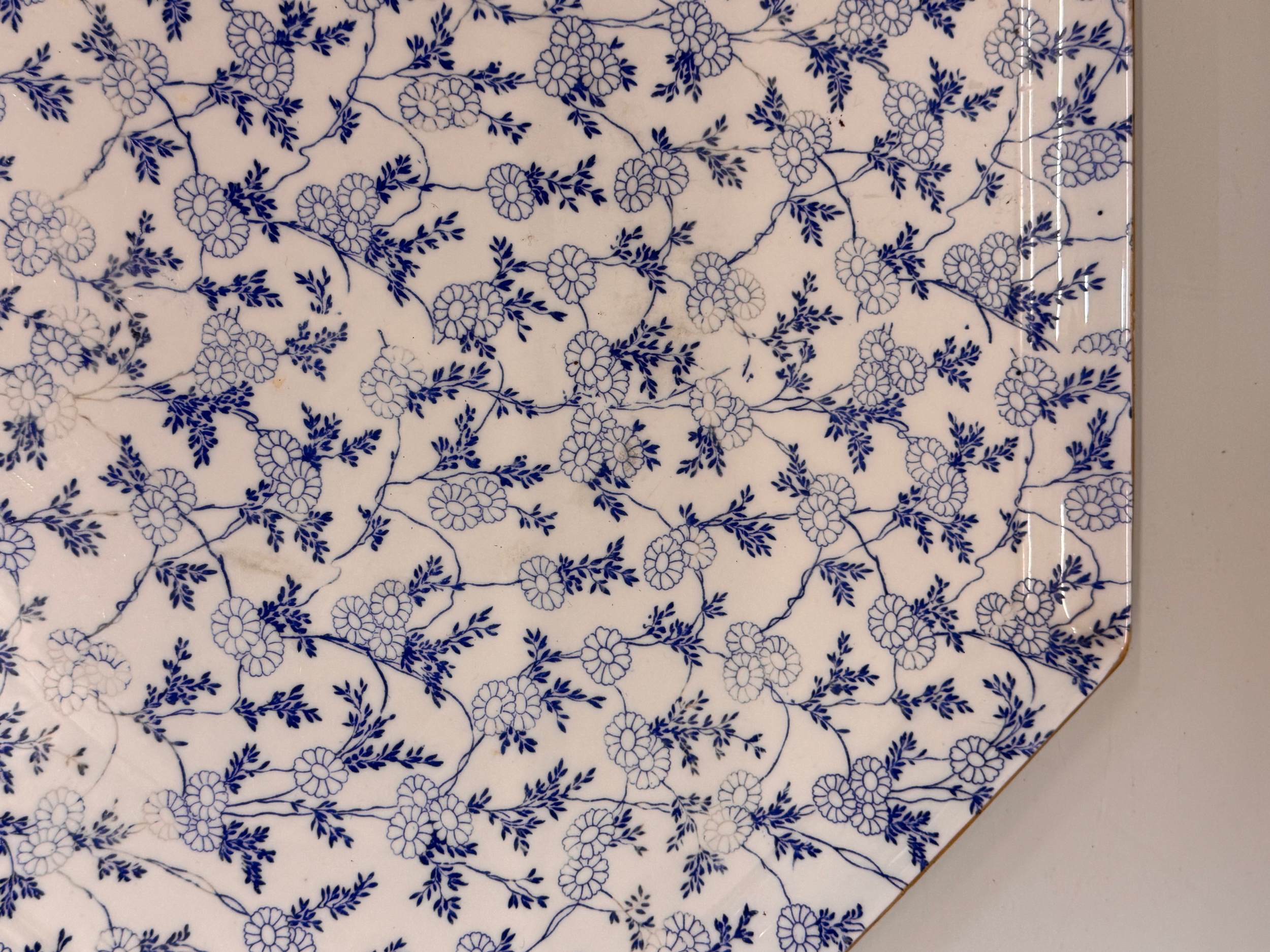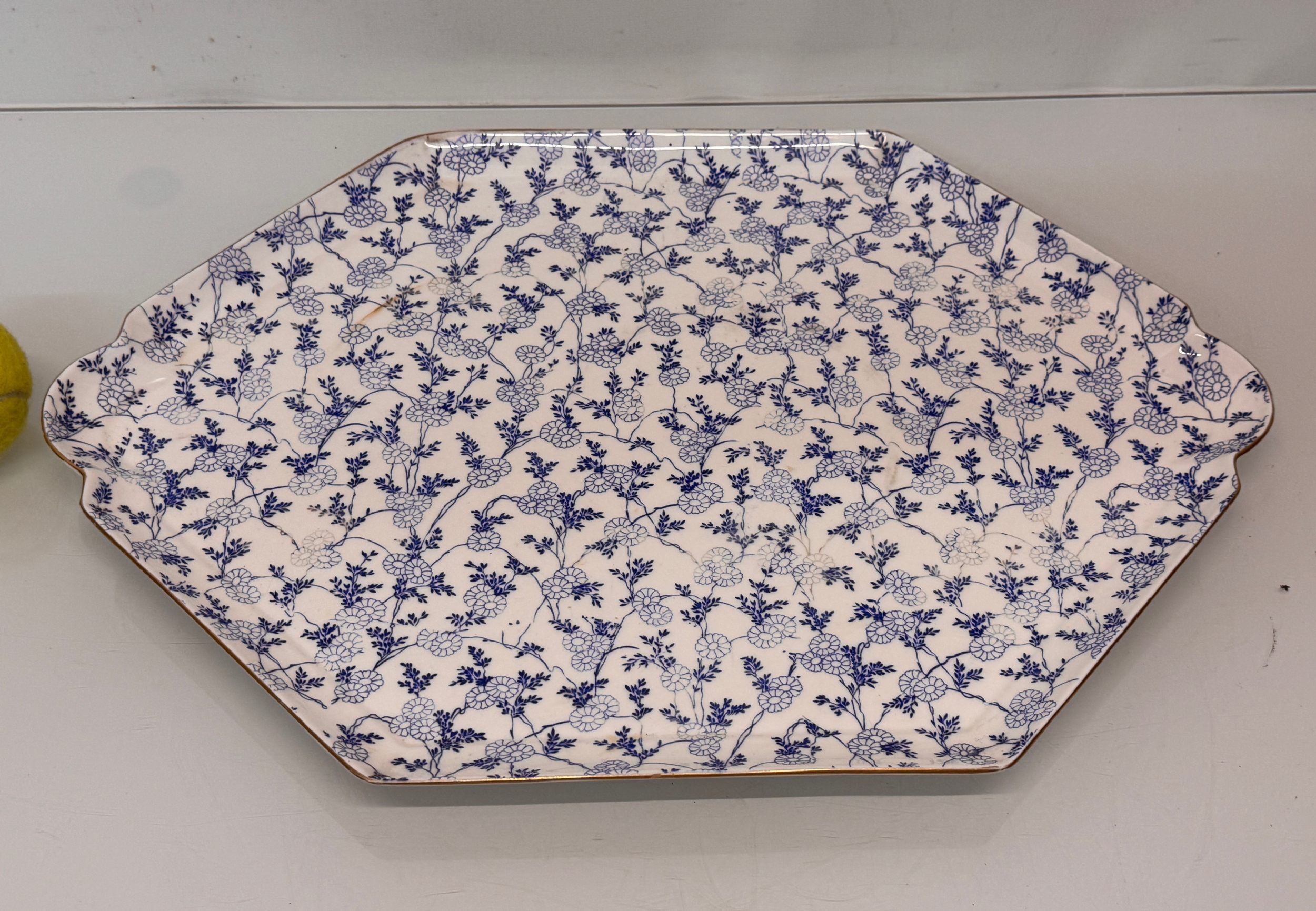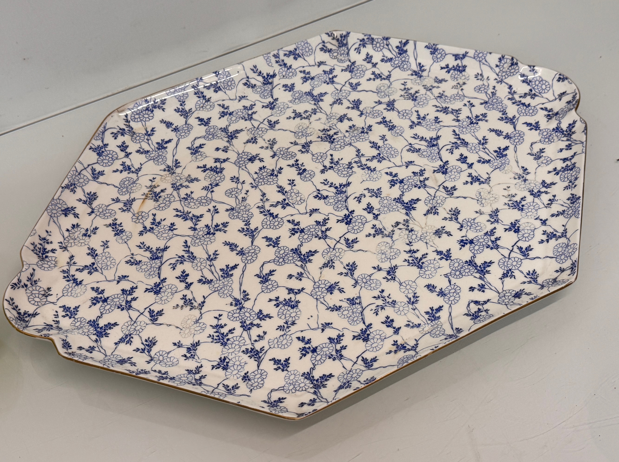 English C20th century ceramics, a large meat platter with a delicate floral design and gilded rim. 49 cm x 35 cm.