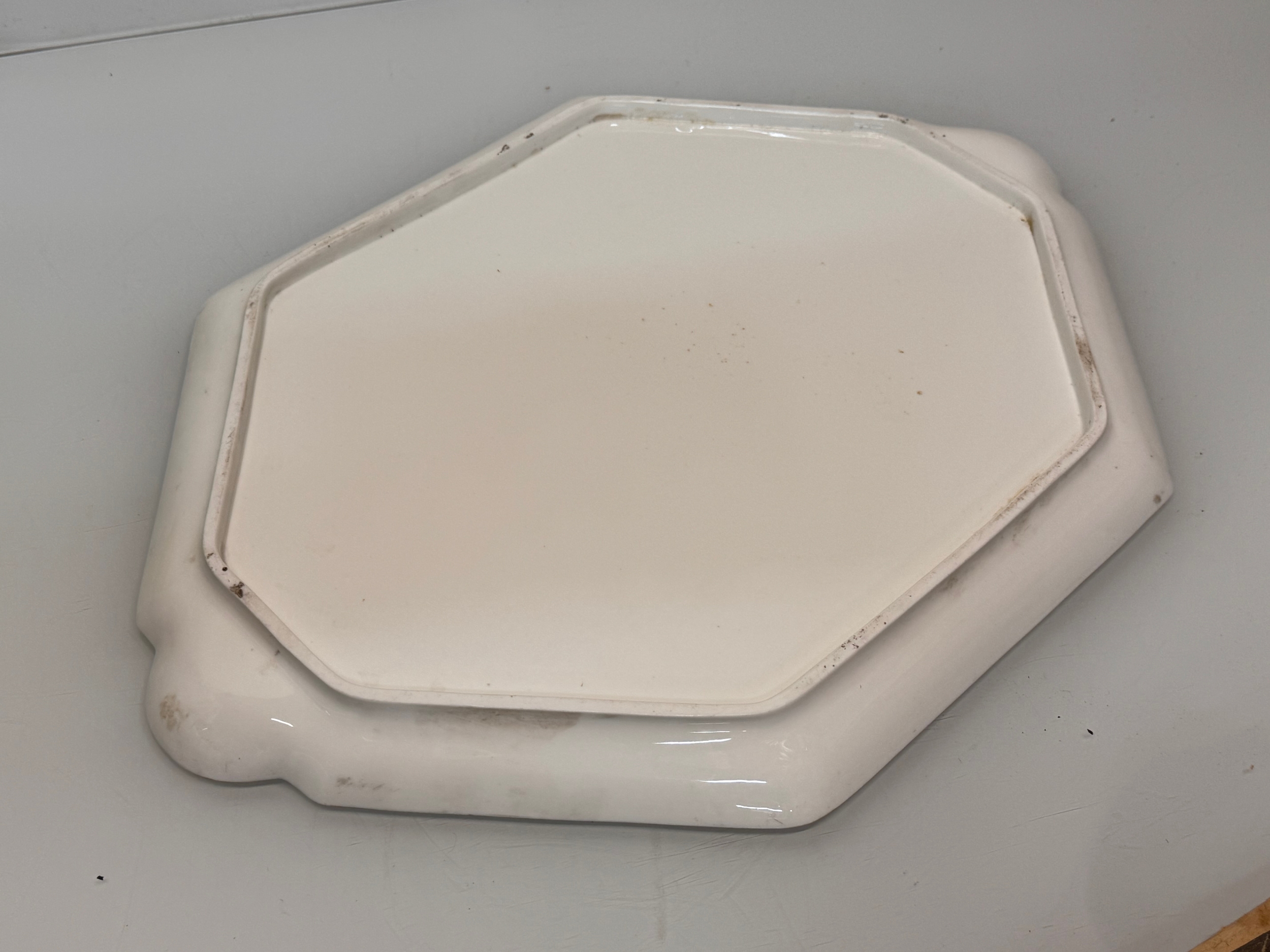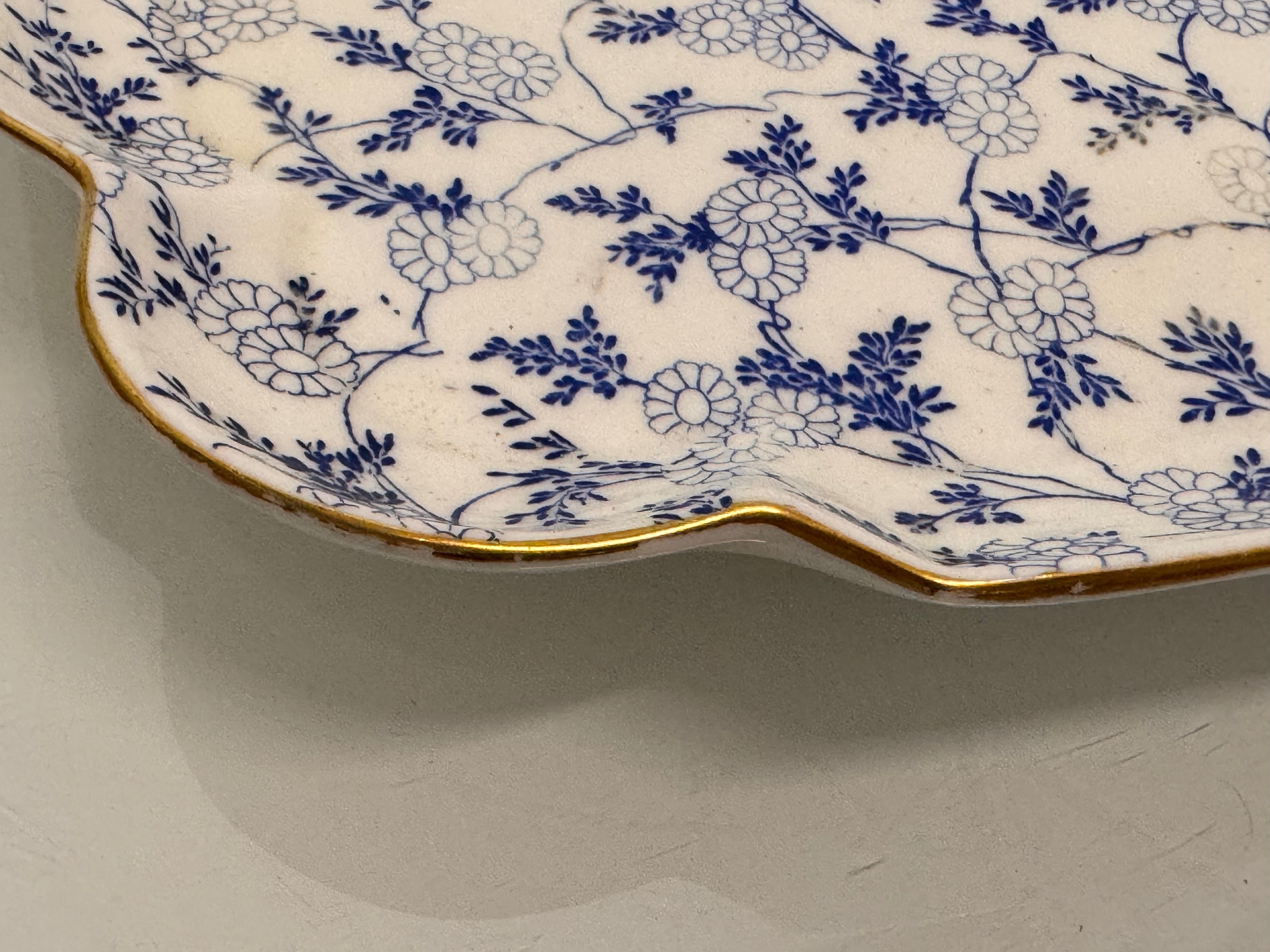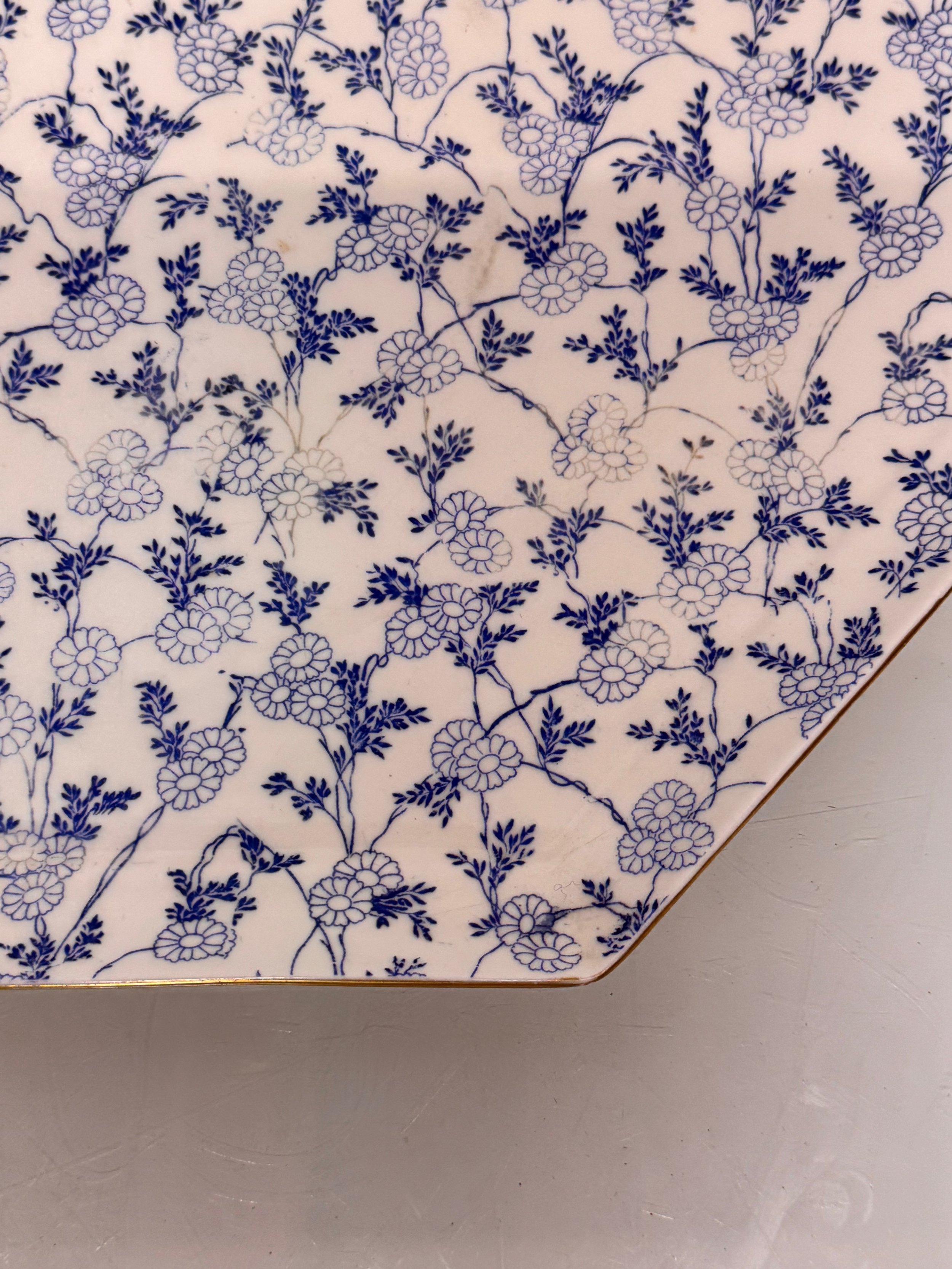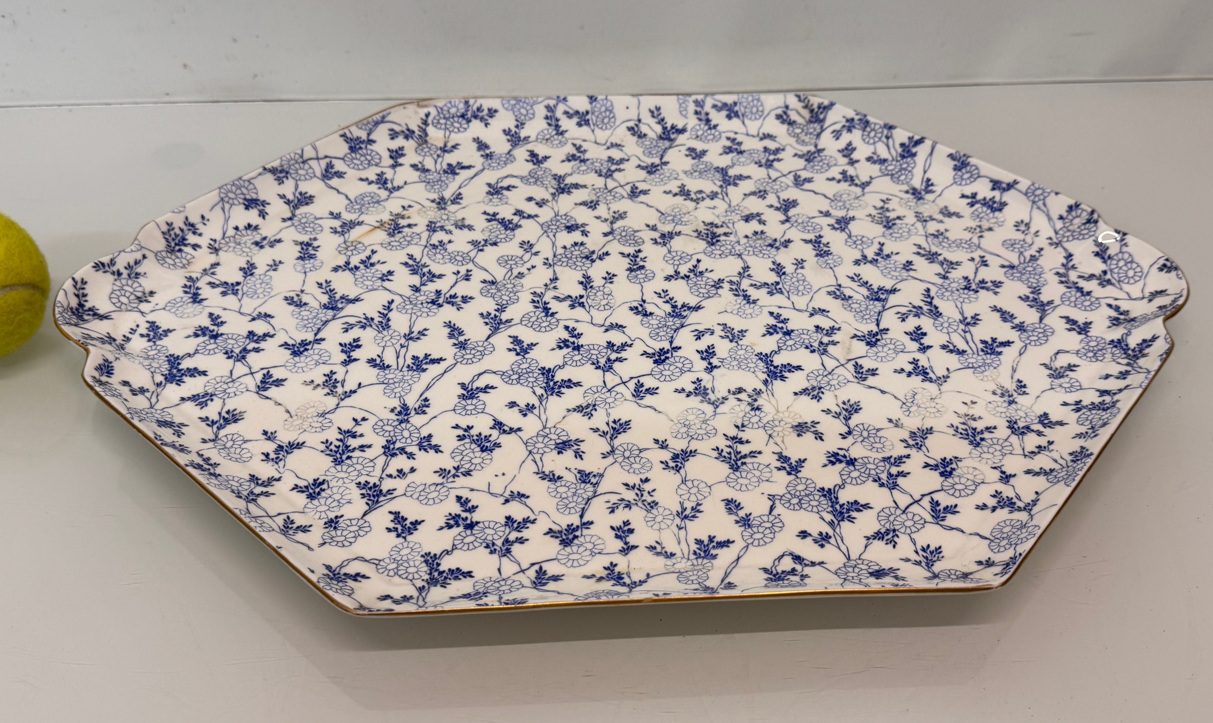 English C20th century ceramics, a large meat platter with a delicate floral design and gilded rim. 49 cm x 35 cm.