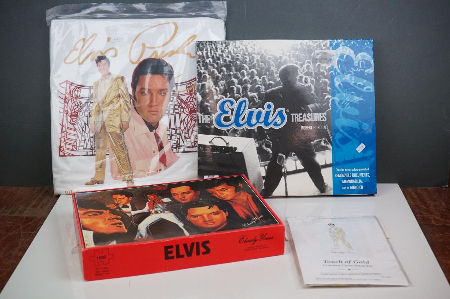 Elvis Presley memorabilia, to include Elvis Treasures, vintage jigsaw, Fruits Of The Loom Elvis T shirt etc