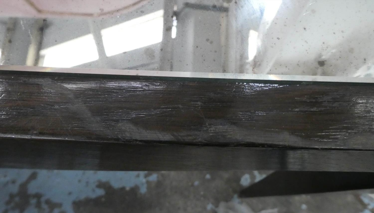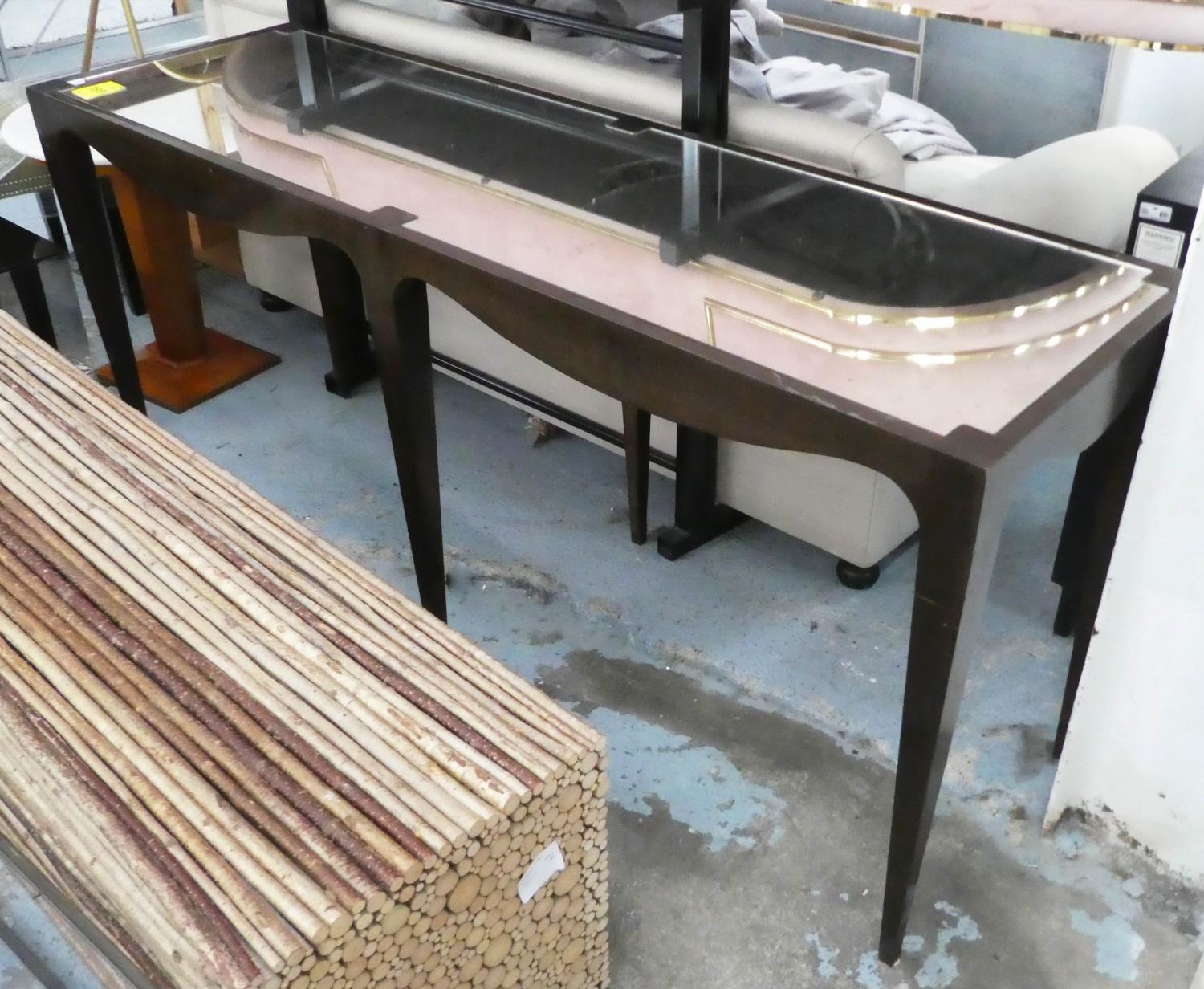 CONSOLE TABLE, 180cm x 55cm x 80cm, antiqued mirror plate top.