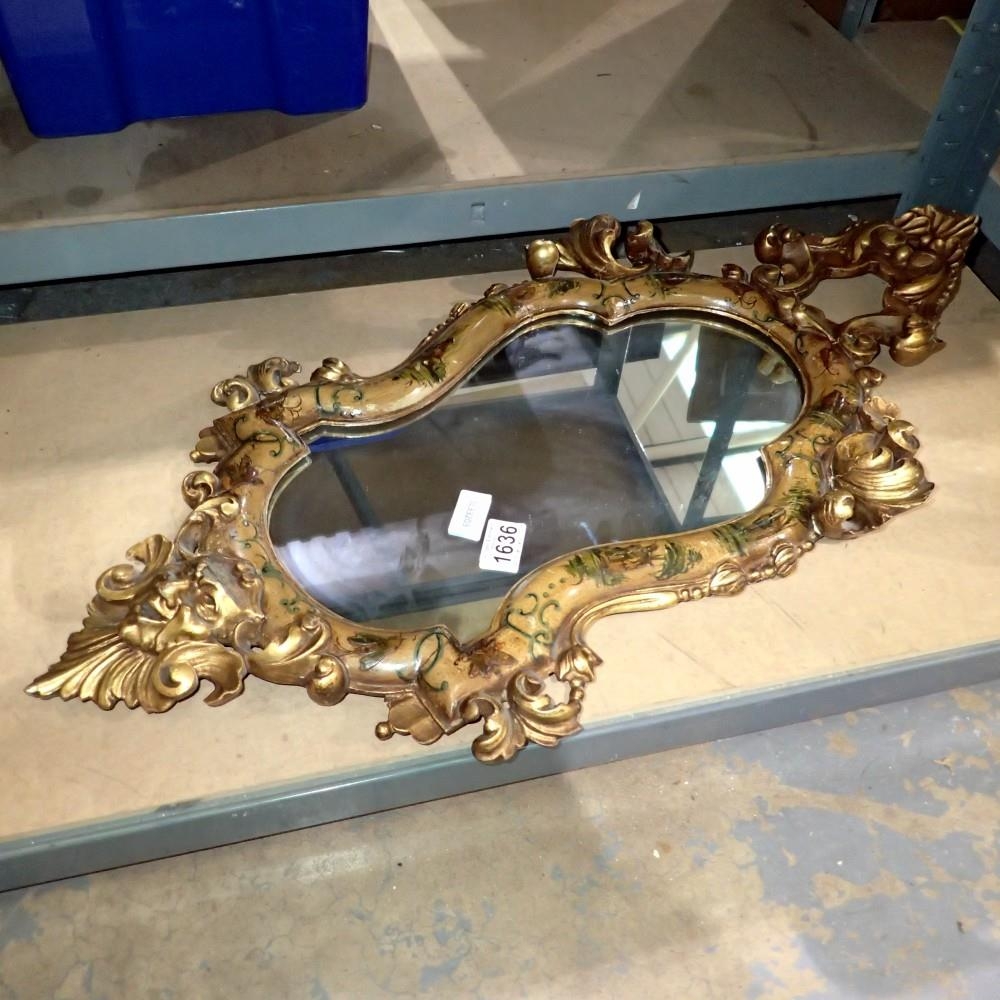 Carved gilt framed mirror, 37 x 80 cm. Not available for in-house P&P