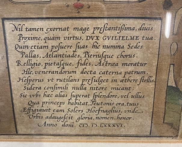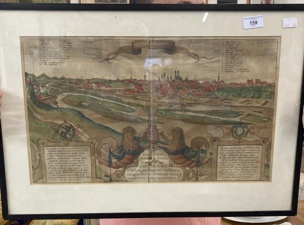 18th cent. Coloured print topographical view of Munich, framed and glazed. 19ins. x 11½ins.