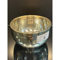 A Sheffield silver three foot serving tray, designed with a pie crust edge. Produced by Stevenson & Law. [26.5cm in diameter] [631grams]