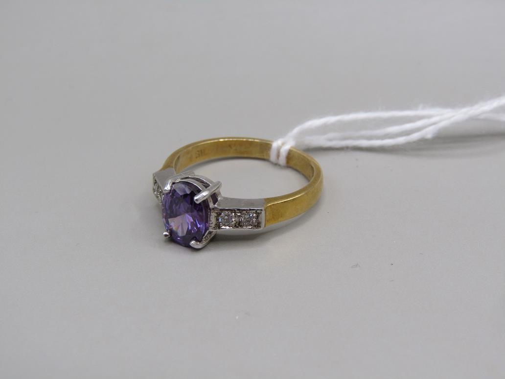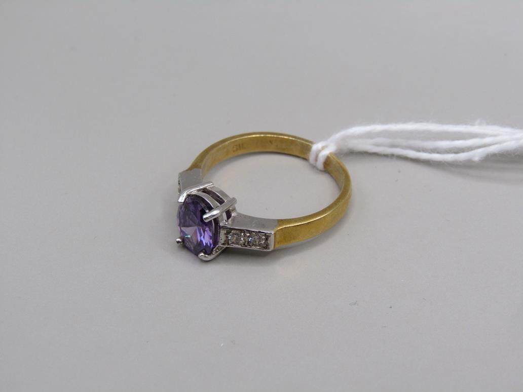 GOLD ON SILVER AMETHYST RING, SIZE P