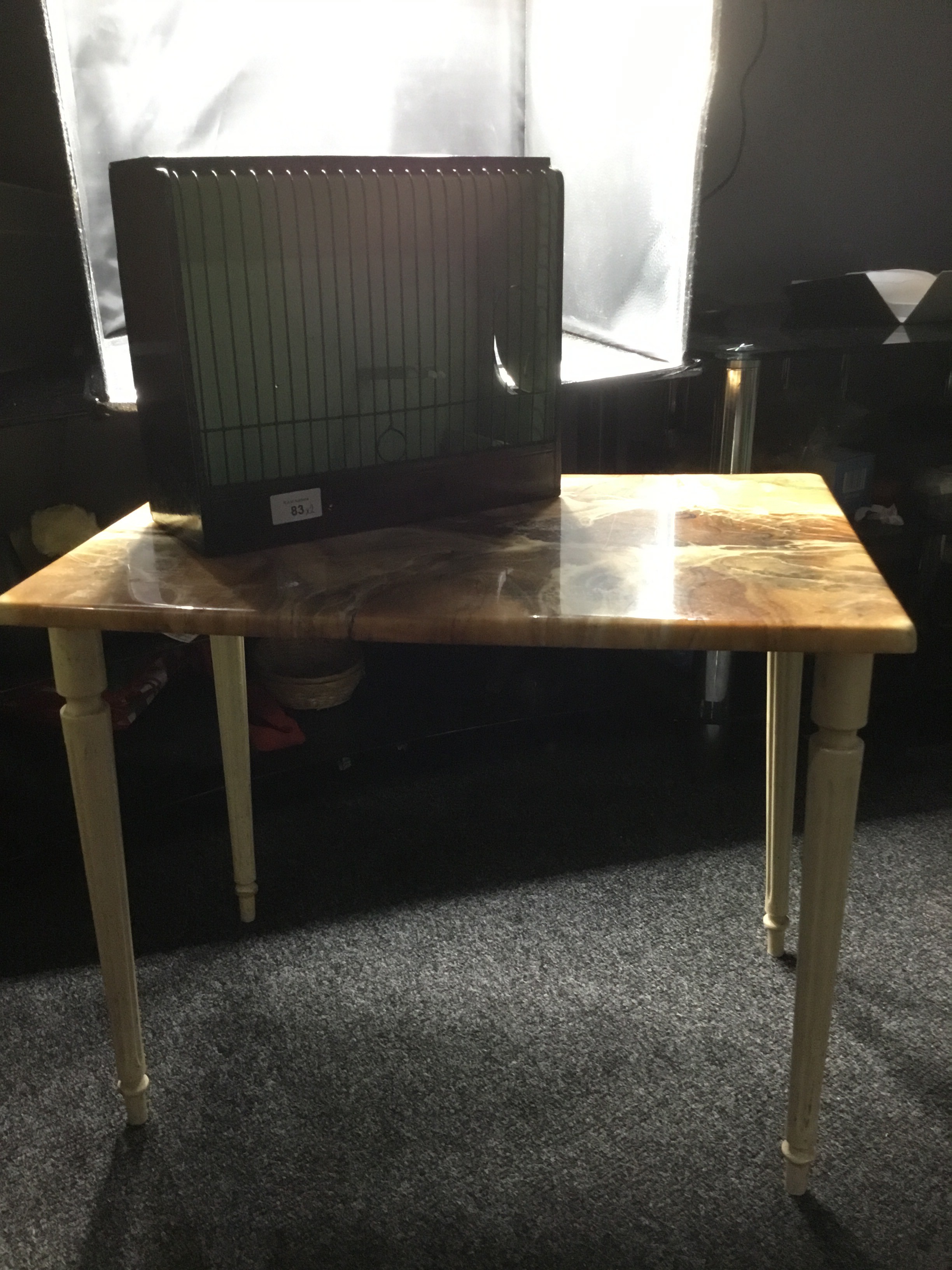 Retro Faux Marble Side Table and a Bird Transport Cage