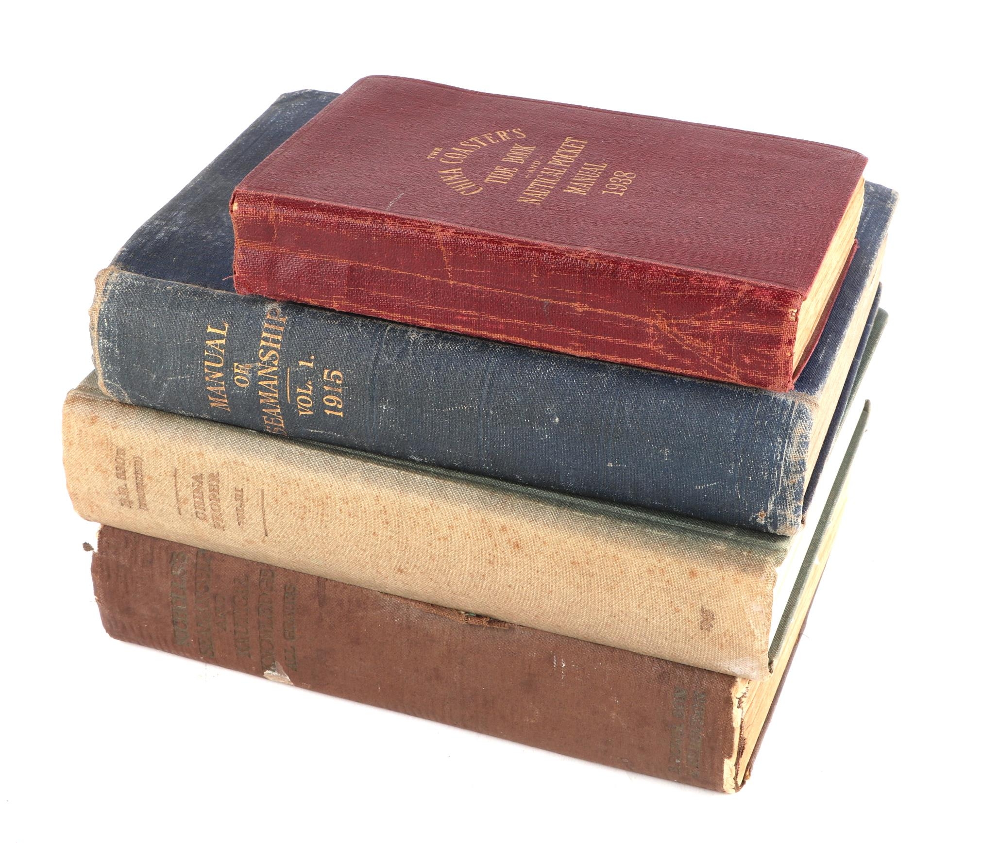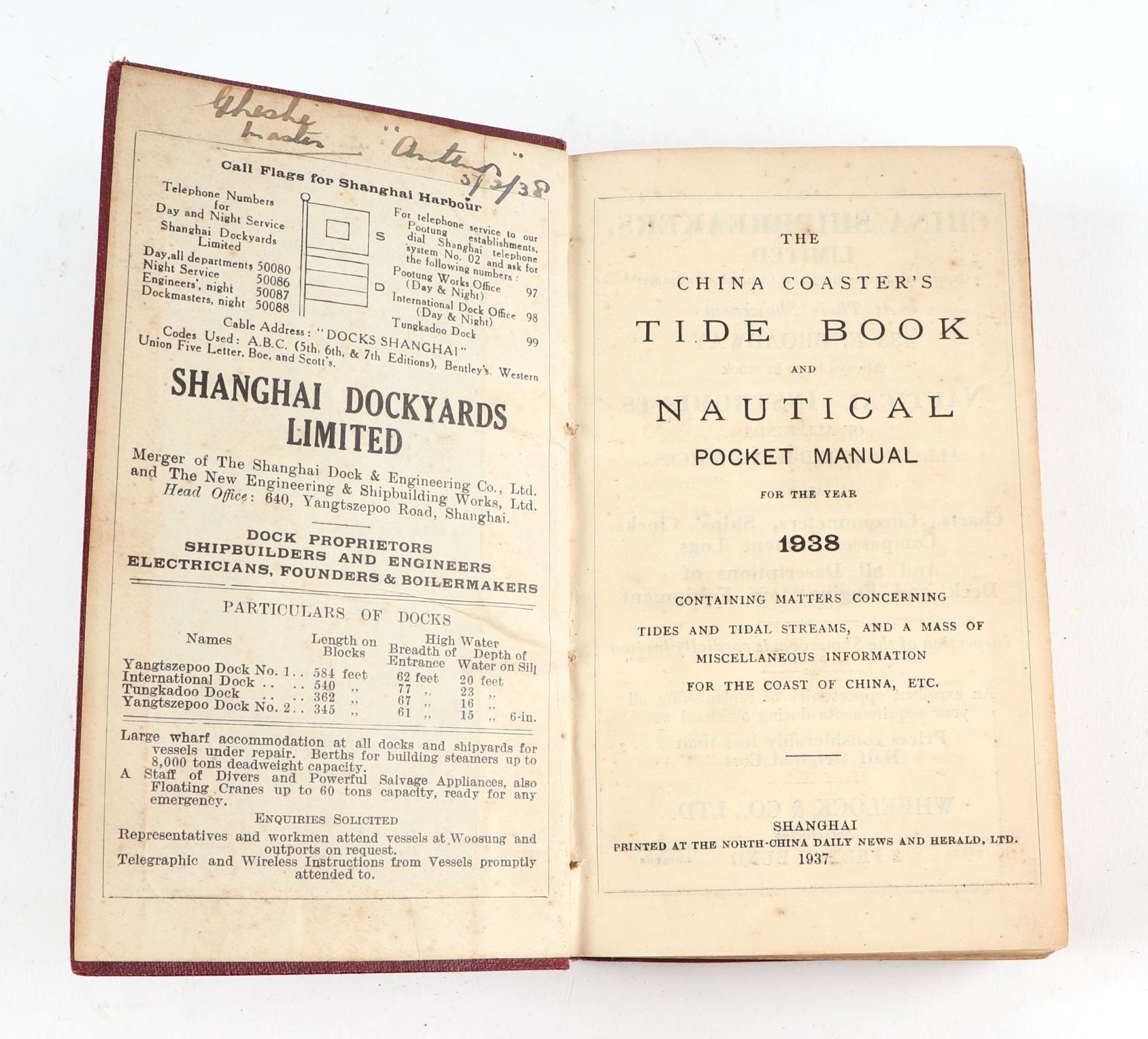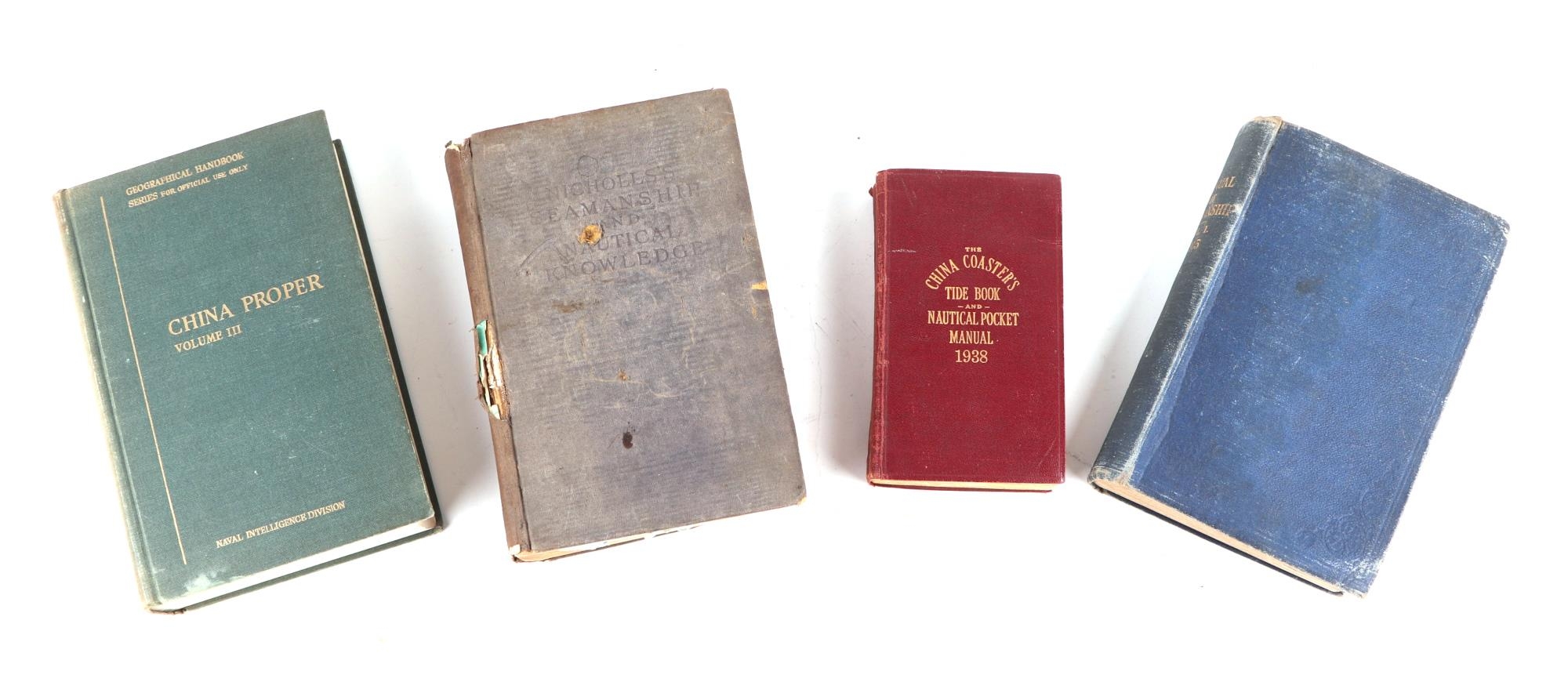 Maritime interest; the China Coasters Tide Book and Nautical Pocket Book (1938), Manual of Seamanship Vol I (1908 revised edition), China Proper Vol III geographical handbook series for official use only and Nicholl's Seamanship and Nautical Knowledge by Charles H Brown F.R.S.G.S (4).