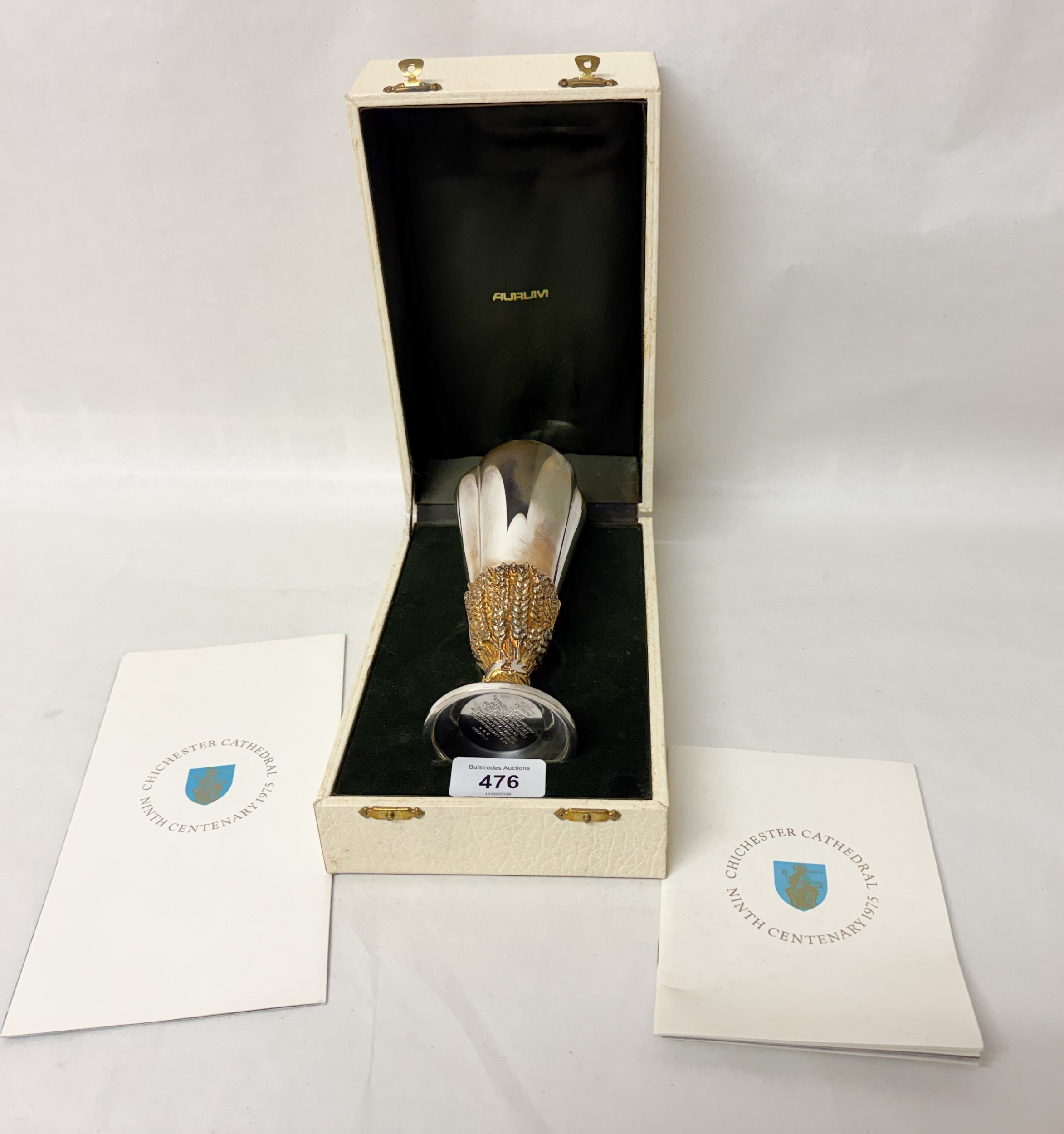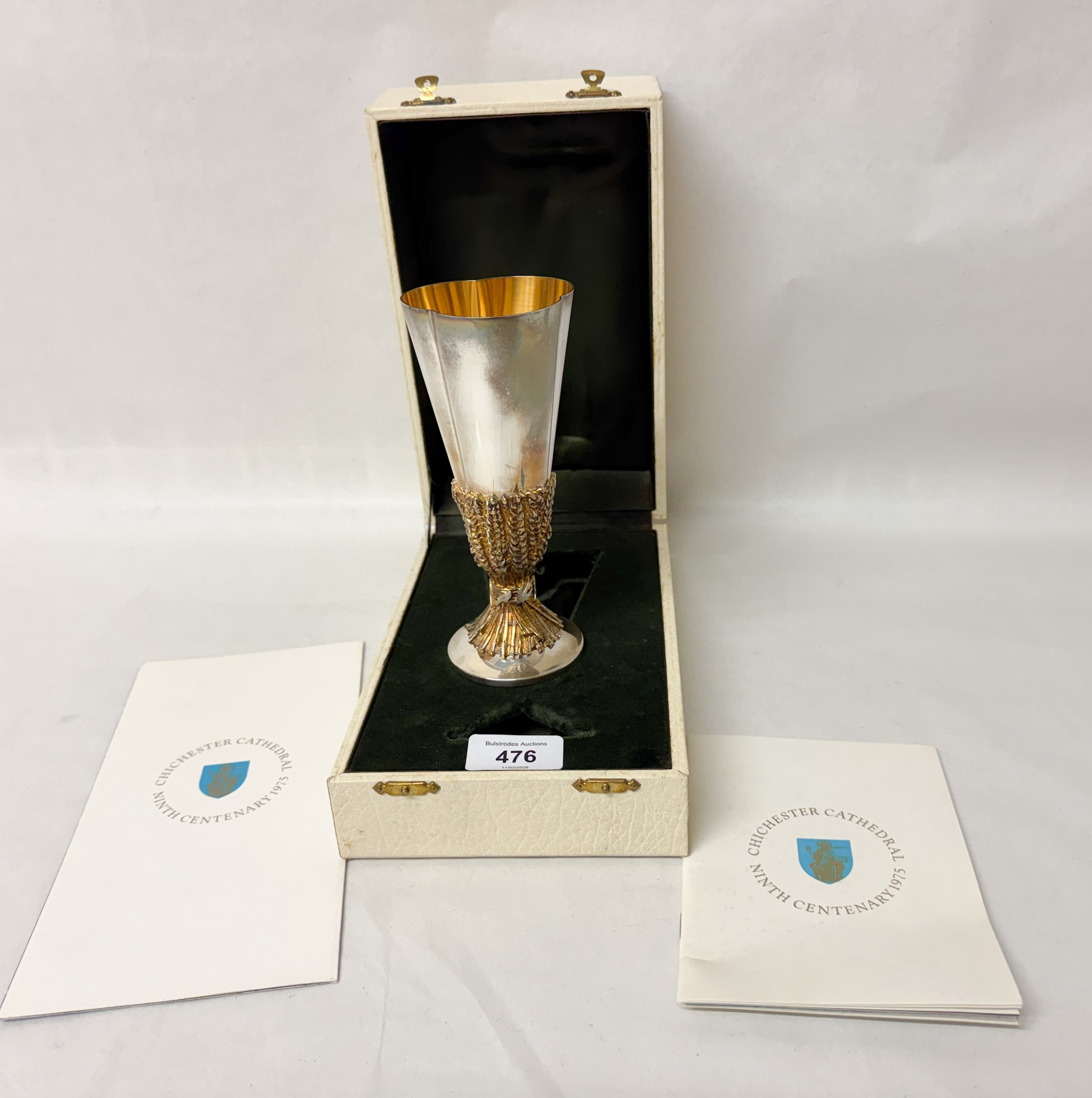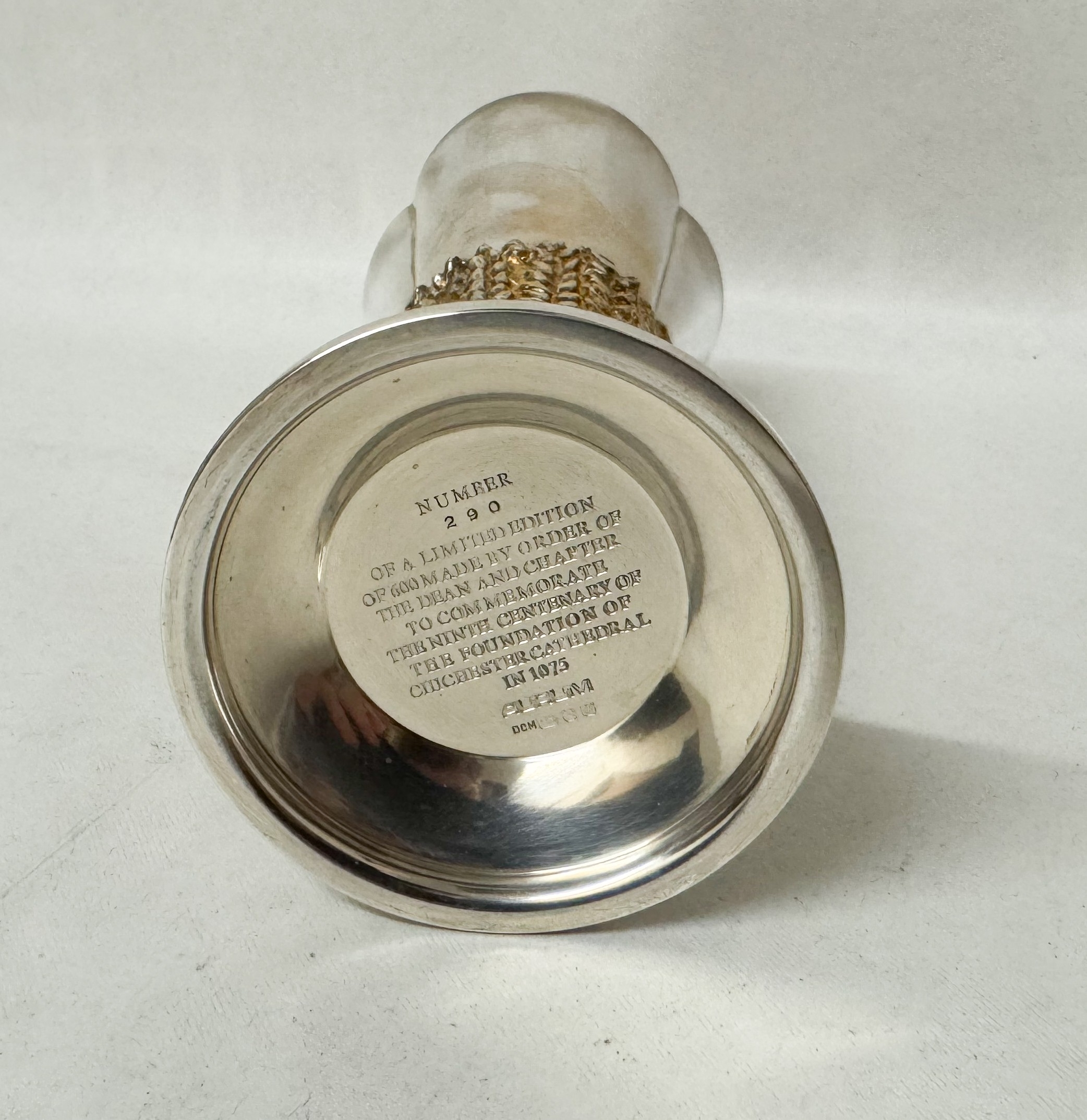 Desmond Clen-Murphy for Aurum - parcel-gilt silver goblet, Limited edition number 290 of 600. Made by order of the Dean & Chapter to commemorate the ninth centenary of the founding of Chichester Cathedral in 1075. Hallmarked London 1976. With box and certificate. Height 16.5cm, weight 10.4 troy oz