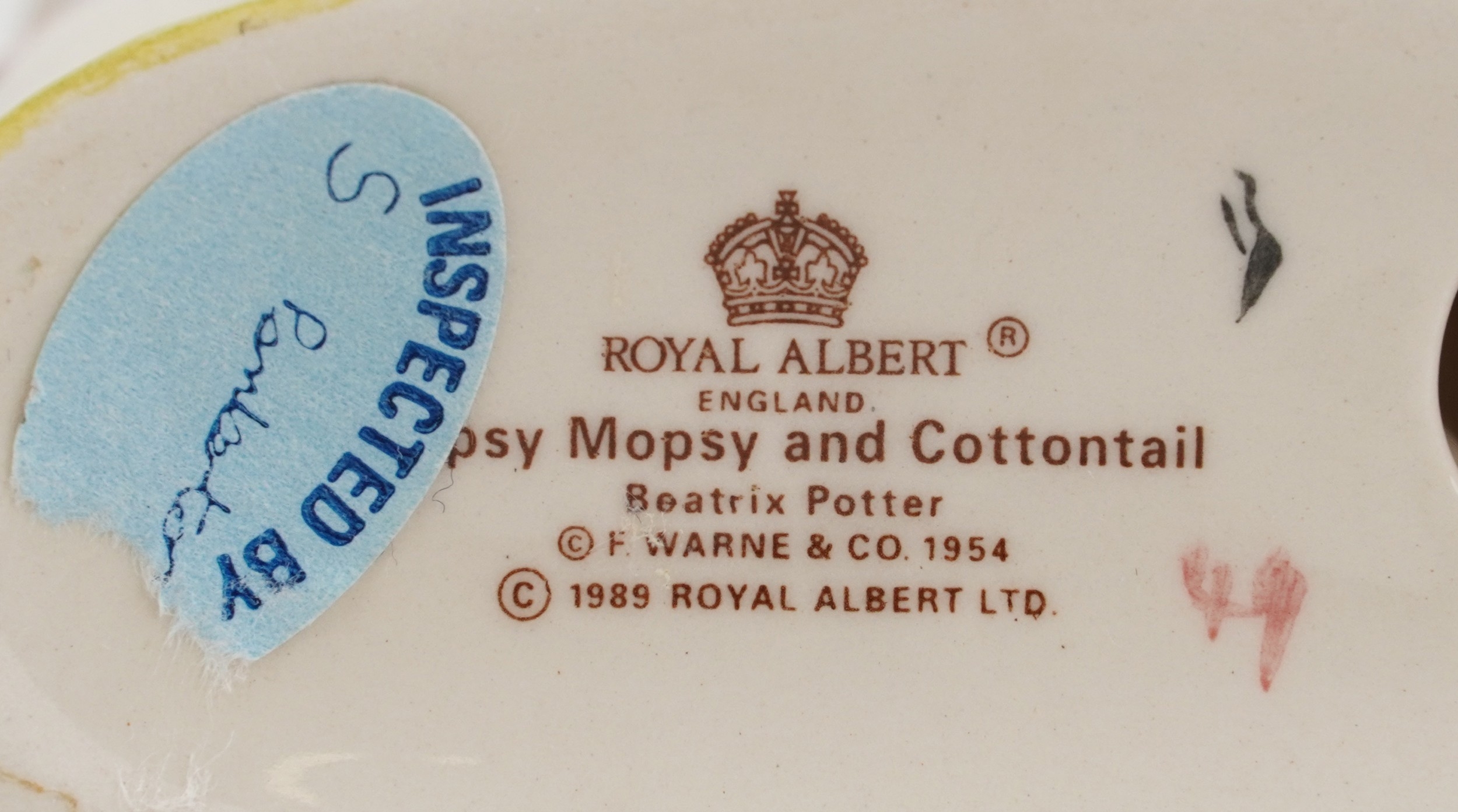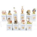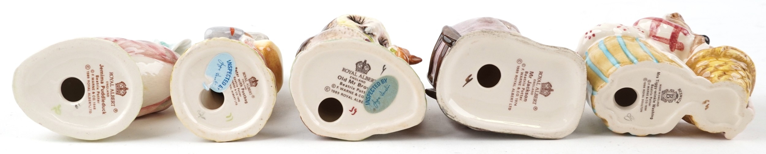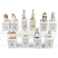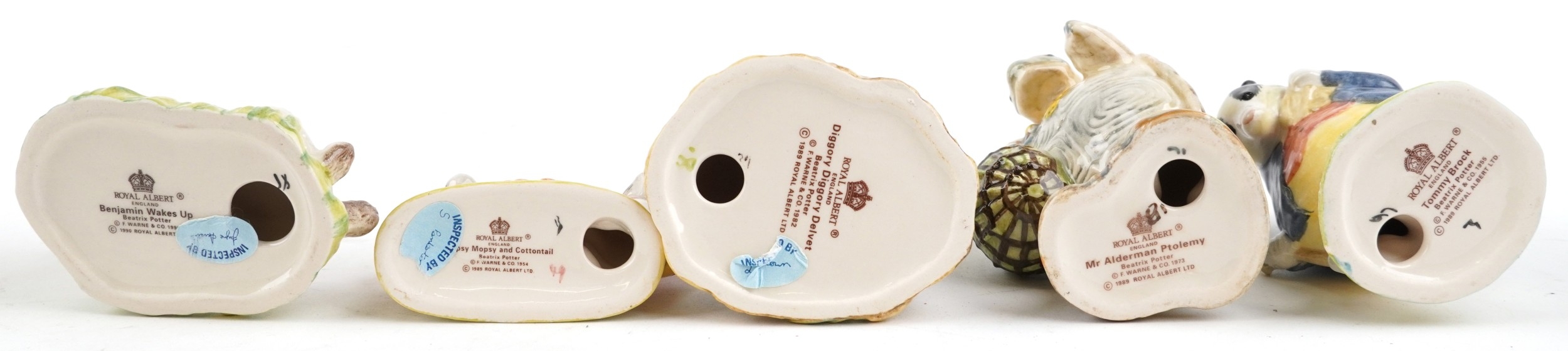 Ten Royal Albert Beatrix Potter figures with boxes including Jemima Puddleduck, Mr. Alderman Ptolemy, Benjamin Wakes Up and Tommy Brock, the largest 9.5cm high.