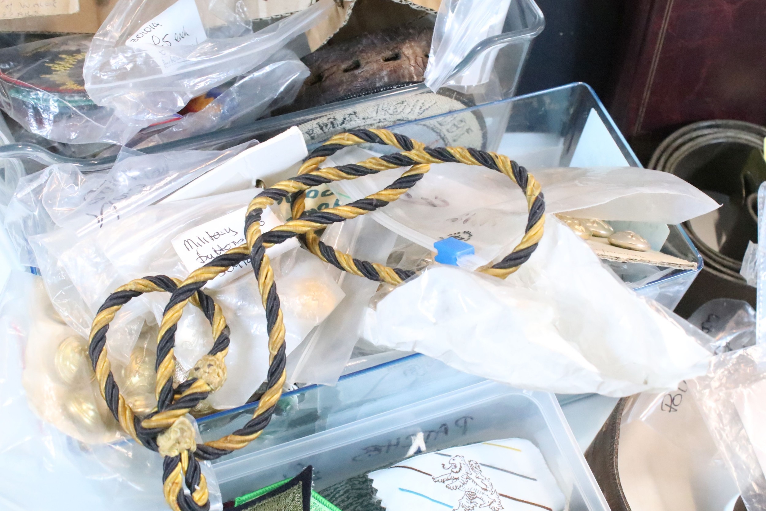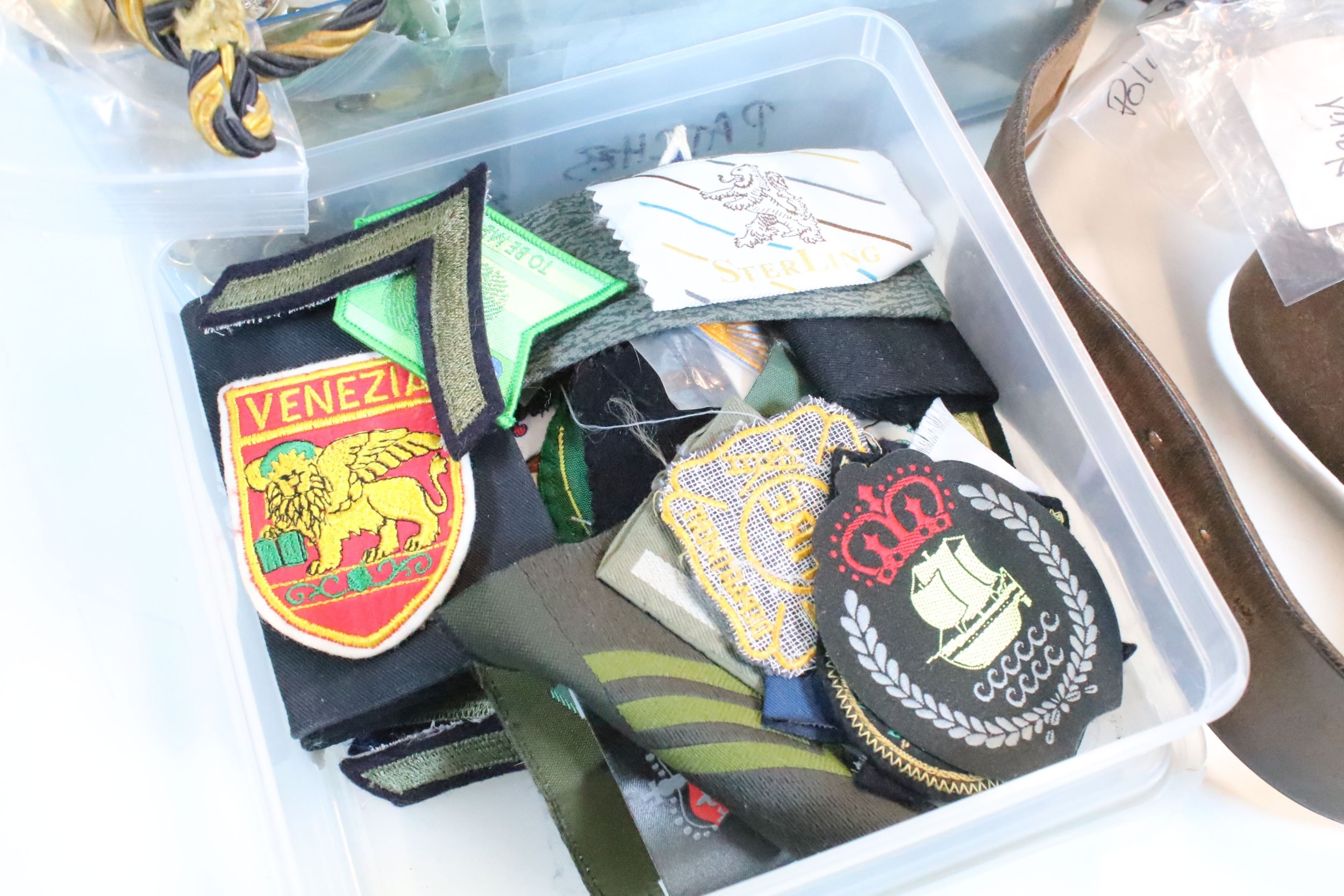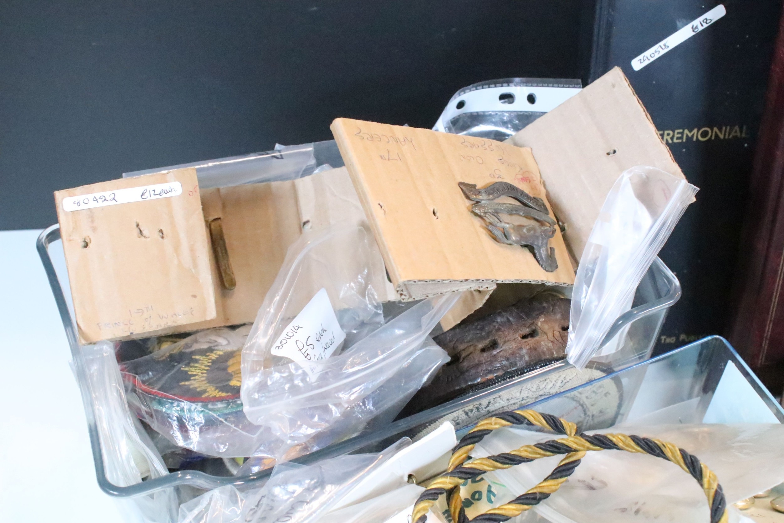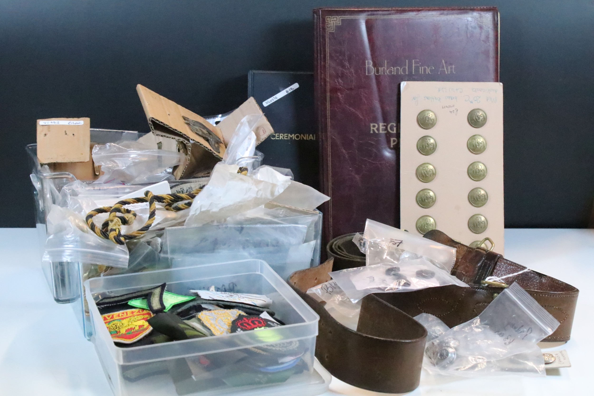 Collection of militaria, to comprise include regimental badges, buttons and belts, etc. (one box)