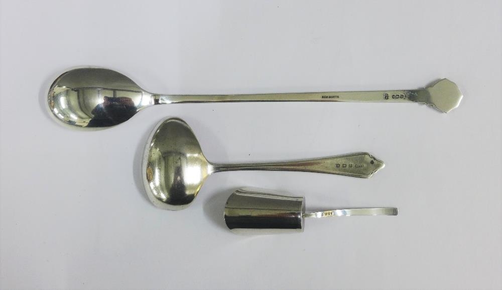 Sheffield silver spoon, Birmingham silver spoon and London silver sugar shovel (3)