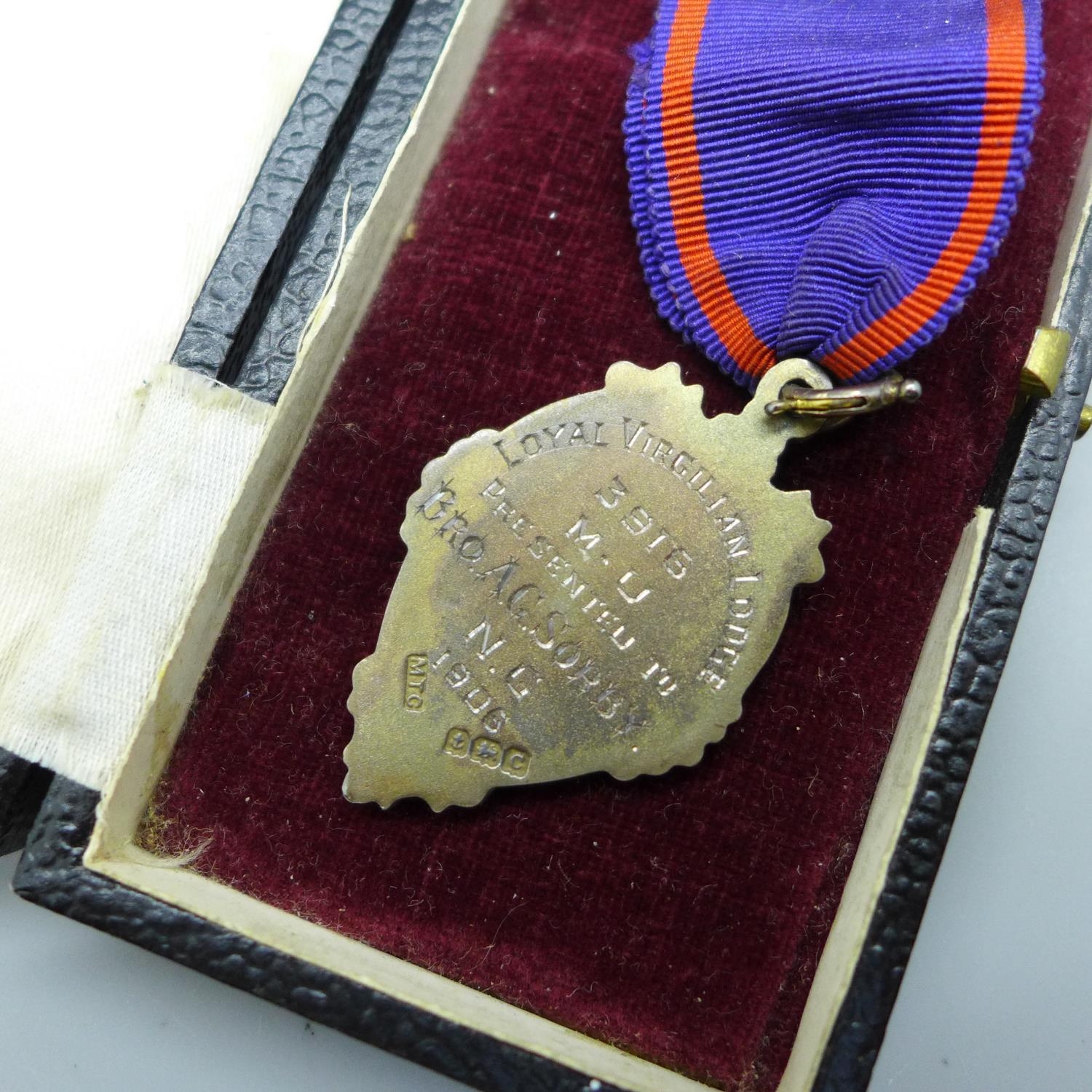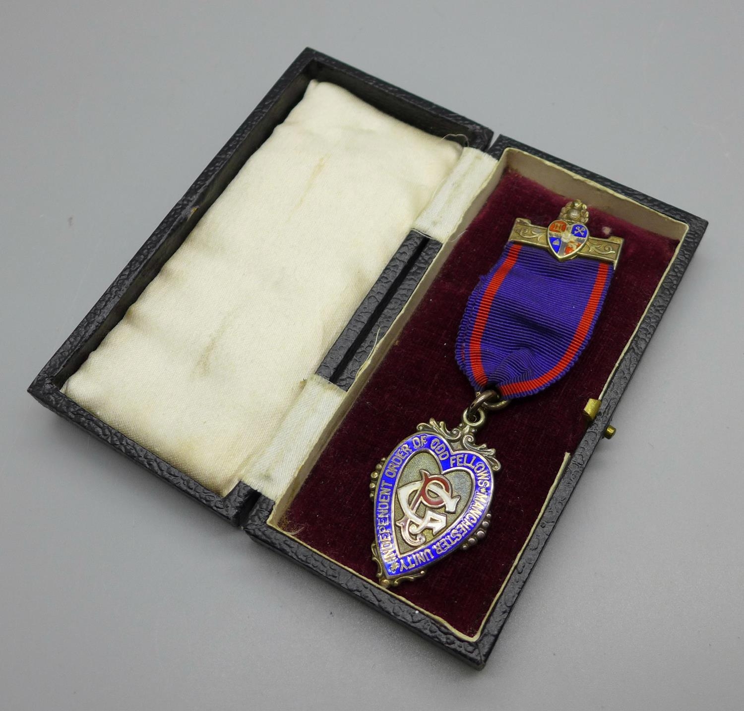 An Oddfellows silver and enamelled medal with box, Birmingham 1902