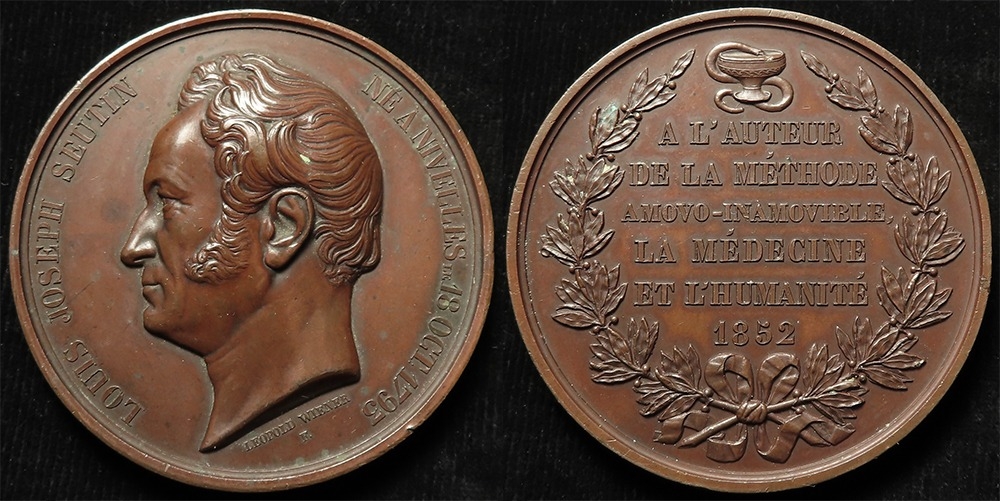 Belgian Commemorative Medal, bronze d.62mm: Louis Joseph Seutin (doctor & surgeon) memorial medal 1852 by Leopold Wiener, nEF, a few small marks.