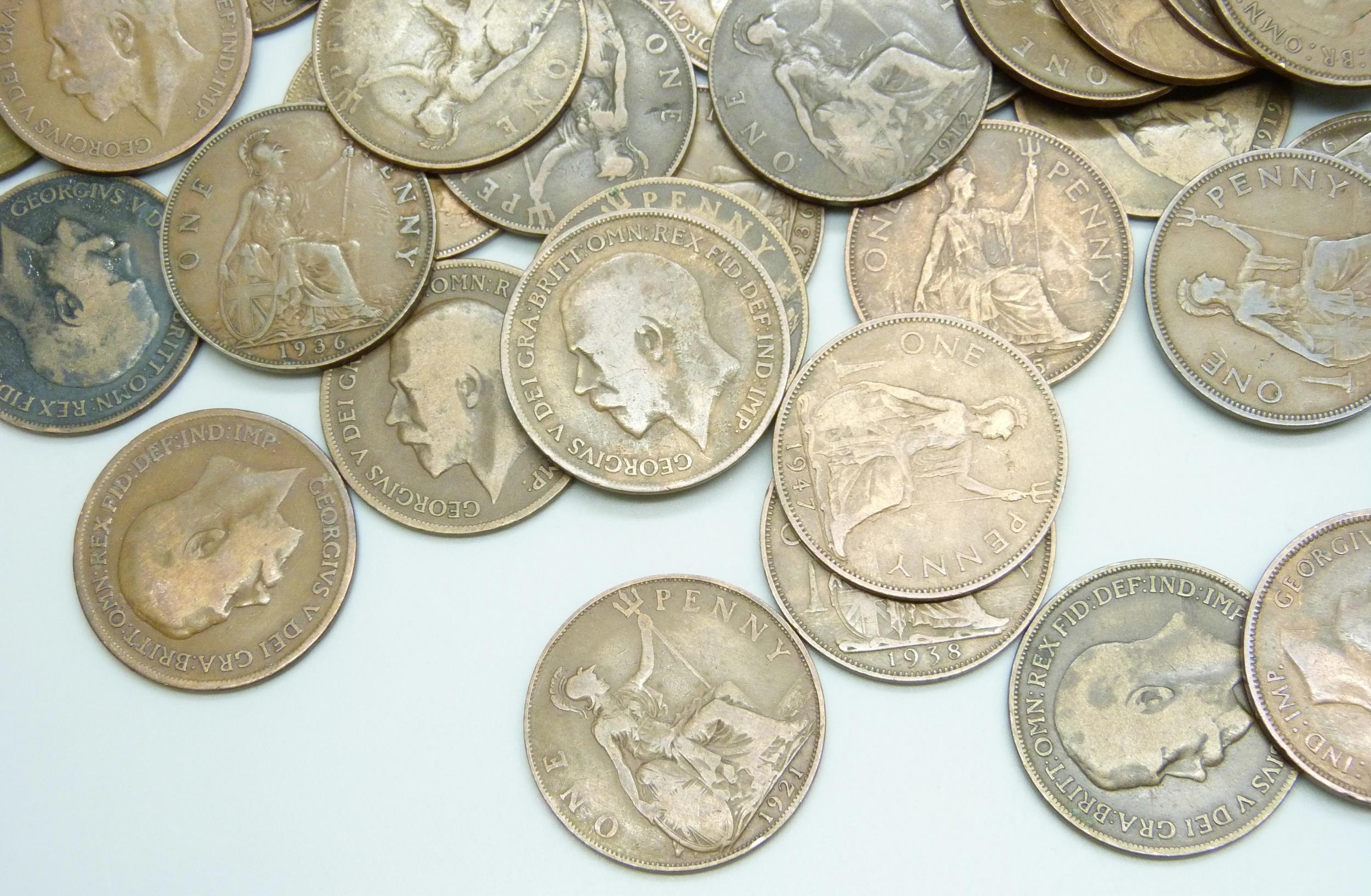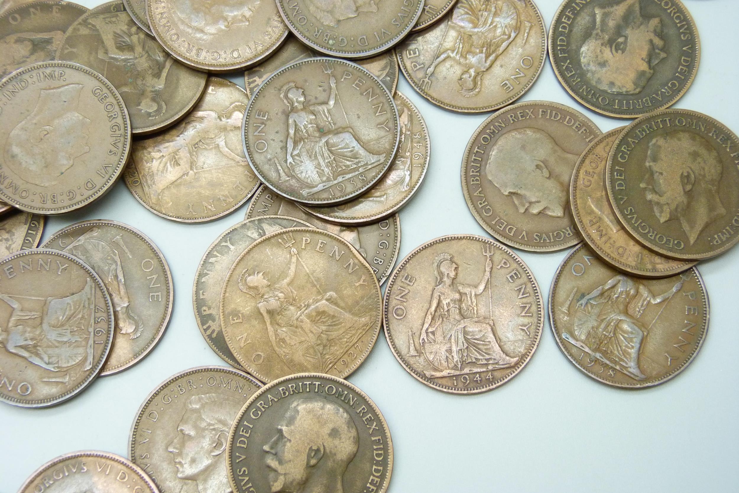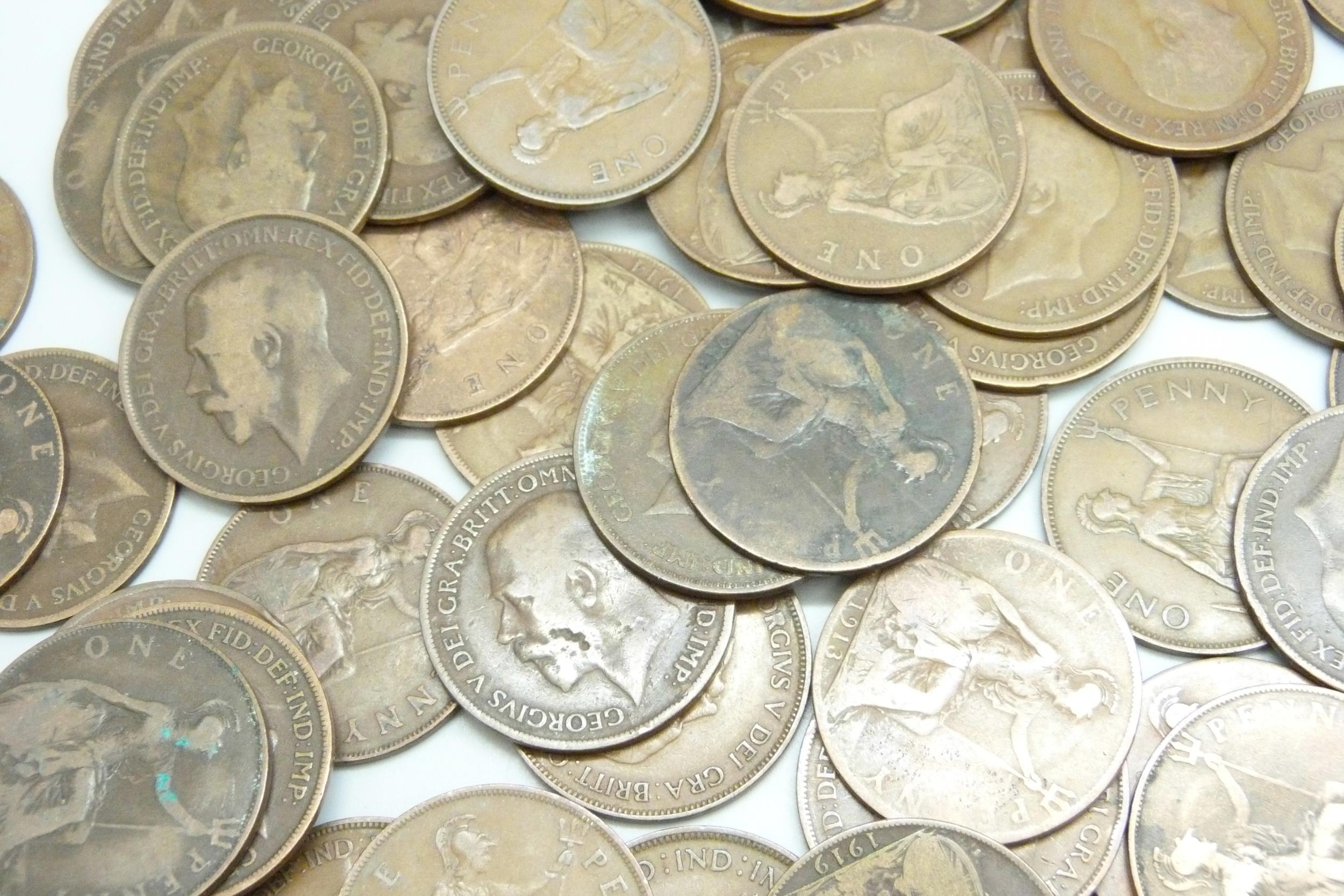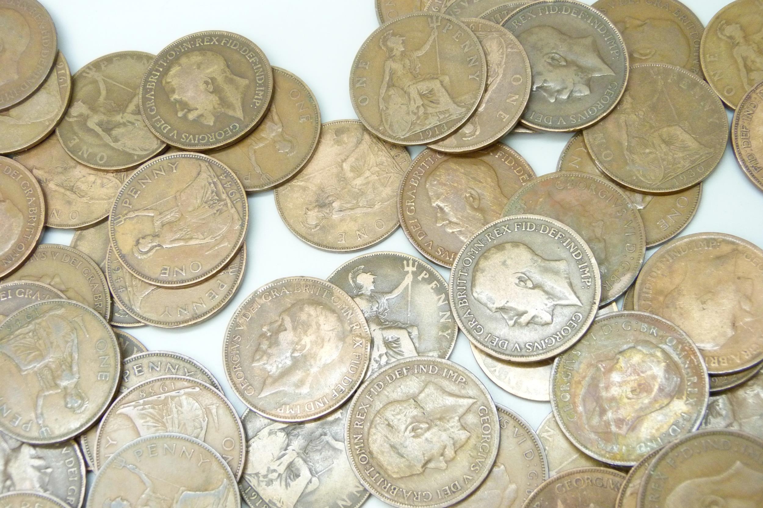 A collection of approximately 100 George VI pennies together with approximately 50 George V pennies