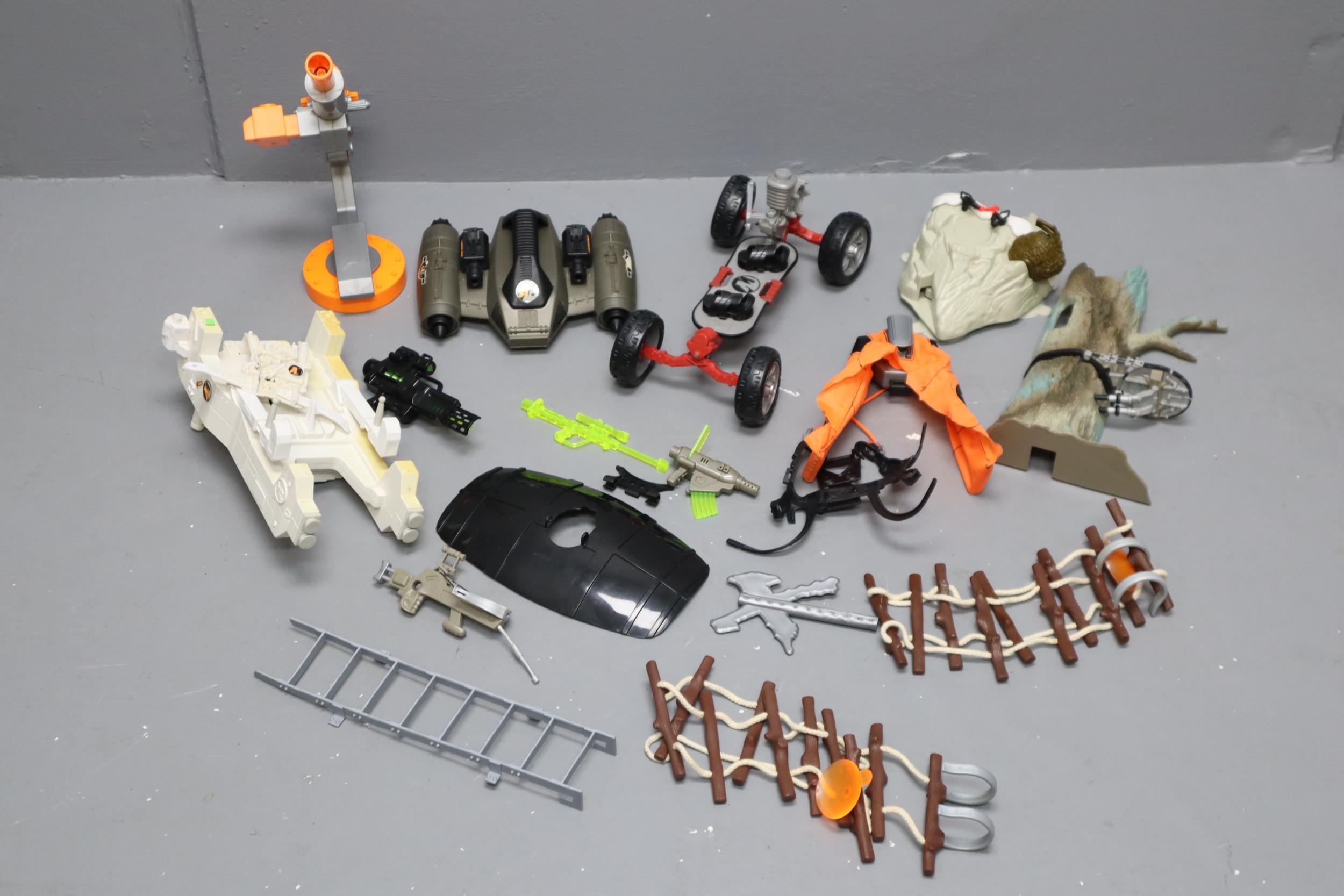 A Selection of Action Man Accessories To Include Thunderwing, Skateboard Extreme, Various Guns, Ladders, And More