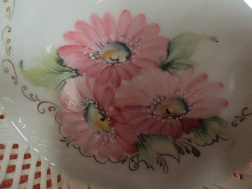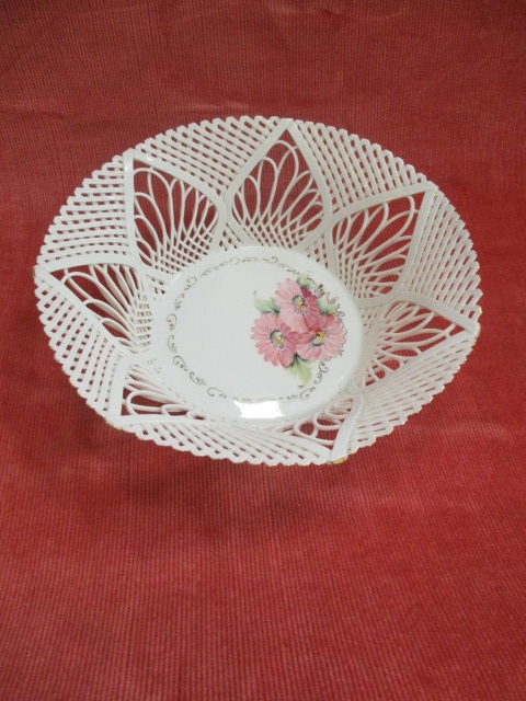PORCELAIN DELICATE FRETWORKED BOWL, BASKET WEAVE, SIGNED UNDERNEATH