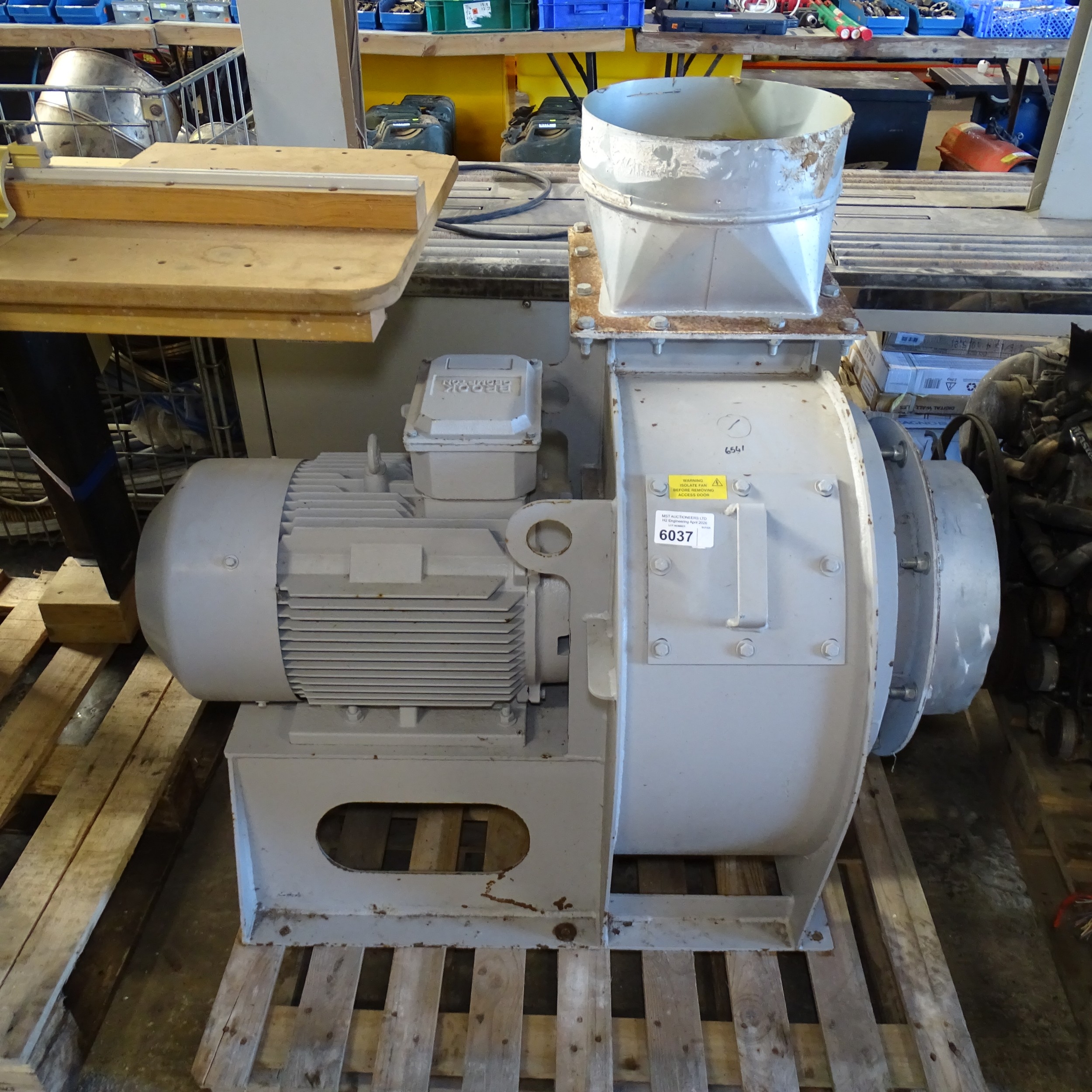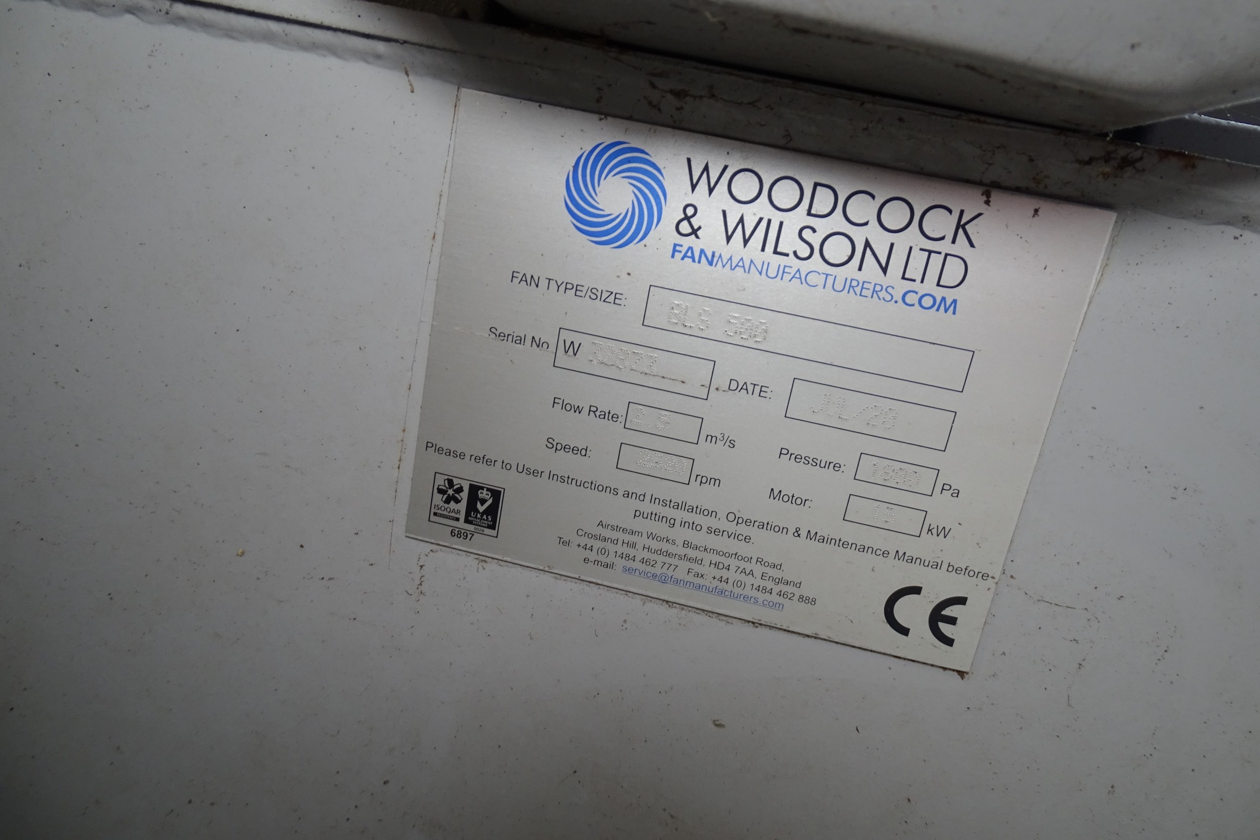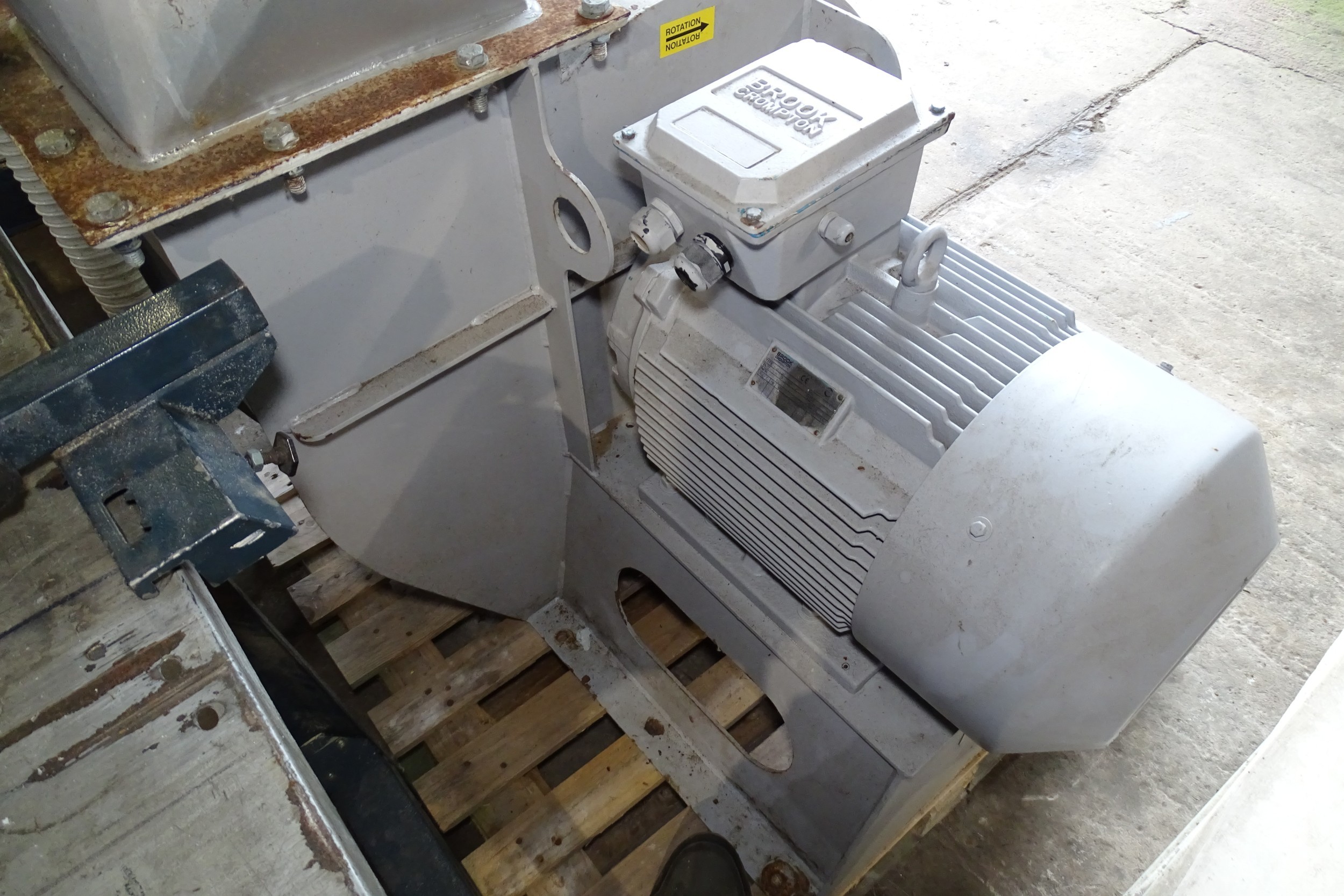 A centrifugal fan unit with backward laminar steep impellor specifically designed for the handling of wood waste. Unit is fitted with a direct drive 3ph 15kw motor and is able to provide an inlet volume of 9000m3/hr, inlet of fan is 355mm and gives a velocity of approx 25m/s in the main duct. Unit was purchased in 2020 at a cost of £3945 incl VAT was was only used for around 12 months There is a video of this machine running which is available on request. Please contact the auction office for more details. - VAT