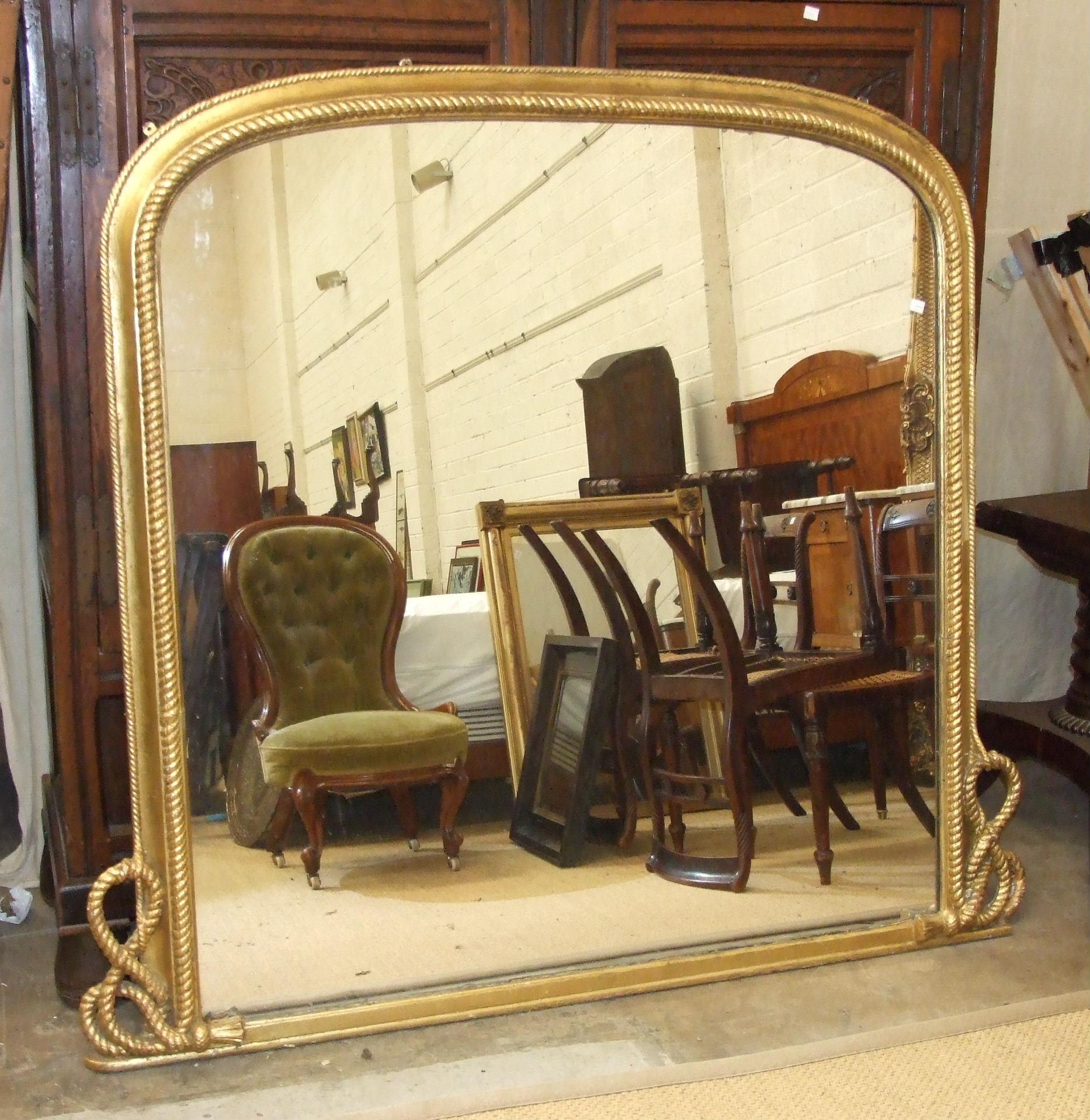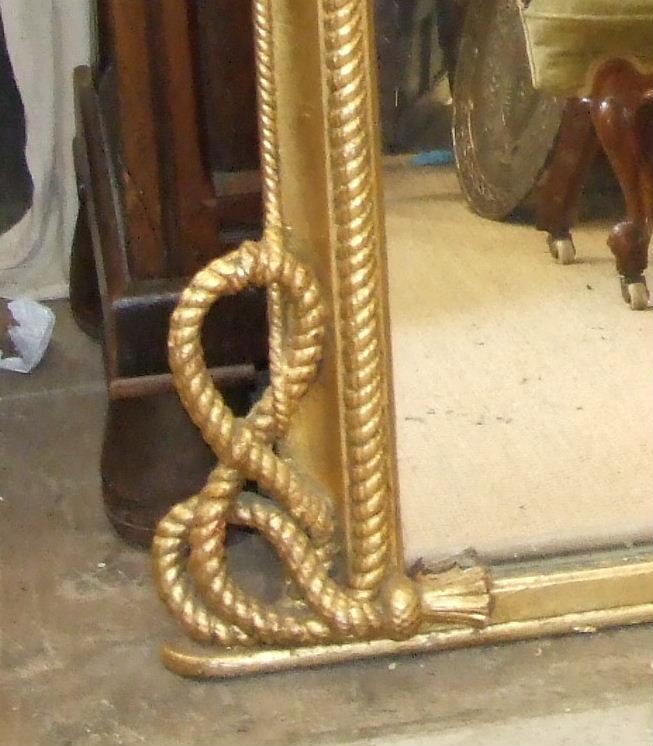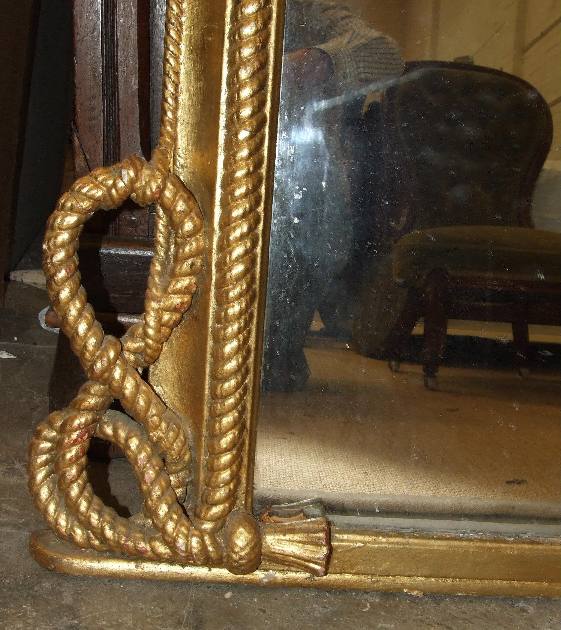 A large Victorian over-mantel mirror, the gilt frame with rope moulding tied in a knot at the base, 157cm high, 173cm wide, (reduced in size).
