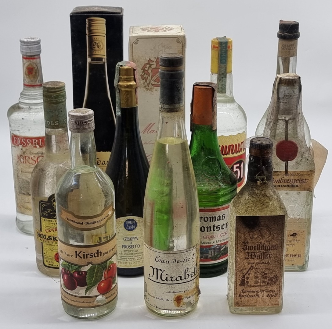 A mixed group of Spirits, to include: Grappa; Eau de Vie; Kirsch; Kummel; etc. (12)