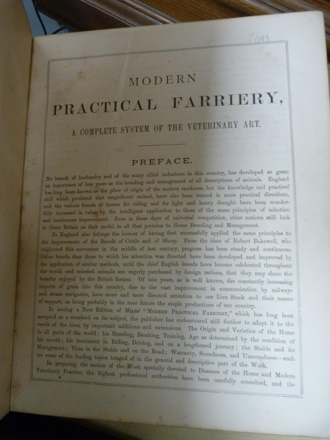 Quantity of vintage first aid boxes and contents, pocket bible, a book by James Marples Moorhall, 1824 (a/f), a leather half calf edition of Modern Practical Farriery and a brass equine enema.