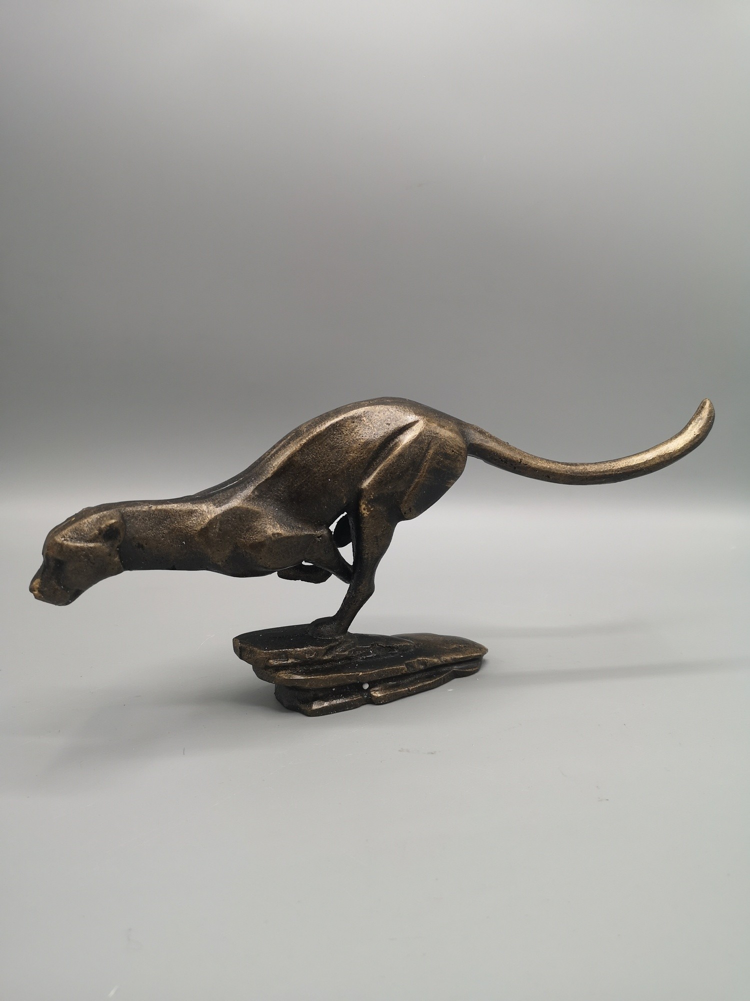 Large cast bronzed cheetah study in sprint hunting motion.