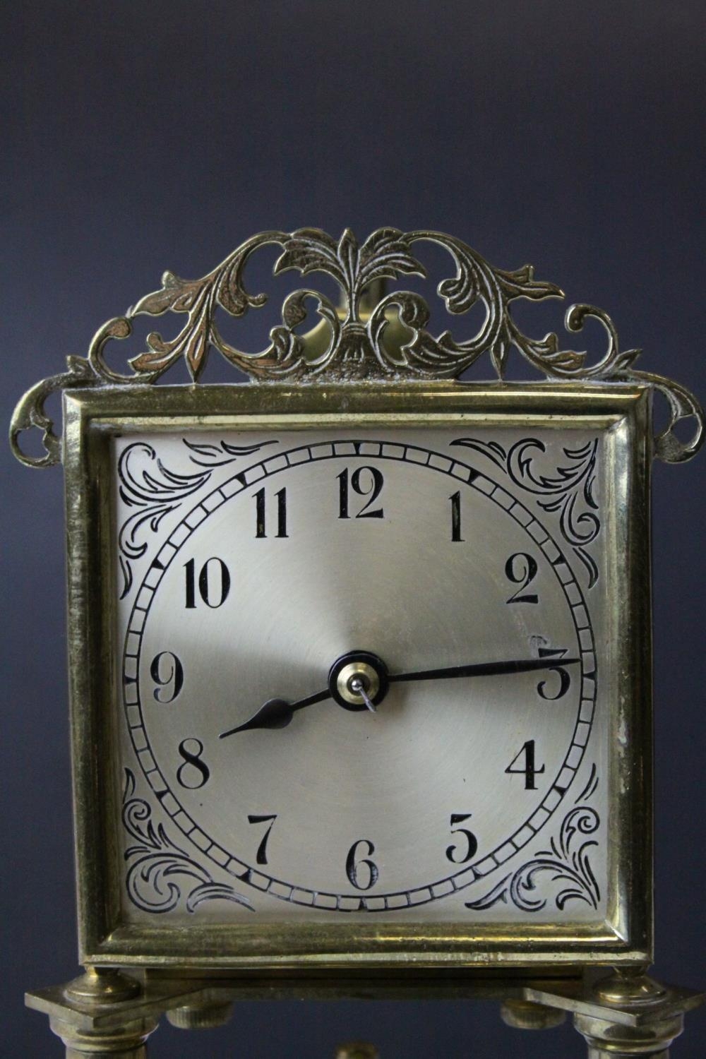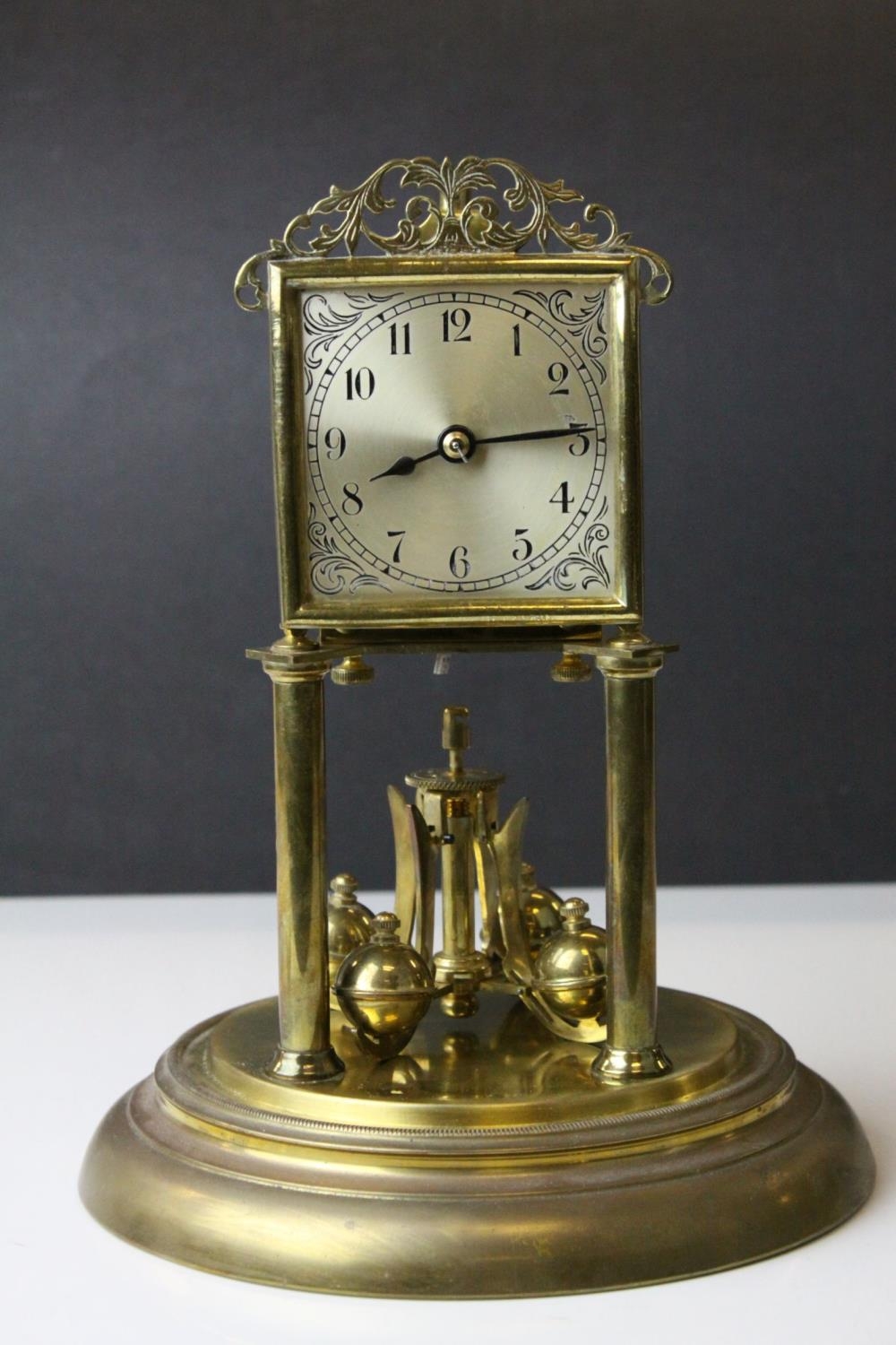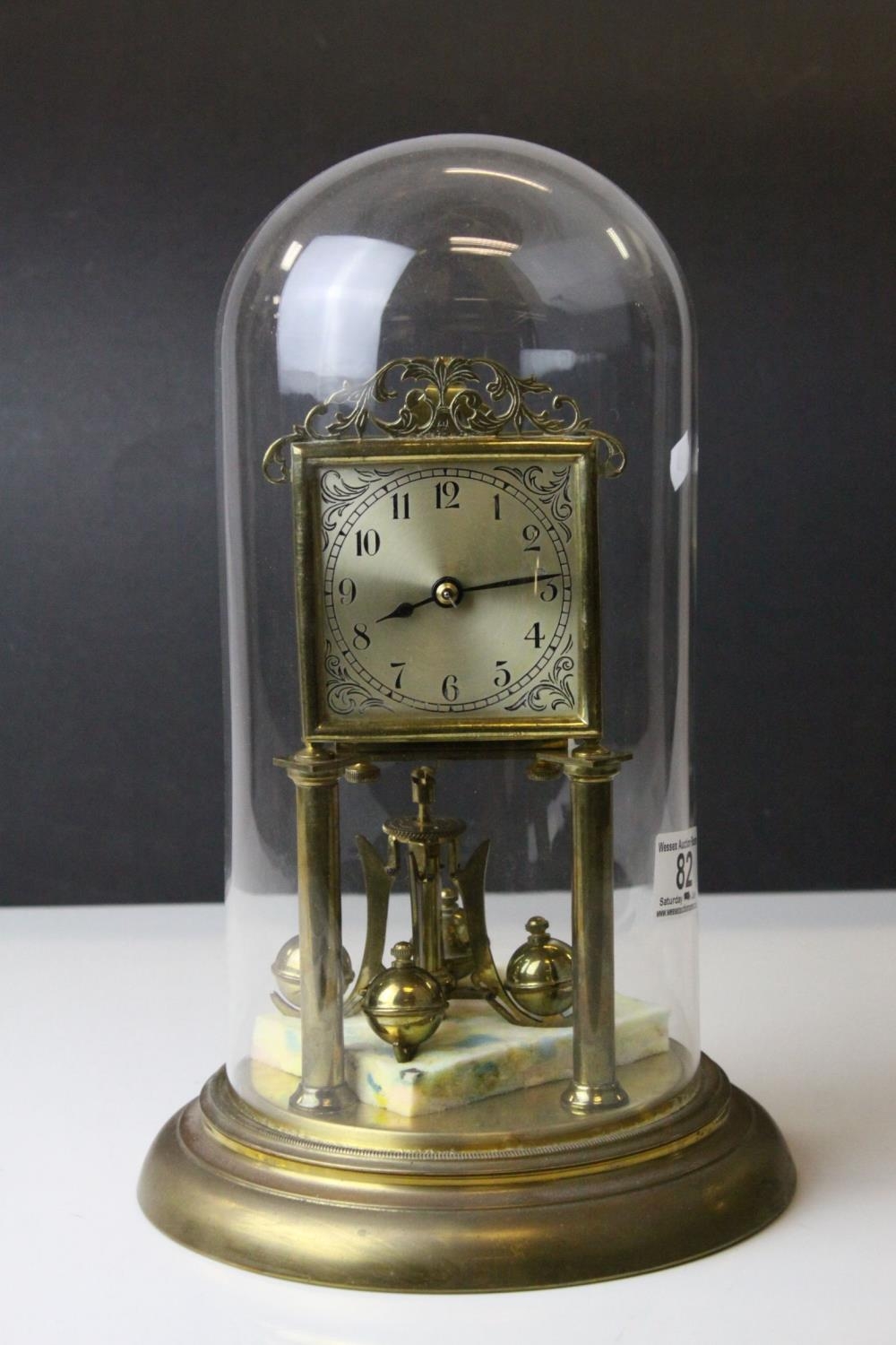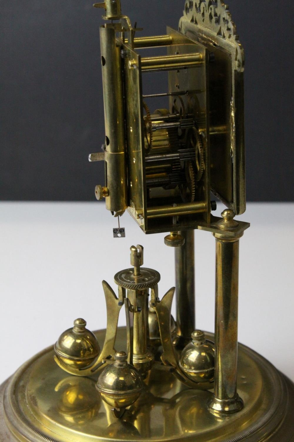 Early 20th century Jahresuherenfabrik German Anniversary / Skeleton Clock, 400 day, with Glass Dome and Key, 30cms high