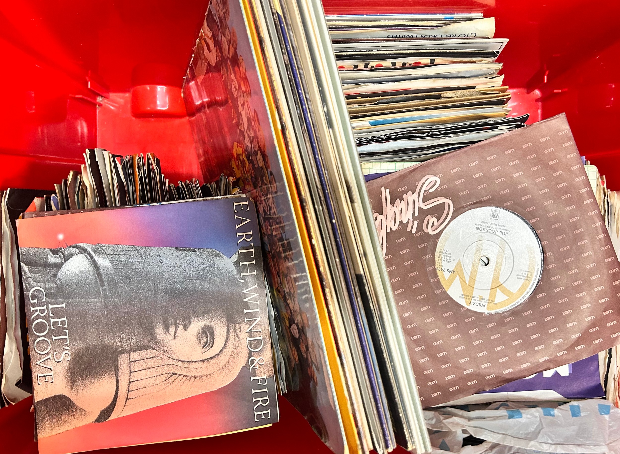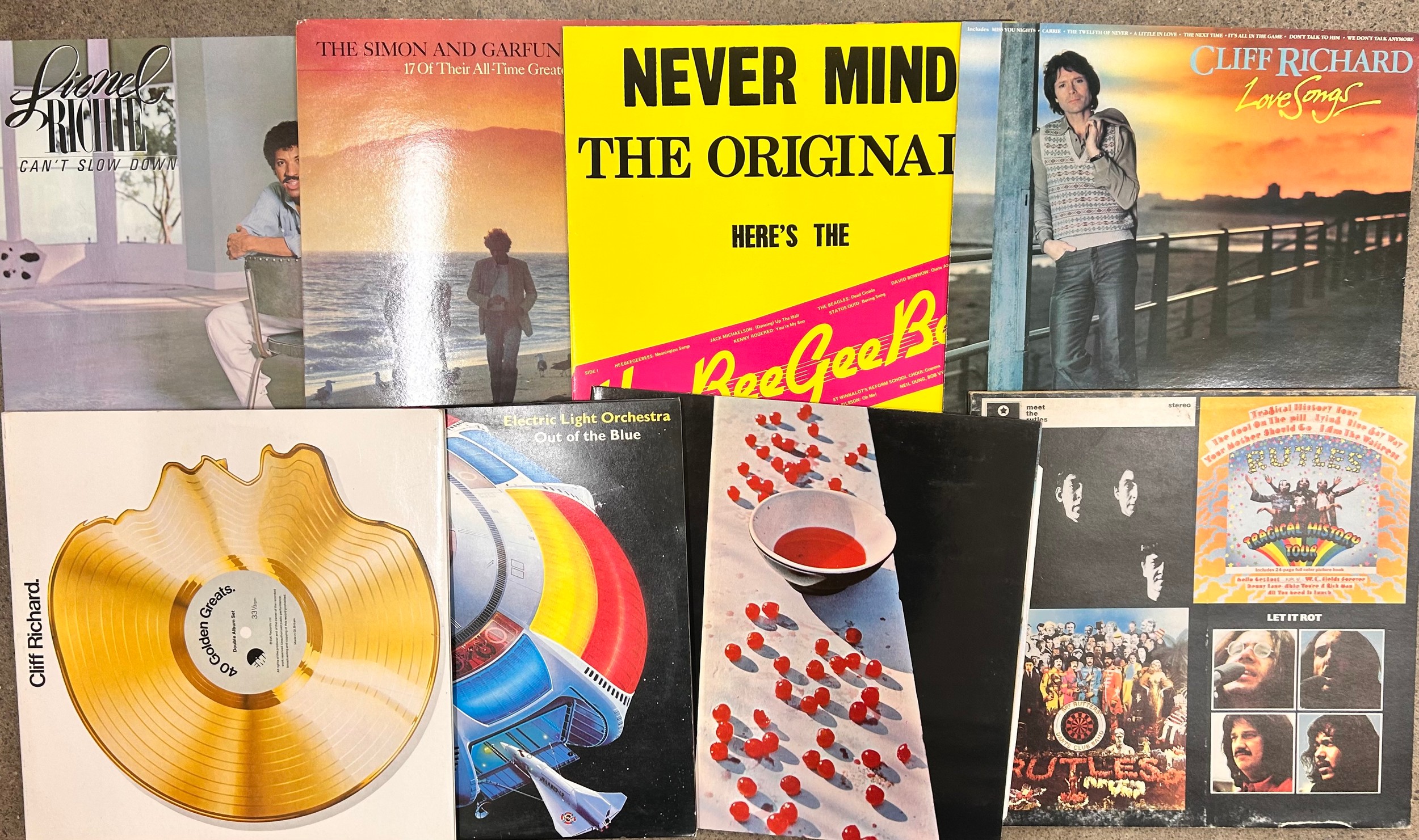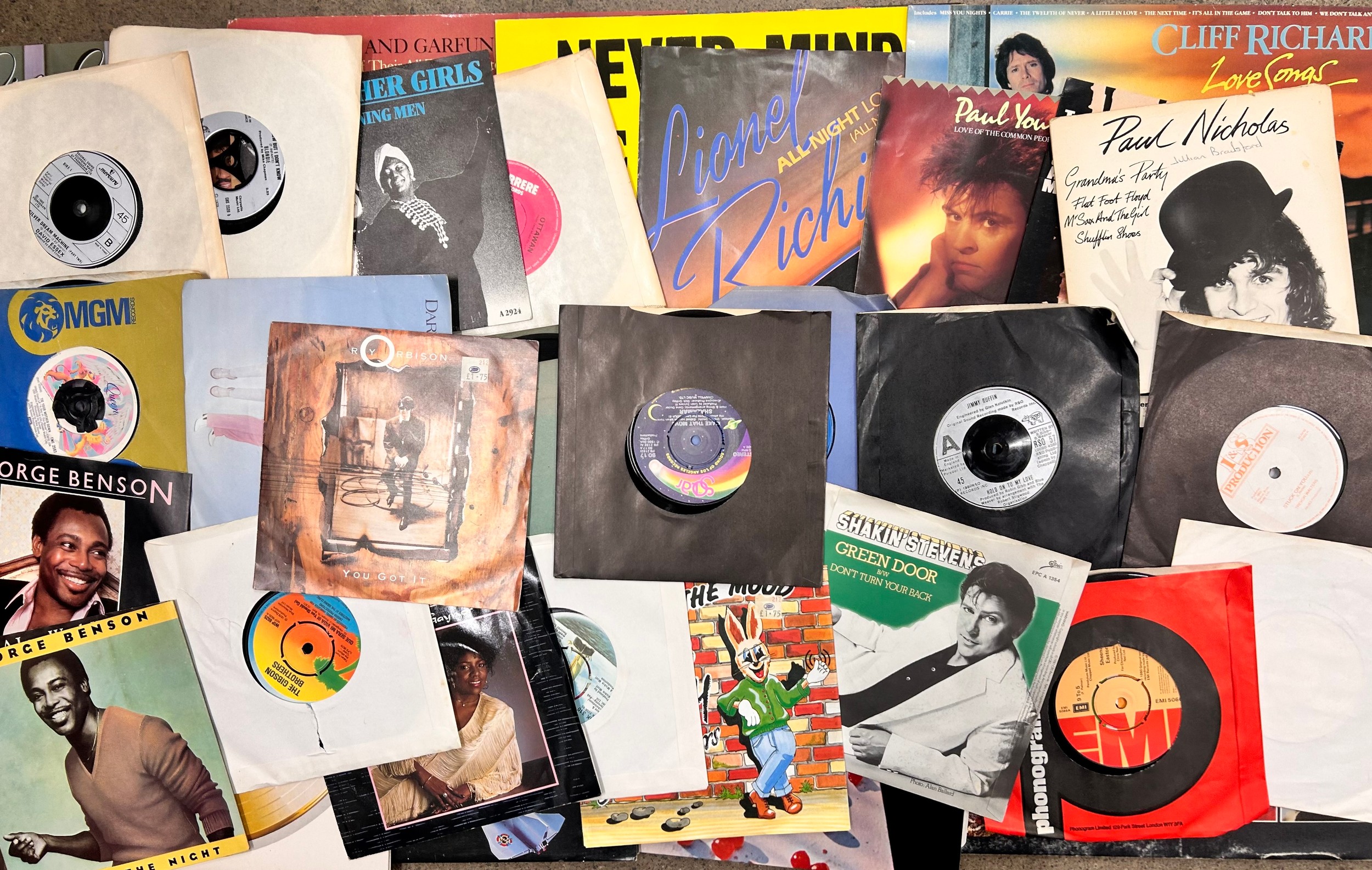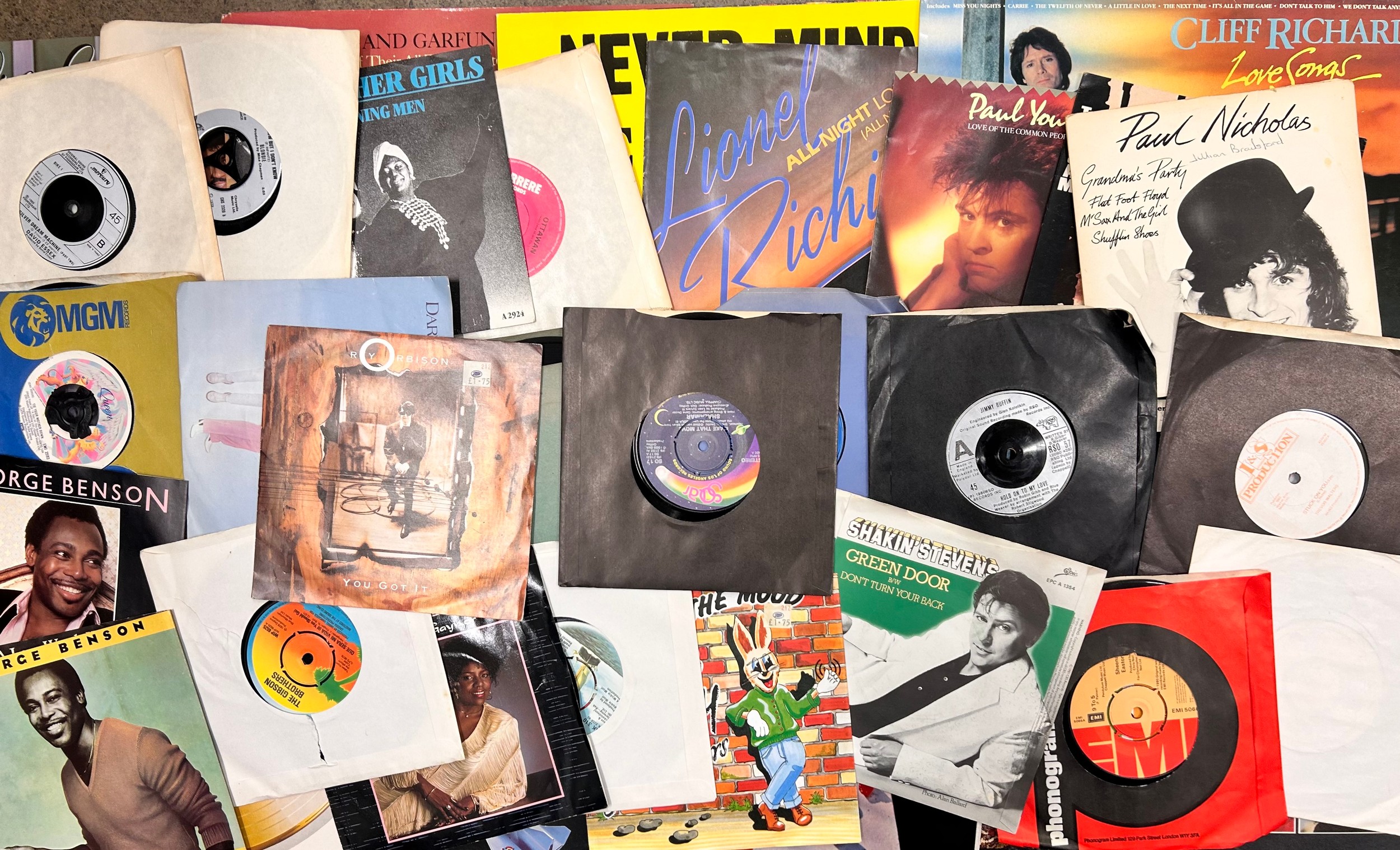 A large collection of LP records and 7" singles to include LPs - The Beatles Sgt. Peppers, Paul McCartney, Bee Gees, Beach Boys, ELO, etc., singles from 1960s, 1970s, 1980s - George Benson, Sheena Easton, Shakin' Stevens, Roy Orbison, Smokey Robinson, etc.