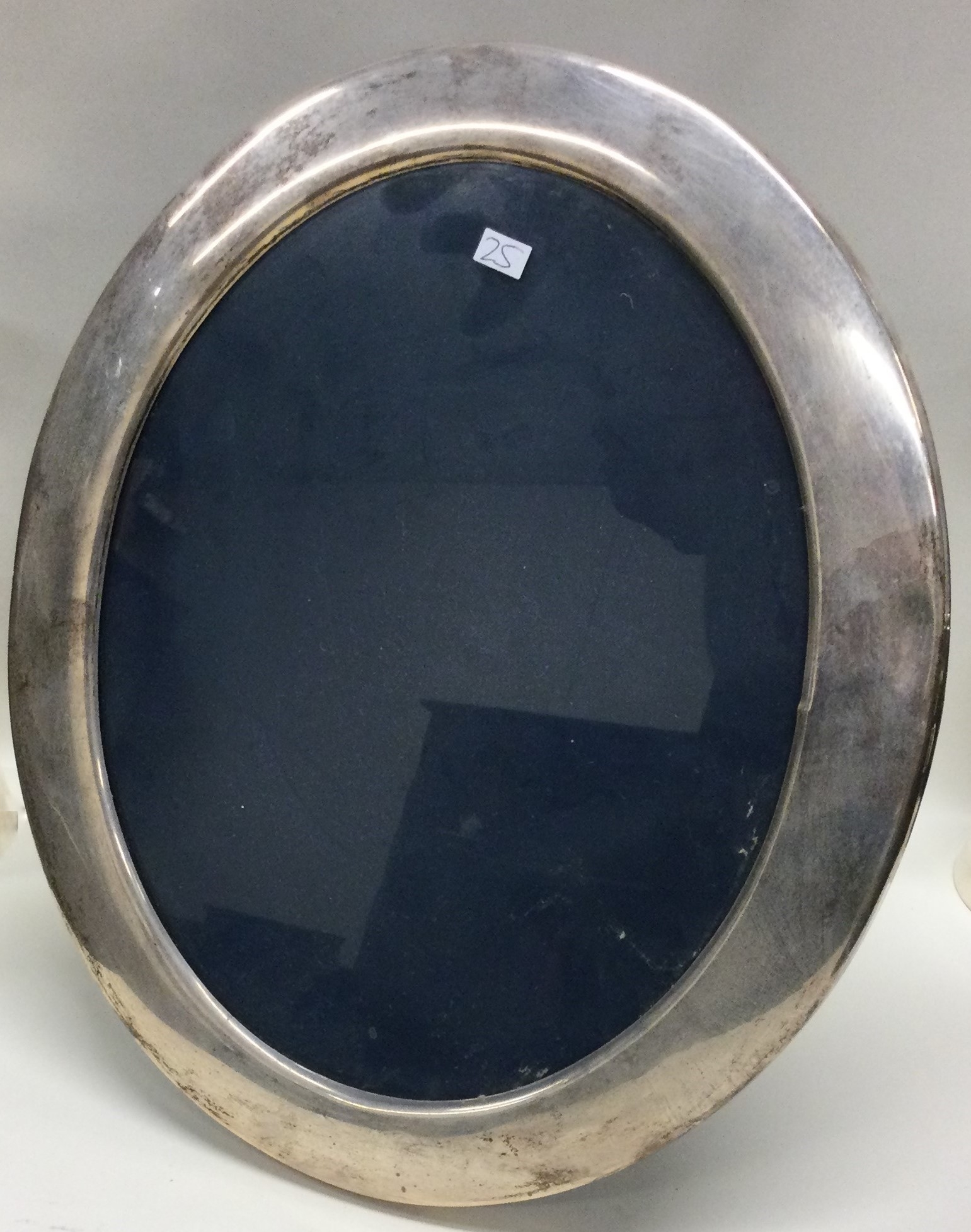 A large oval silver picture frame. London. By Mappin & Webb. Est. £80 - £120.