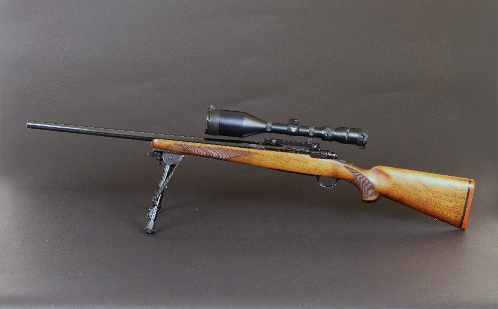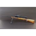 Ruger M77 bolt action cal 308 rifle, fitted with a heavyweight barrel Harris bipod and a Lisenfeld 4-12 x 56 scope (telescopic sight). Serial No. 71-08438. FIREARMS CERTIFICATE REQUIRED.
