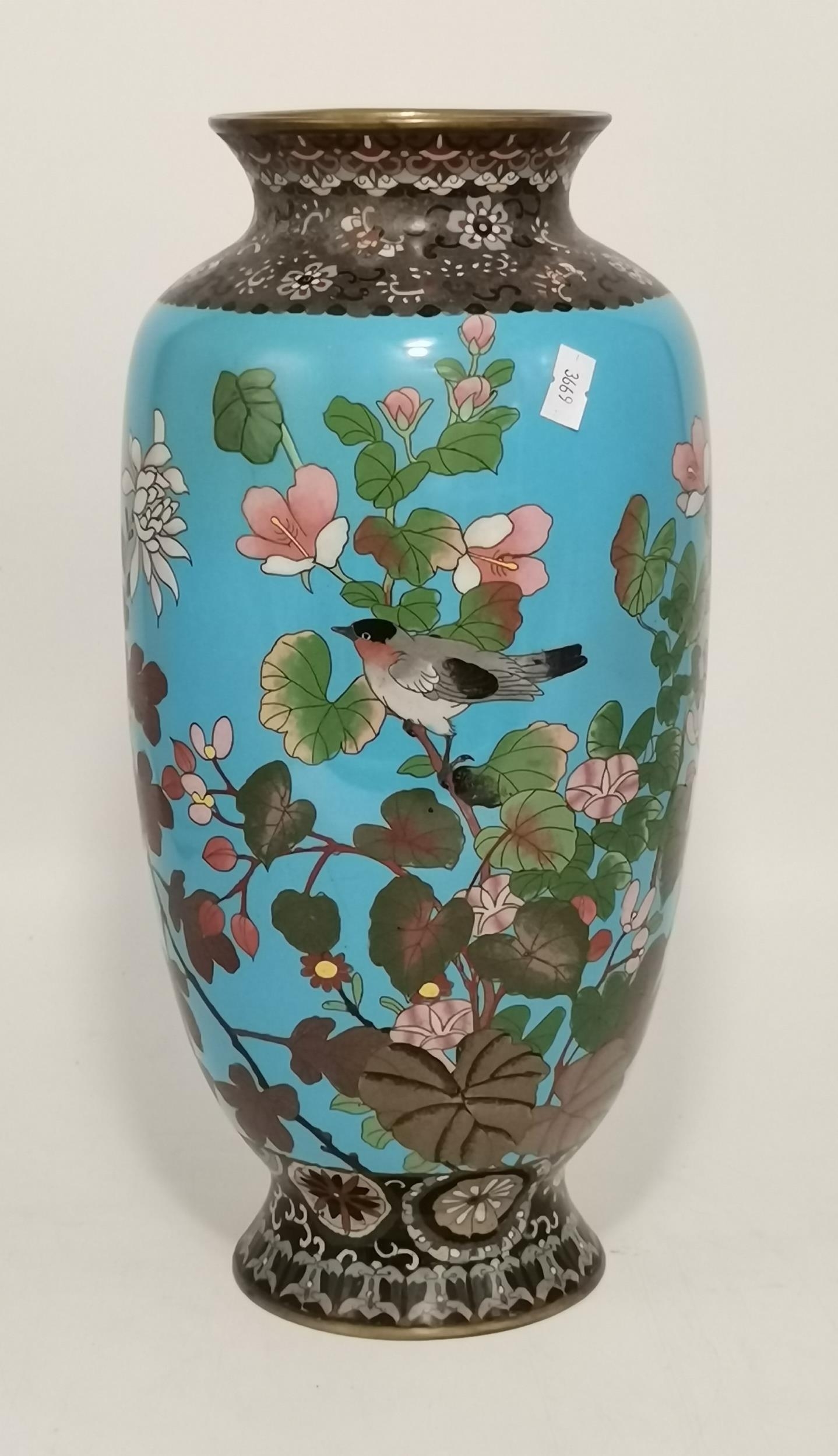 A 19th century Japanese Cloisonné enamel vase decorated with birds amongst flowering branchwork