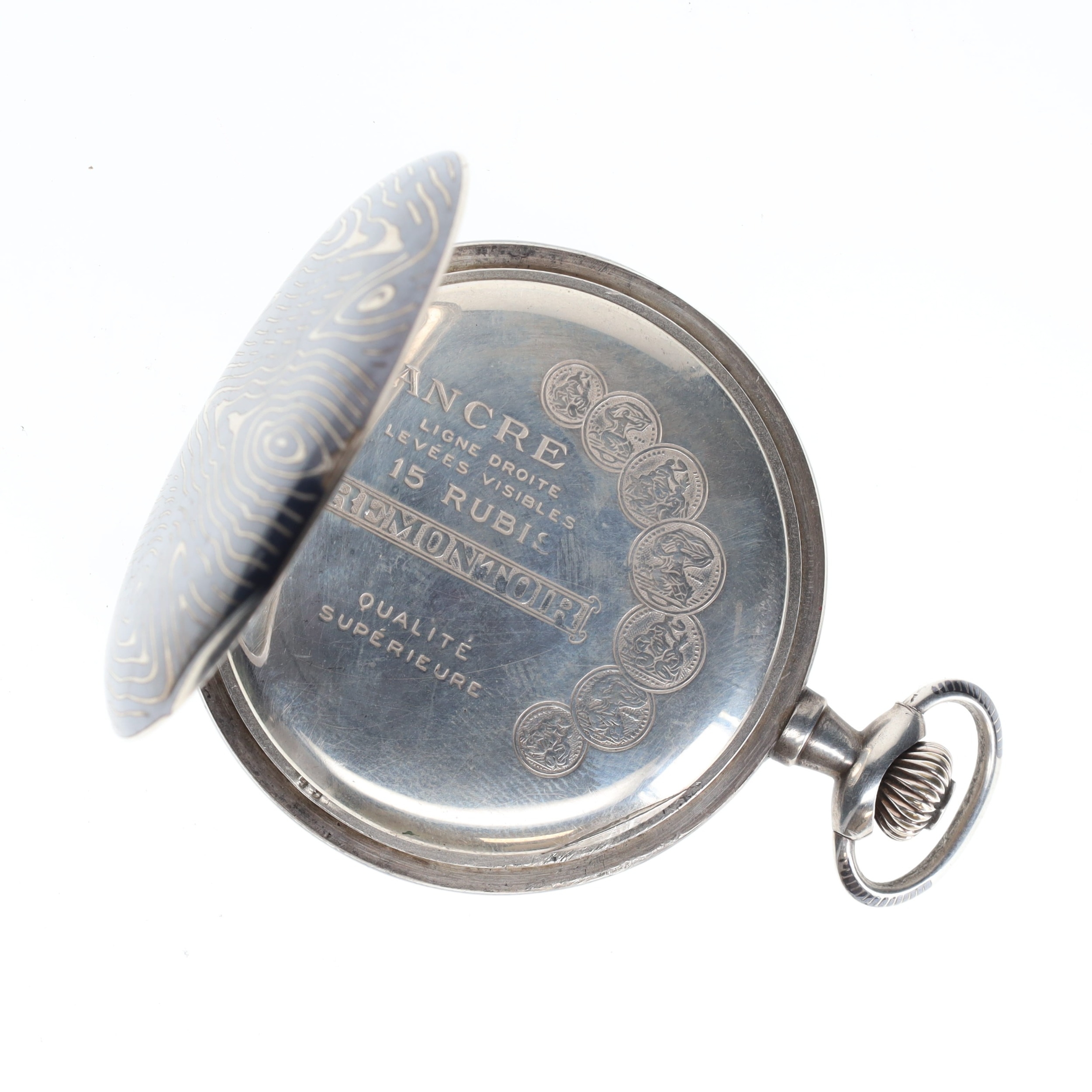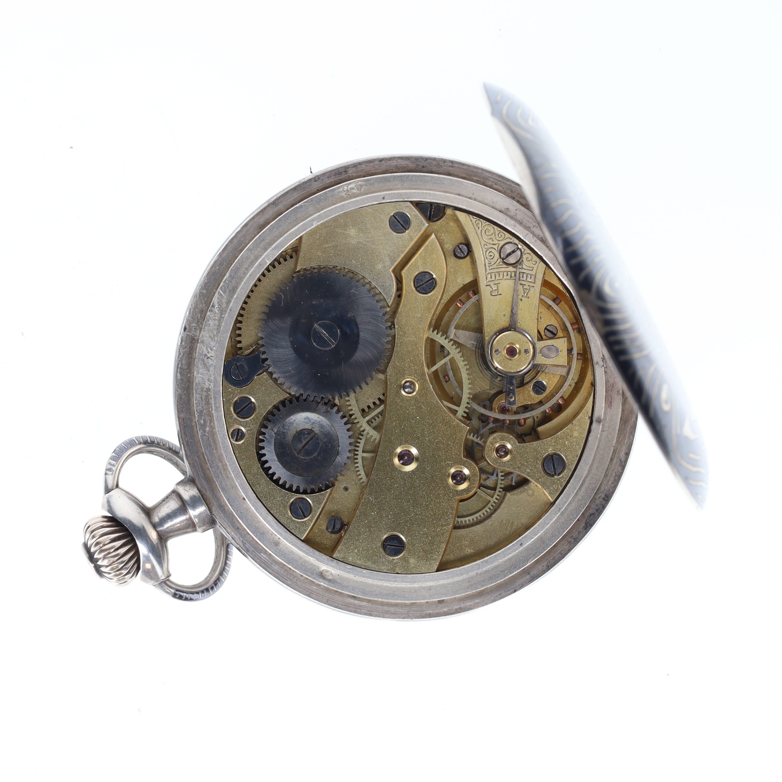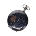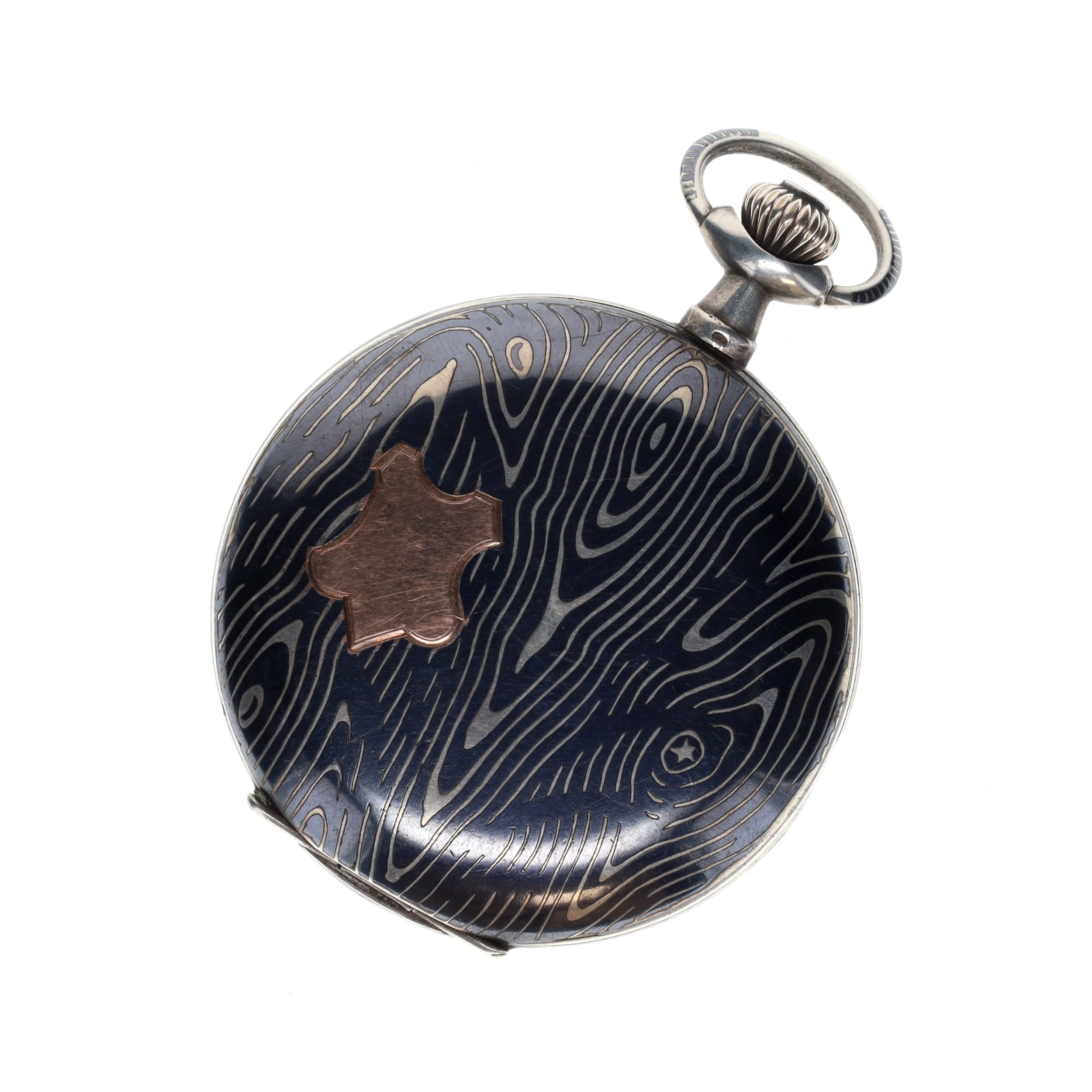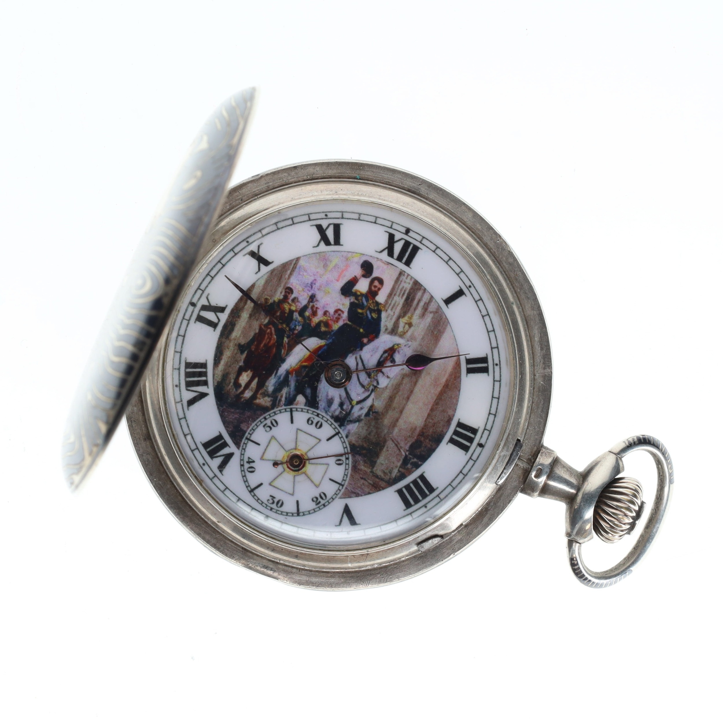 .800 Niello Silver Full Hunter Hand Wind Pocket Watch