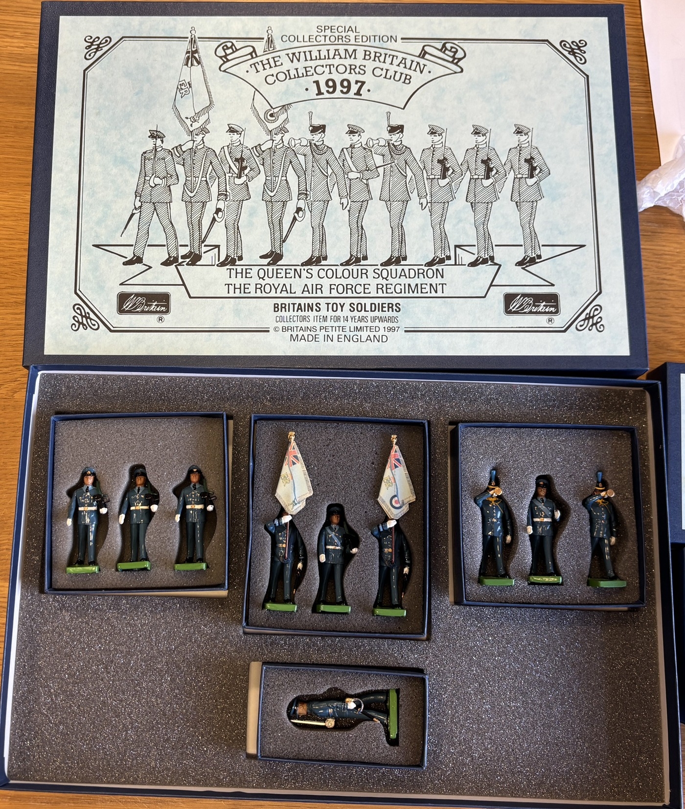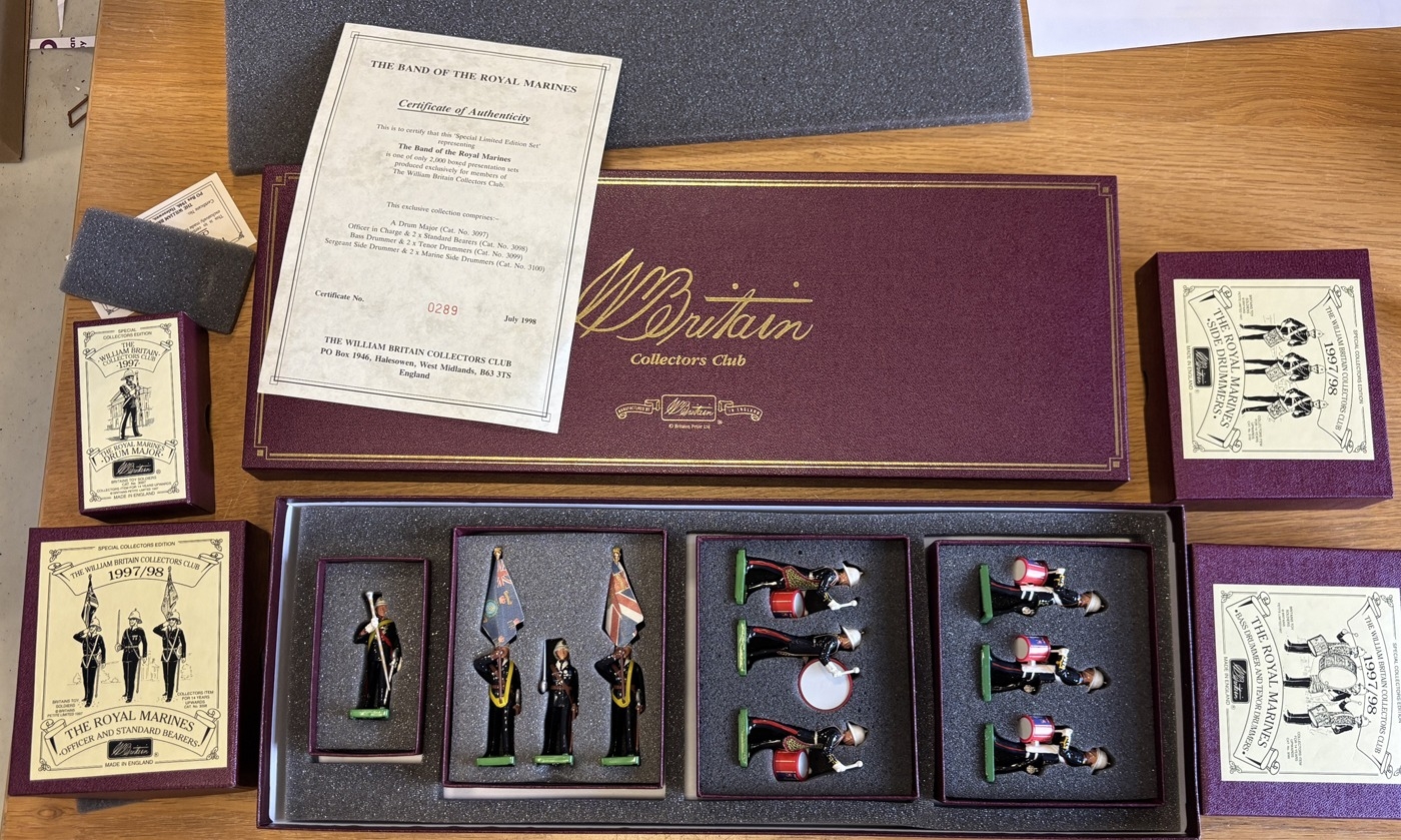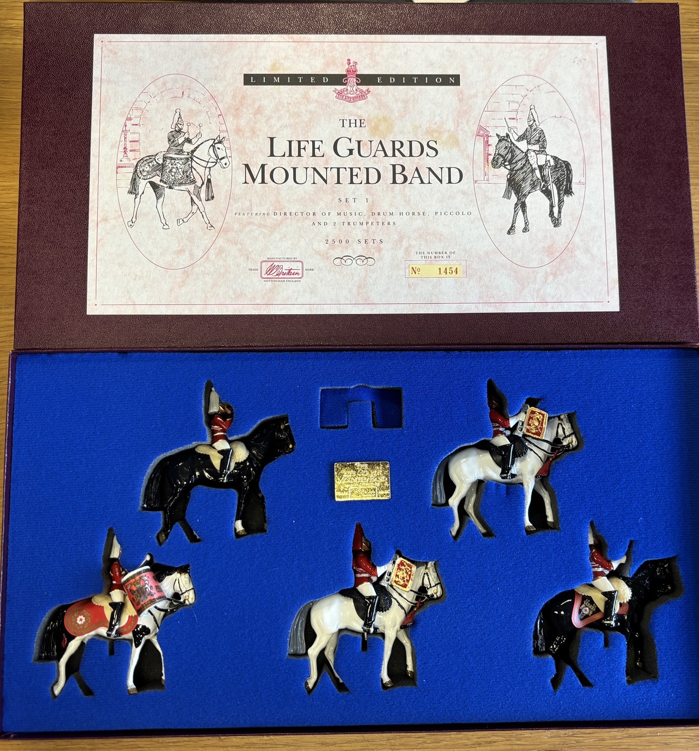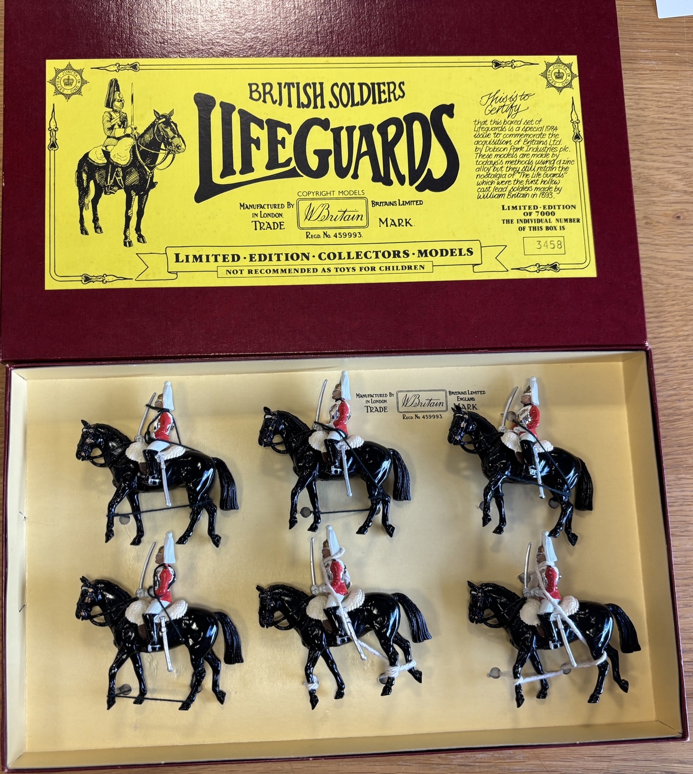 Britains. Collection of boxed and unboxed soldiers, generally excellent, including Napoleonic, Empire and WW2 soldiers, with The William Britain Collectors Club 1997 set of 10, The Life Guards Mounted Band set of 5, Lifeguards set of 5 and Collectors Club set of 10. Plus futher ranges of Britains individual soldiers and small range of die cast. Qty approx 50+ soldiers. (2B)