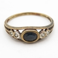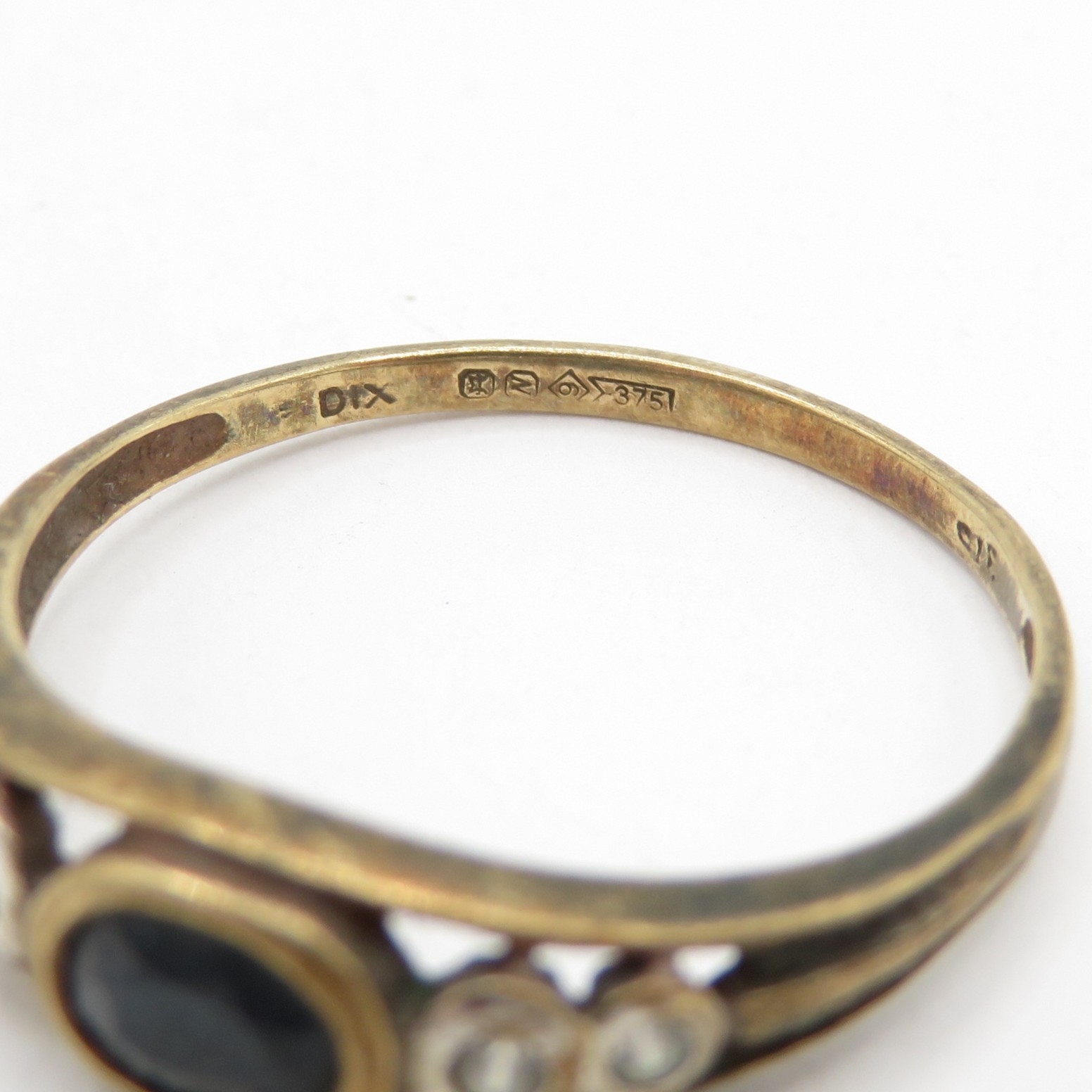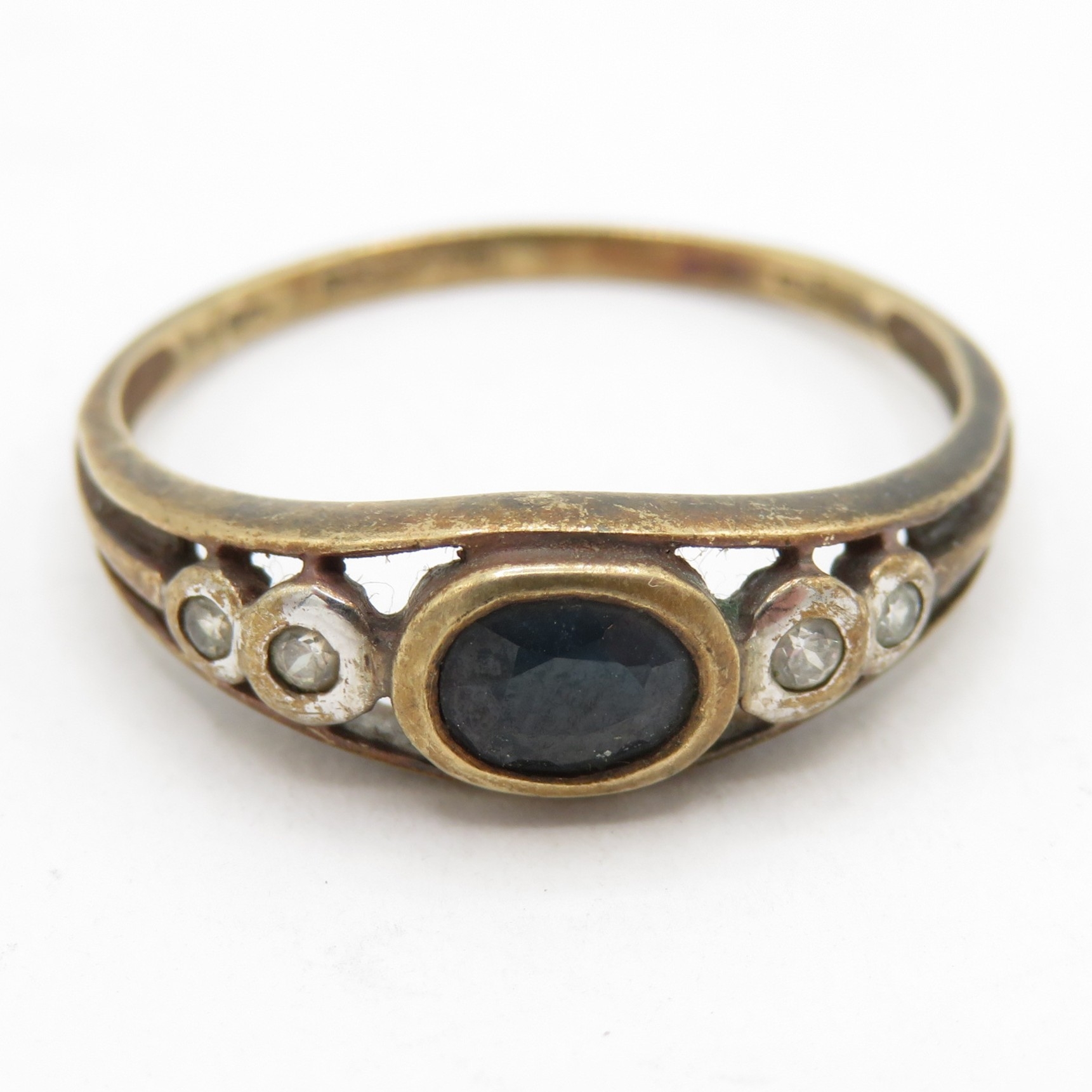 9ct gold sapphire and white gemstone (1.7g) Size P 1/2