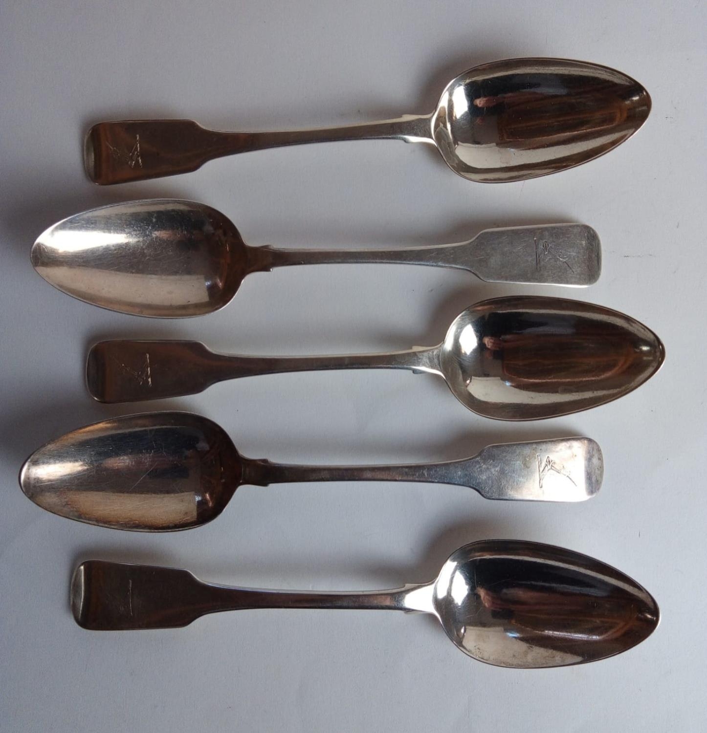 A SET OF FIVE GEORGIAN IRISH SILVER TABLESPOONS