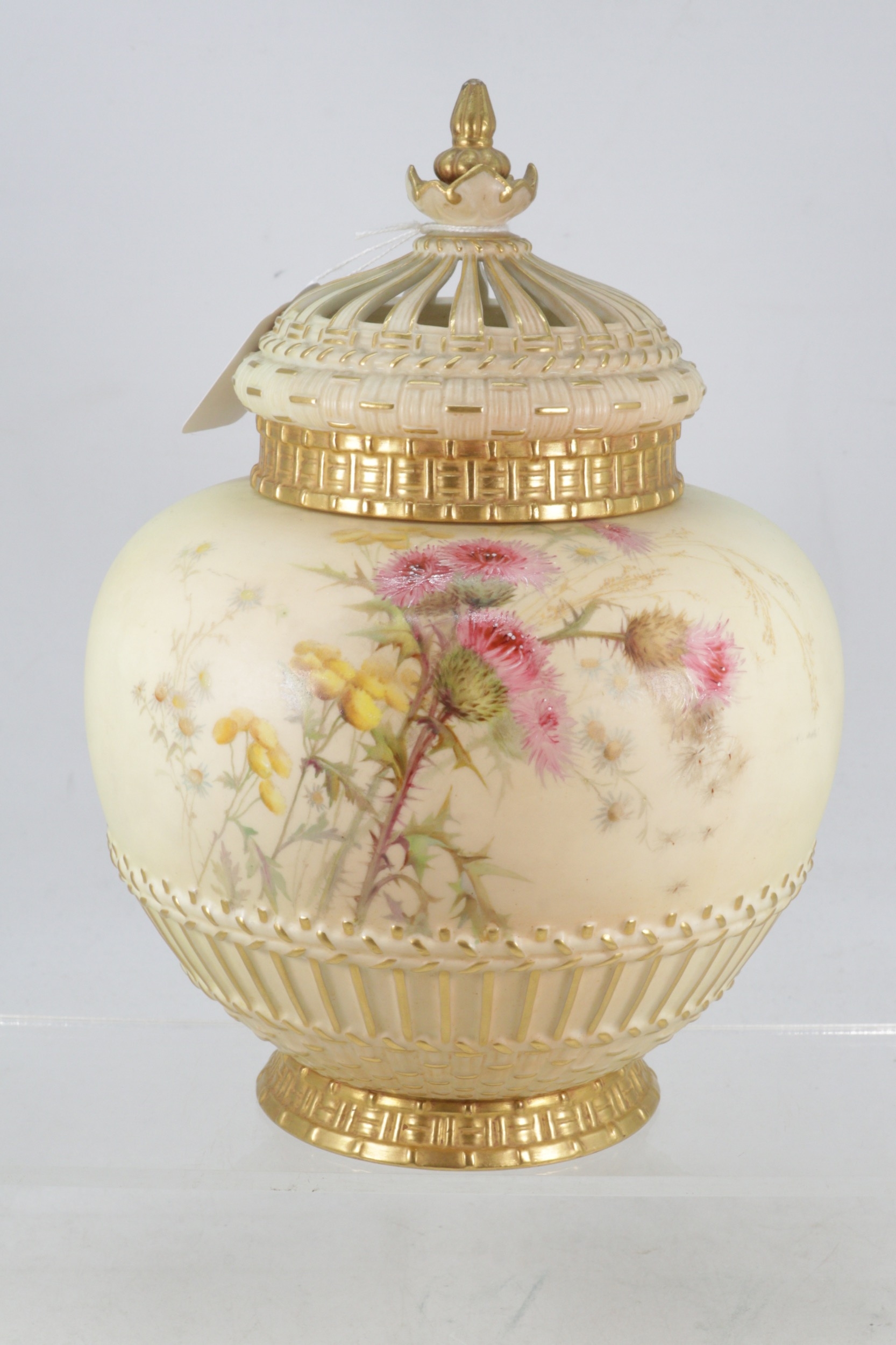 Royal Worcester large ginger jar with lattice worked cover (approx. 25cm tall)