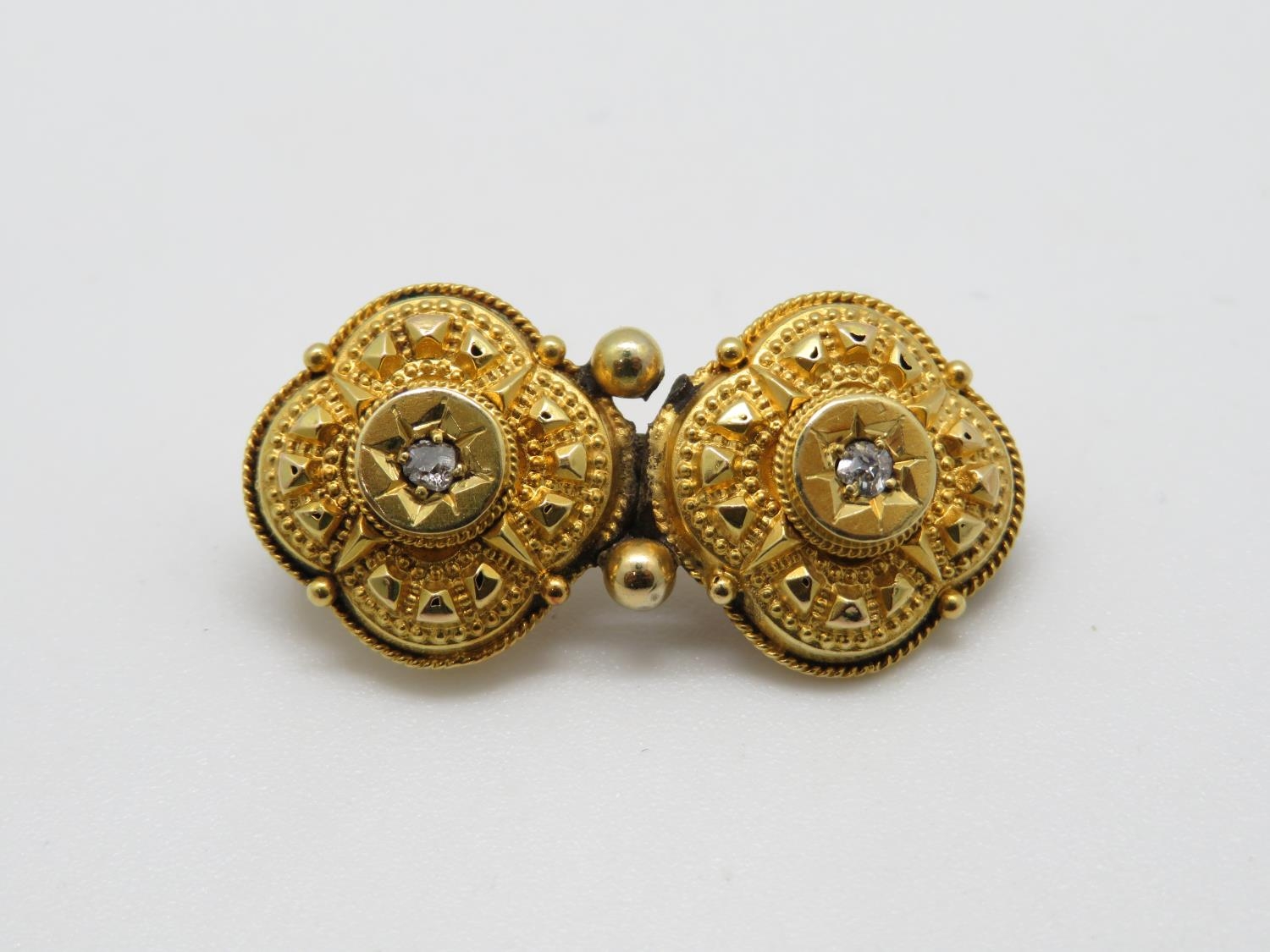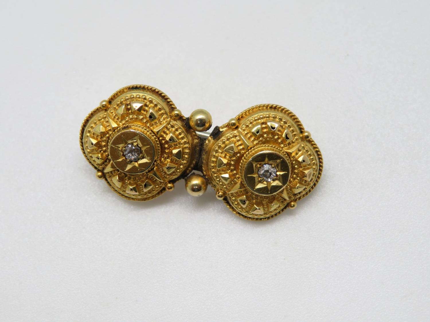 Victorian converted high carat earrings made into brooch with diamond settings