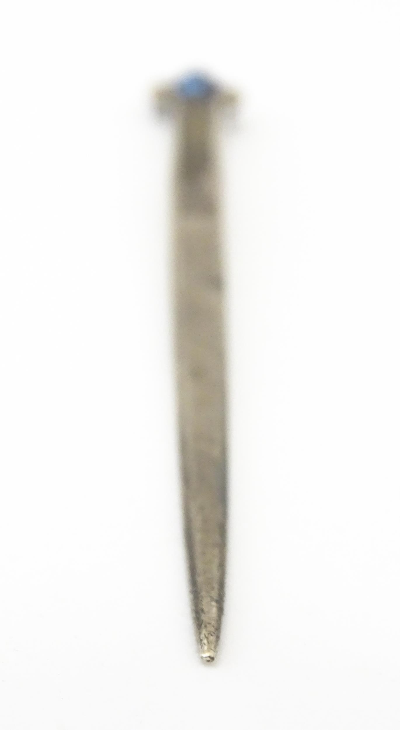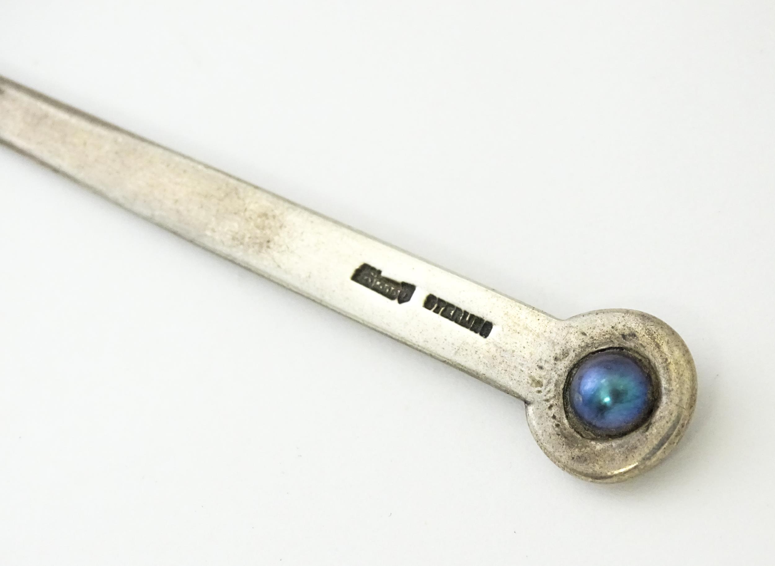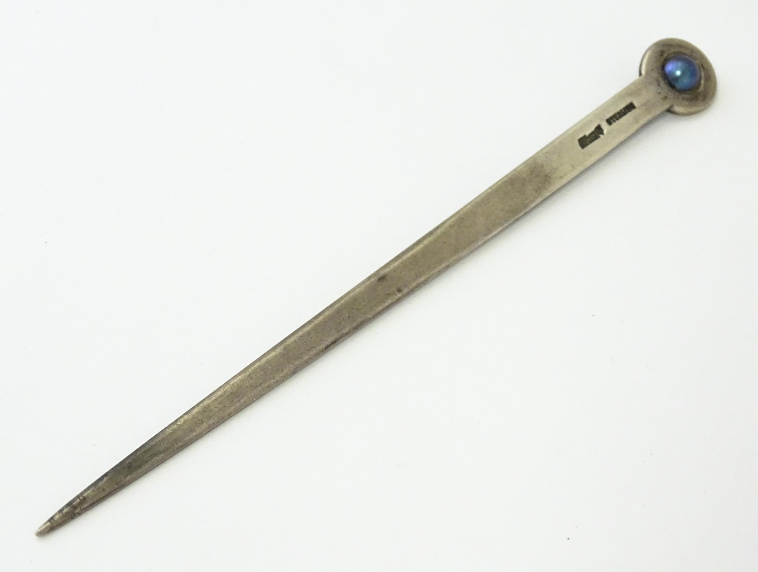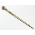 A sterling silver letter opener set with blue pearl detail. Approx. 5 1/4" long