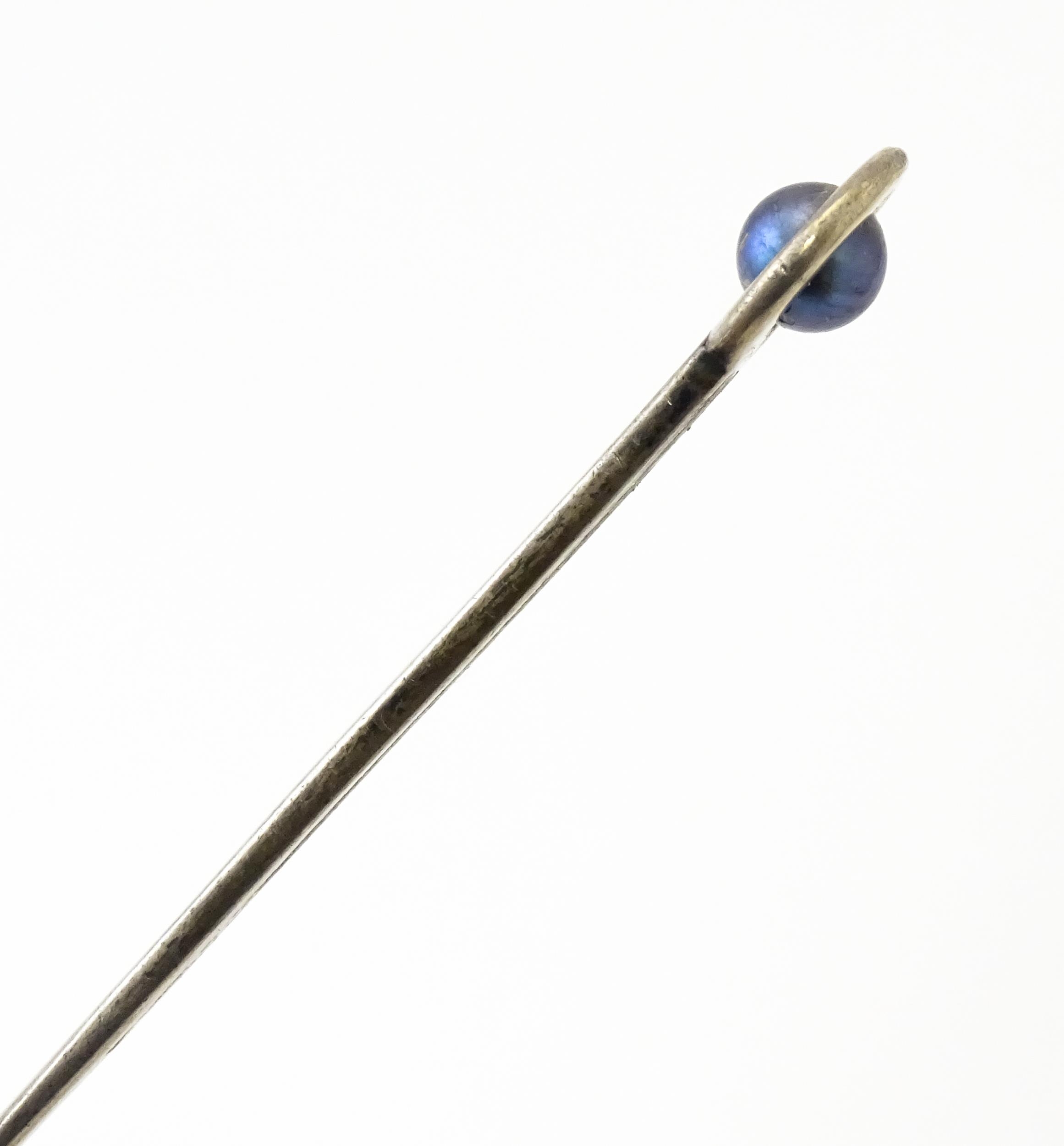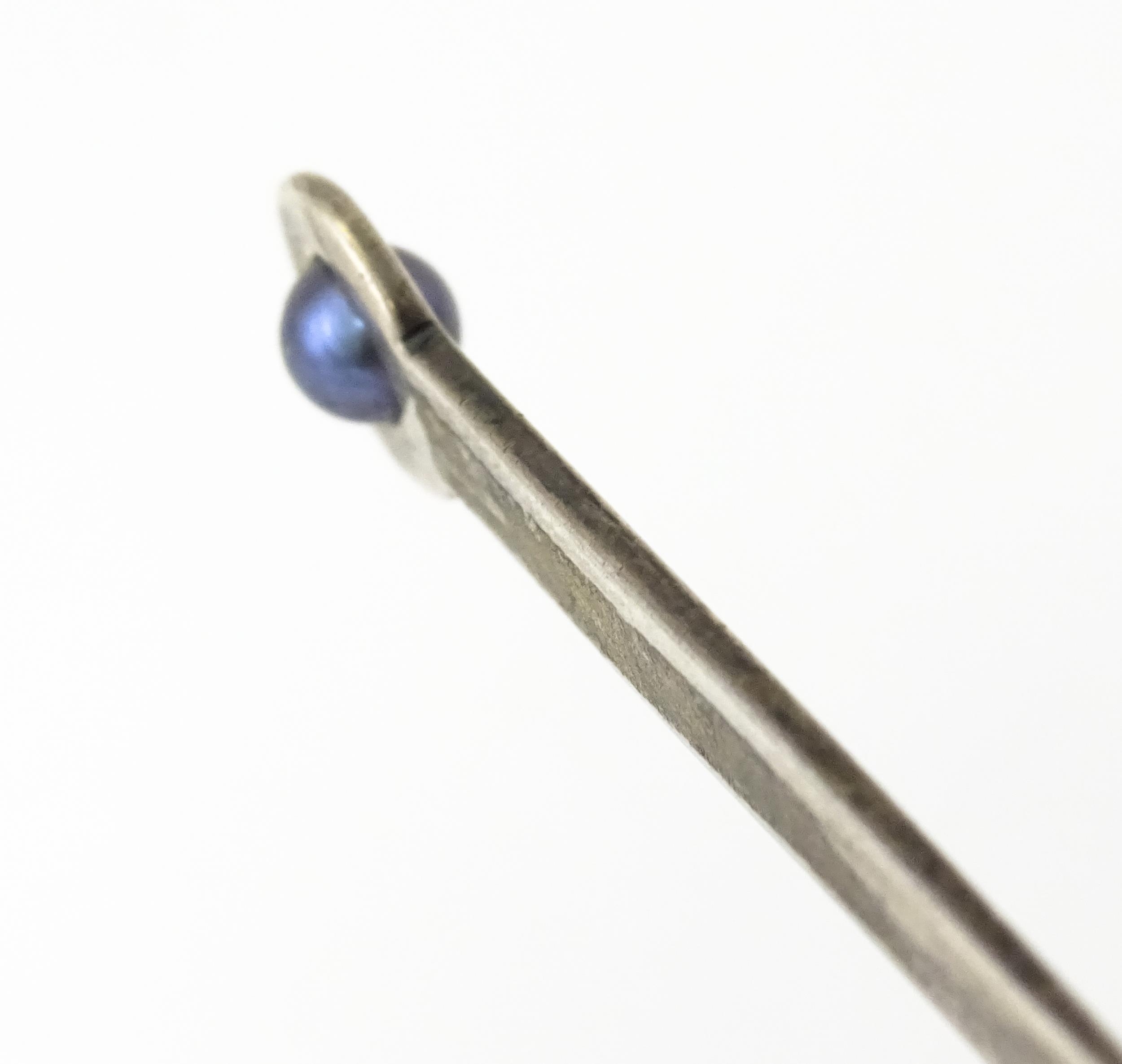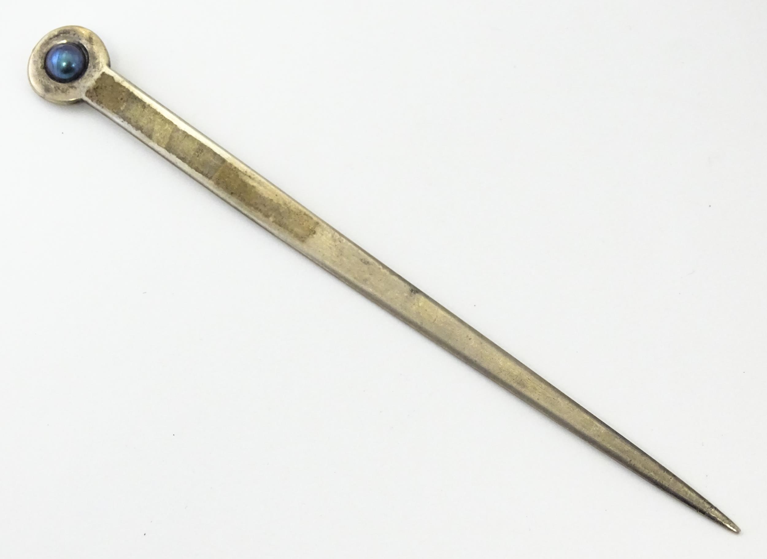 A sterling silver letter opener set with blue pearl detail. Approx. 5 1/4" long