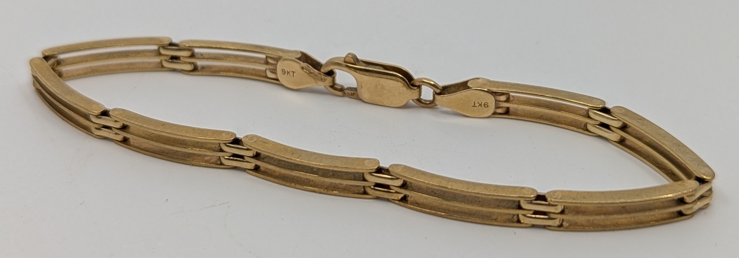 A 9ct gold three bar design bracelet,