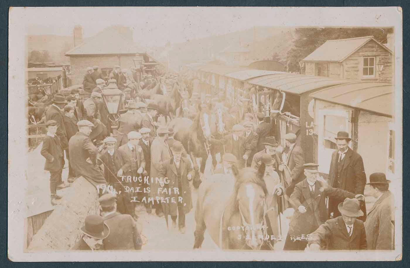 Wales. Coln. in 16 flip top photo albums . A comprehensive coln. of Lampeter with RPs throughout of street scenes, events incl. Dalis fair (several see photo)), scouts, good selection of military (some damage) incl. Yeomanry band, processions and departure from station etc. Funeral, Armistice day, elections, school groups, agricultural show, fete and gymkana, fat stock sale, fishing, churches, chapels etc. Teifi valley incl. Llanddewi Breffi, Llangybi, Pontrydfendigaid village scenes and fair, Ystradmeurie incl. events, Strata Florida station (cnr. crease), Llanllwni area with RP street scenes, pub, station etc. Llanybyther incl. RP street scenes, station, events, chapels, sanatorium etc. Cribyn, Llanwnen, meet at Moyddin. Many valuable cards throughout so needs viewing. Few photos noted. Qty. approx. 1400 (B)