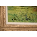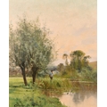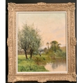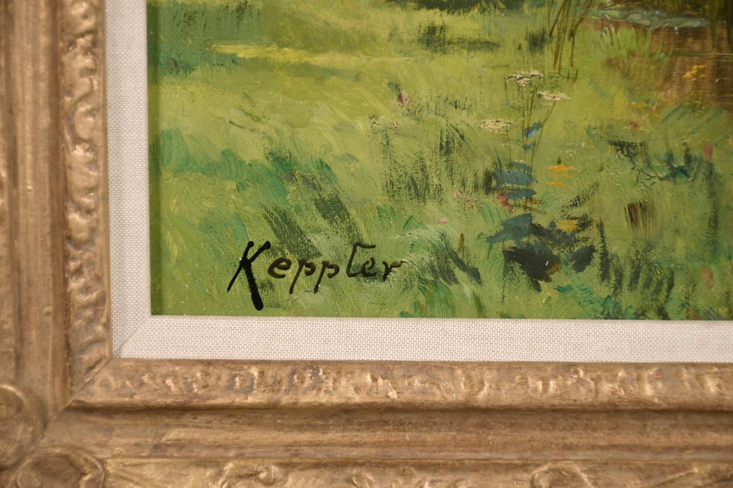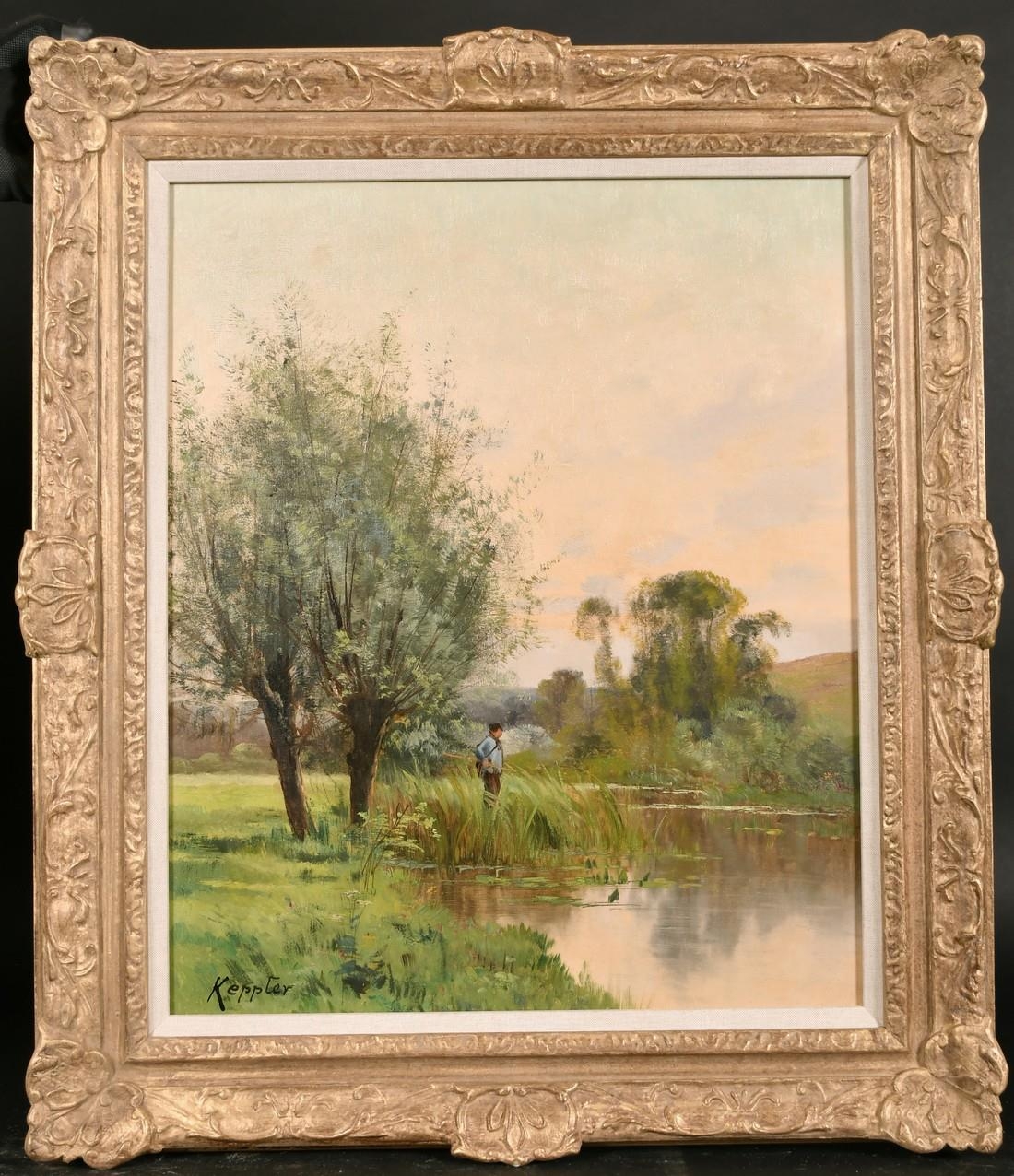 Early 20th century French school, An angler by a river at dusk, oil on canvas, signed 'Keppler'?, 21.5" x 18".