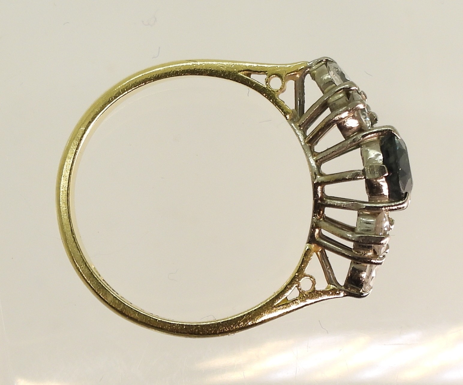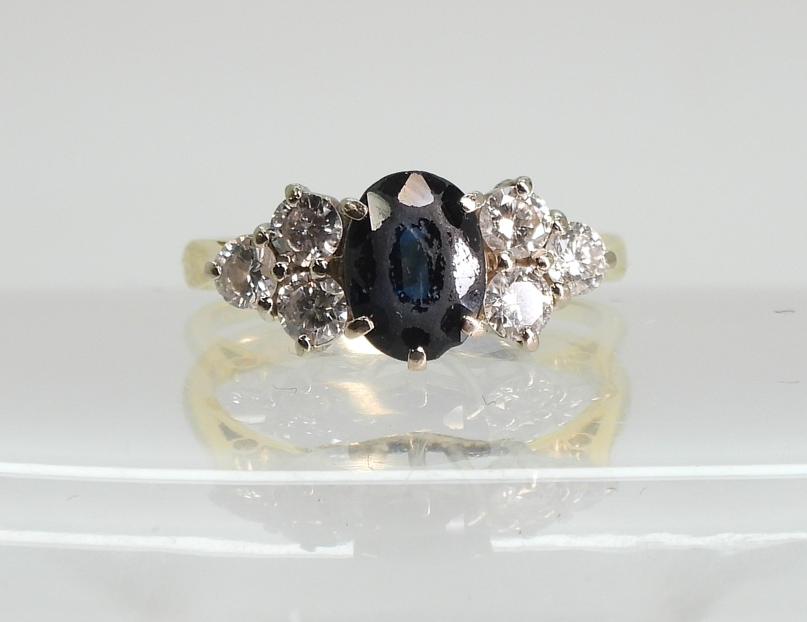 An 18ct gold sapphire and diamond cluster ring, size N, weight 4gms