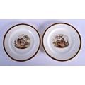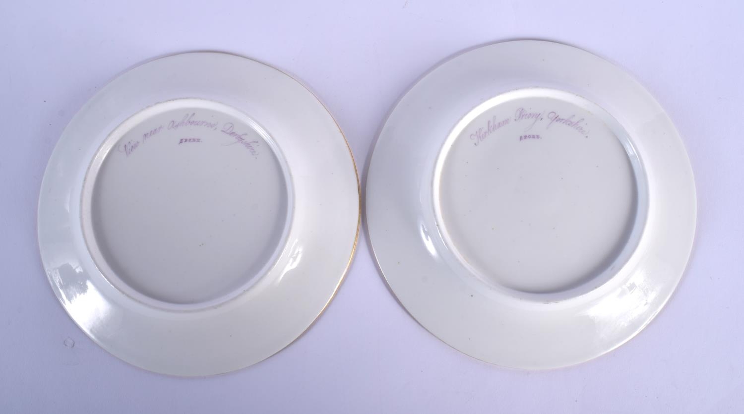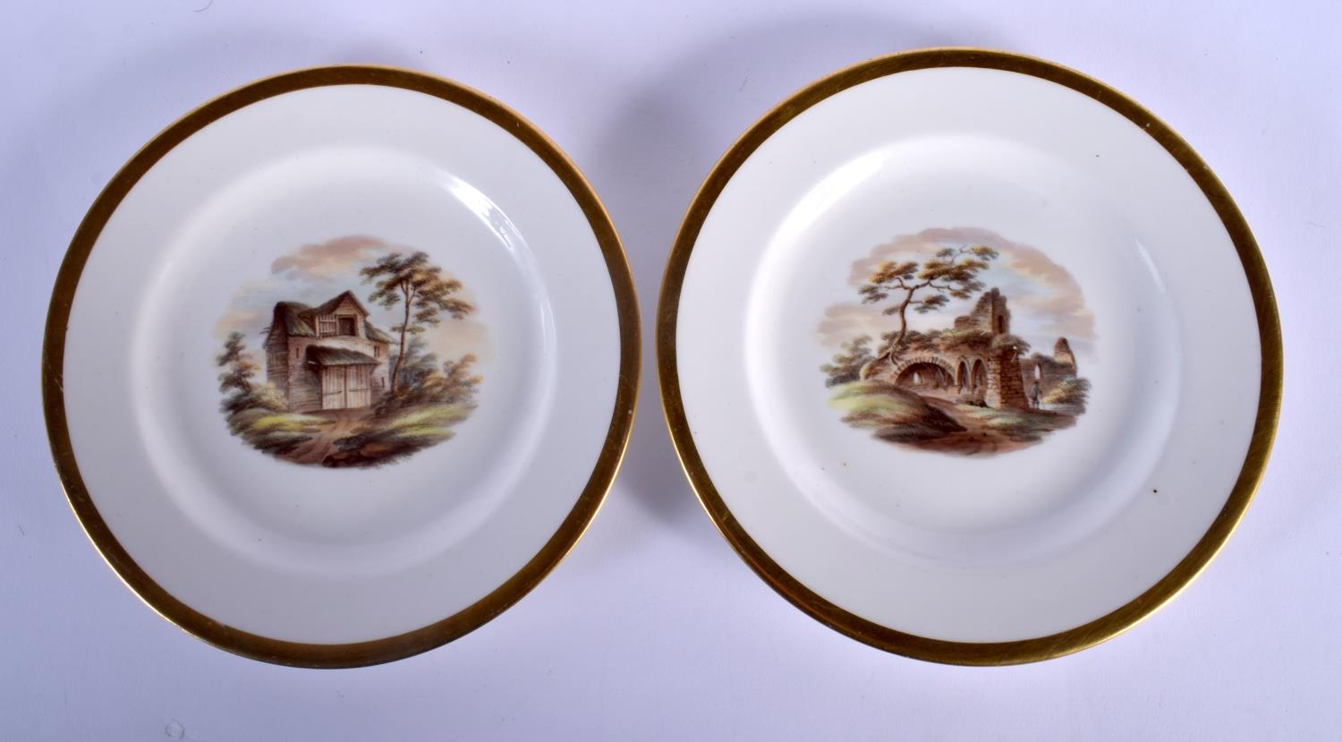 SPODE PAIR OF LANDSCAPE PAINTED PLATE, ONE WITH KIRKHAM PRIORY, YORKSHIRE AND THE OTHER WITH VIEW NEAR ASHBOURNE, DERBYSHIRE, BOTH MARJED SPODE IN PURPLE SCRIPT. 18cm diameter (2)