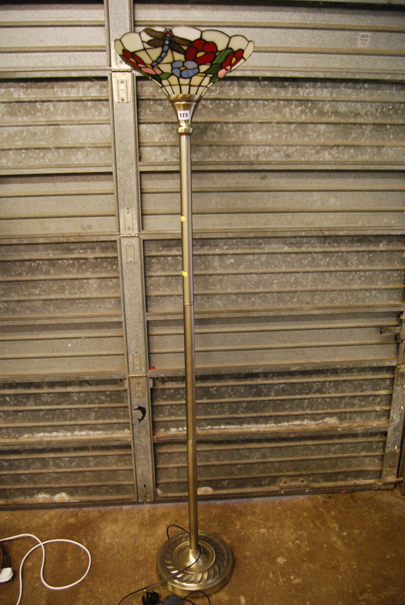 MODERN UPLIGHT WITH TIFFANY STYLE DRAGONFLY LAMPSHADE