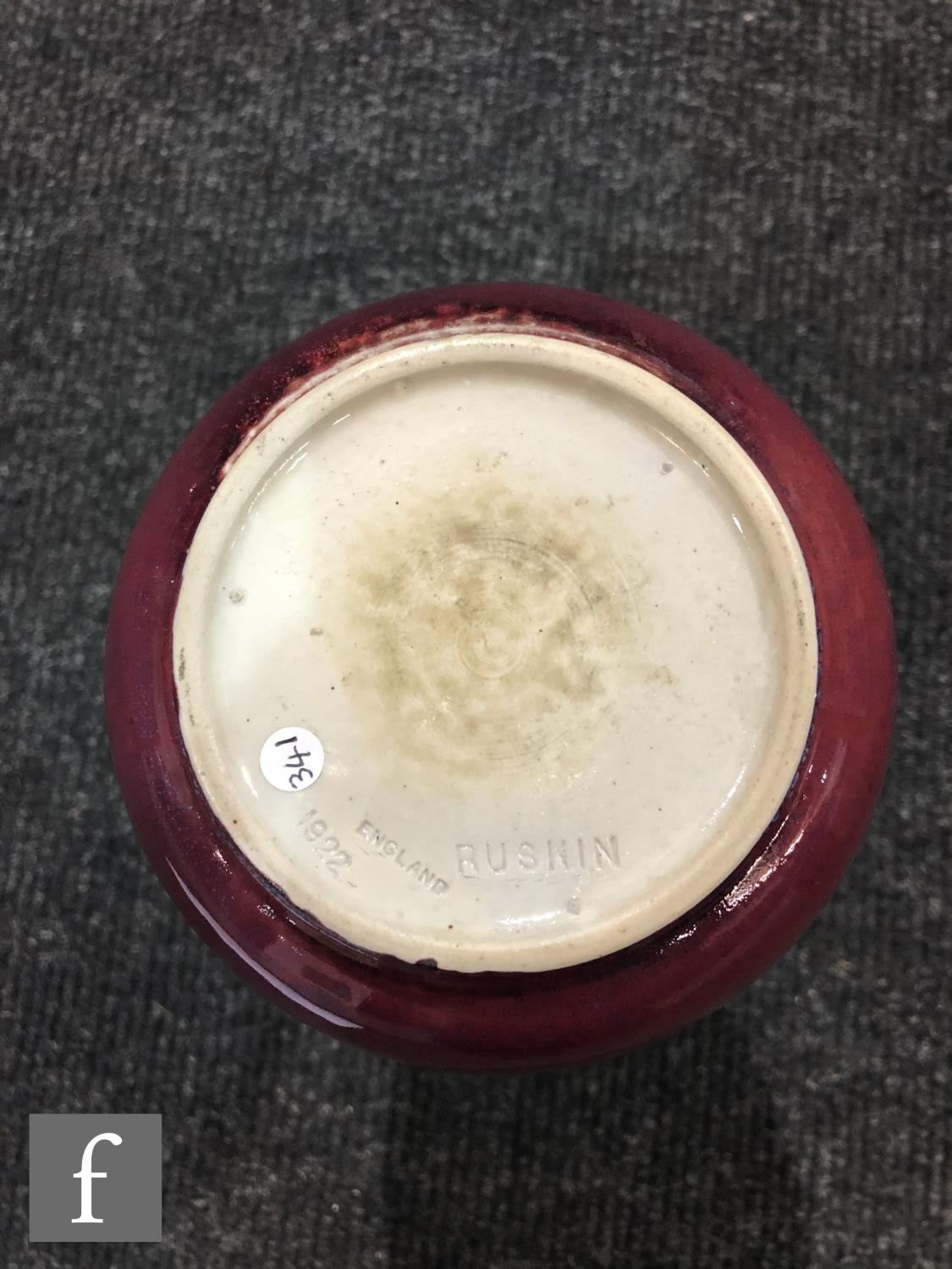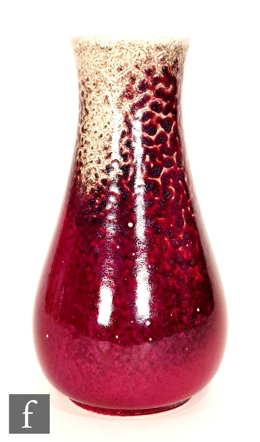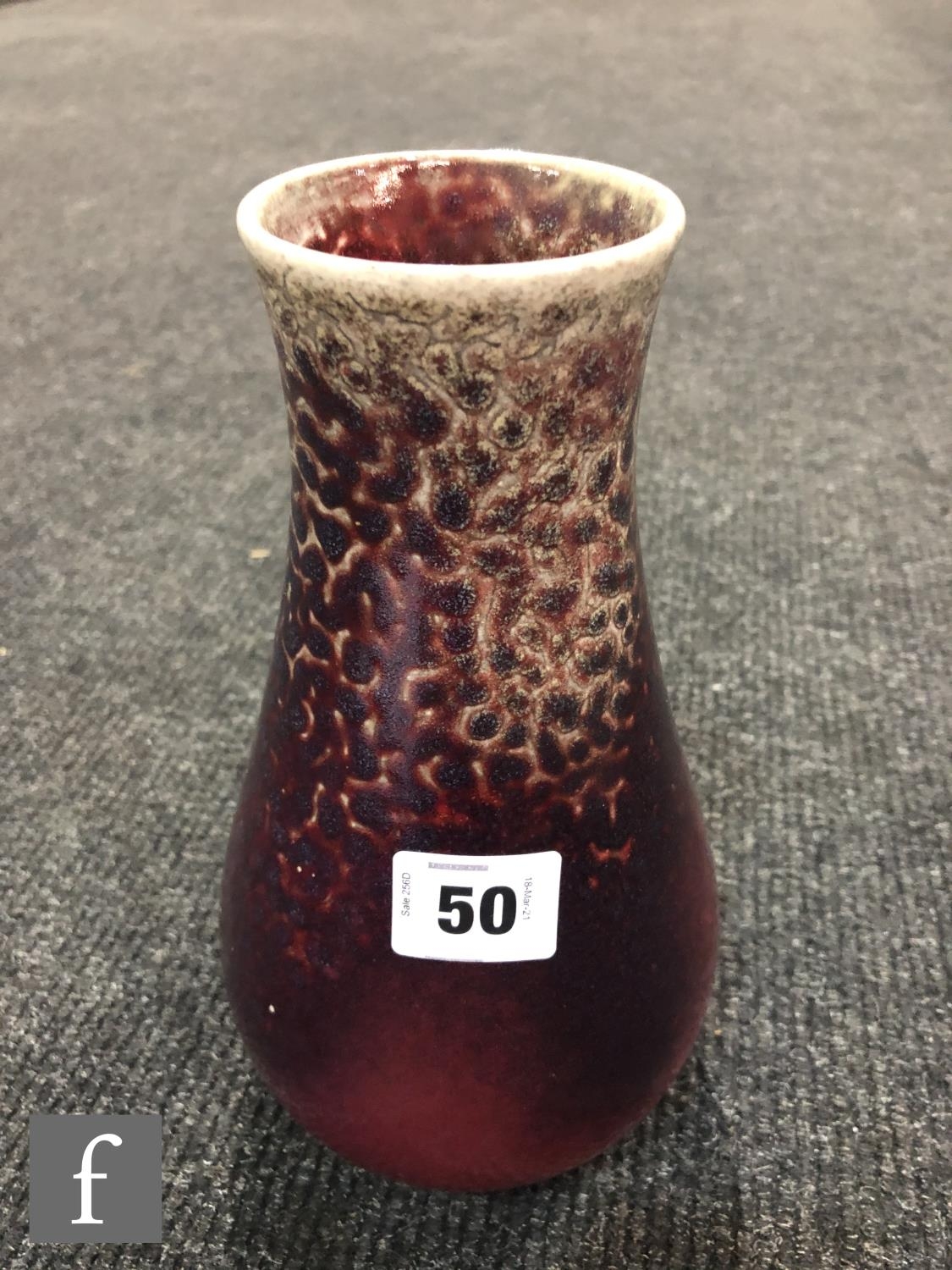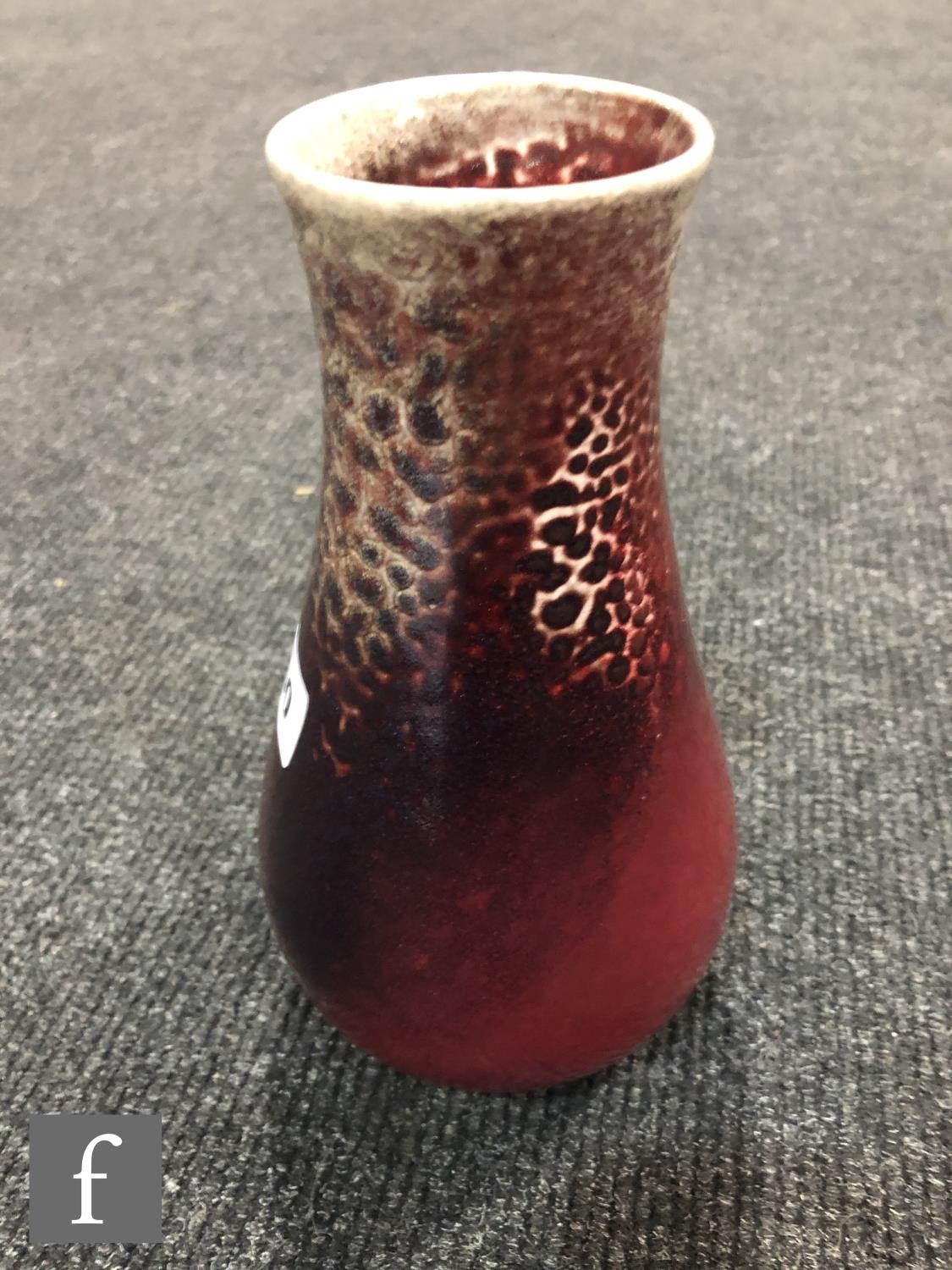 Ruskin Pottery - A high fired vase of tapering form decorated in a Sang de Beouf with light fissuring and deep red patches, impressed mark and dated 1922, height 22cm.