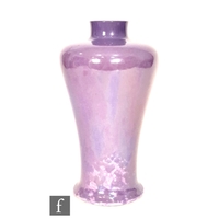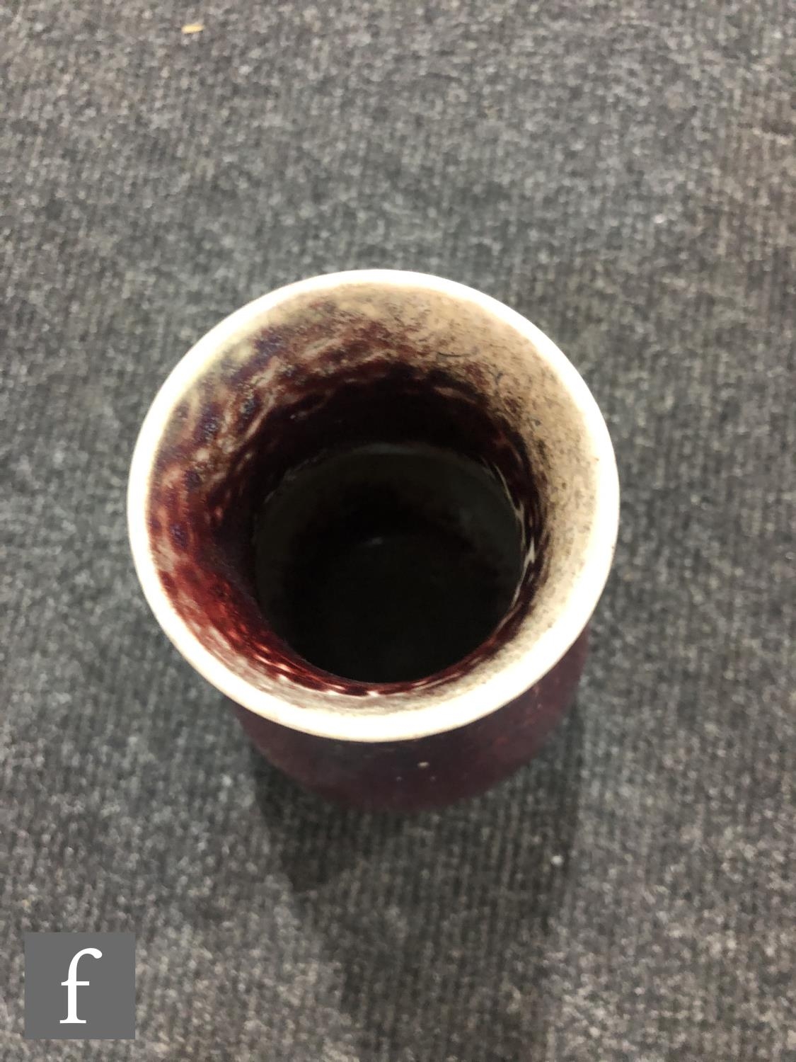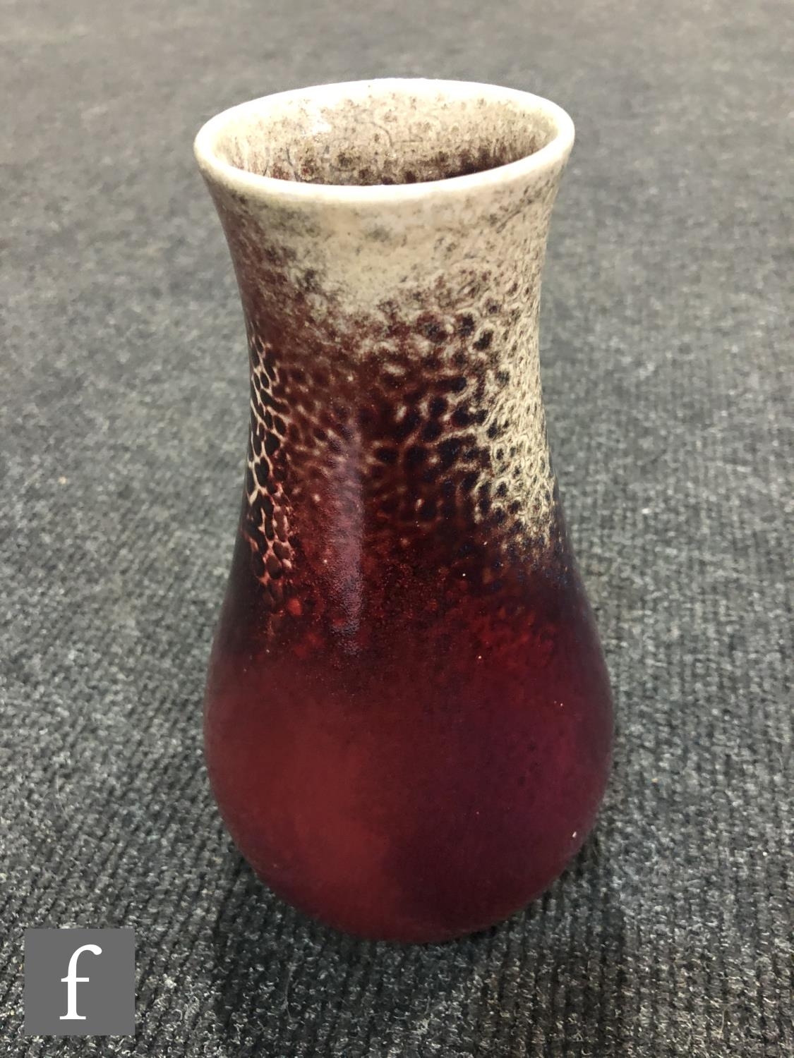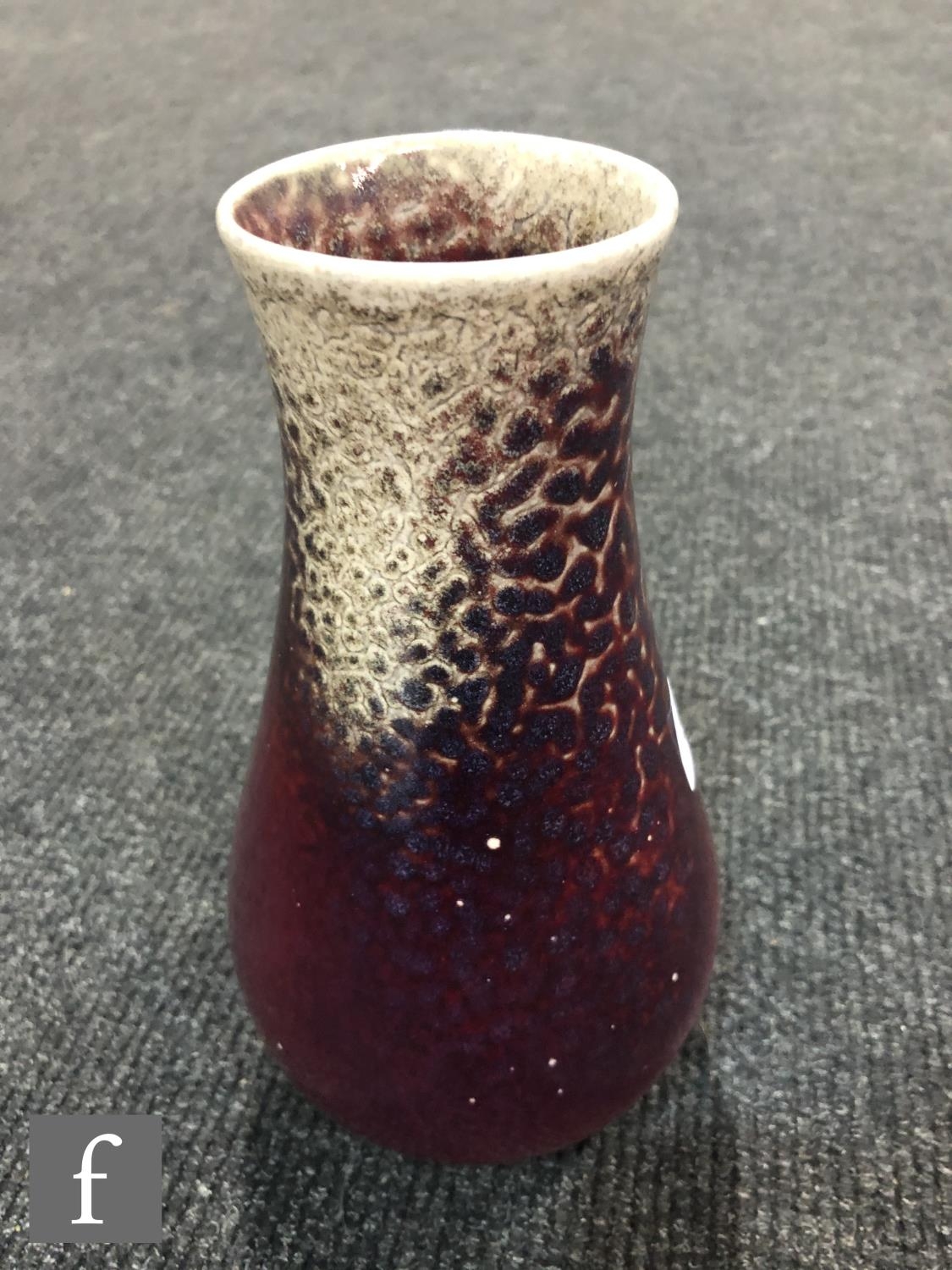 Ruskin Pottery - A high fired vase of tapering form decorated in a Sang de Beouf with light fissuring and deep red patches, impressed mark and dated 1922, height 22cm.