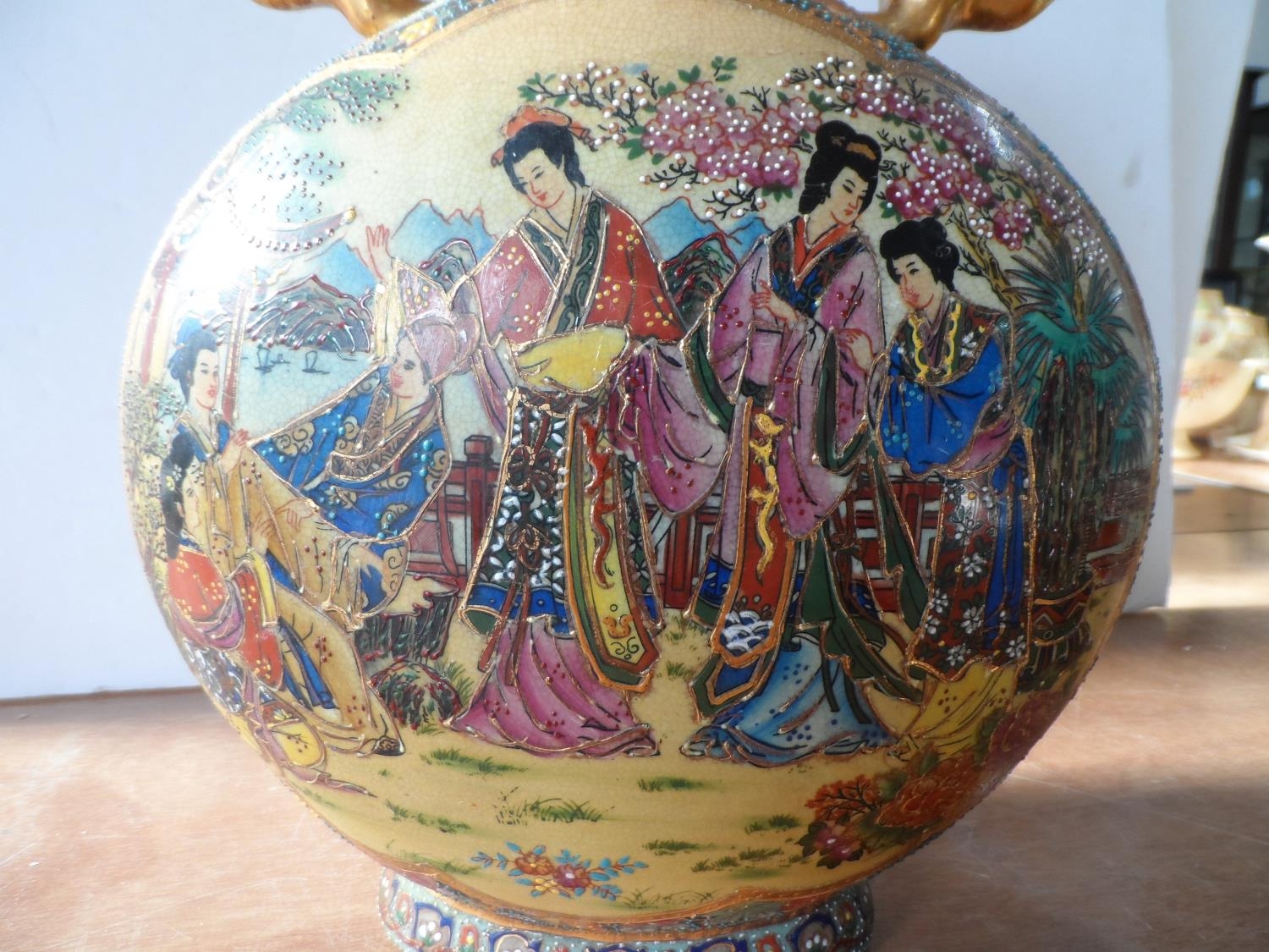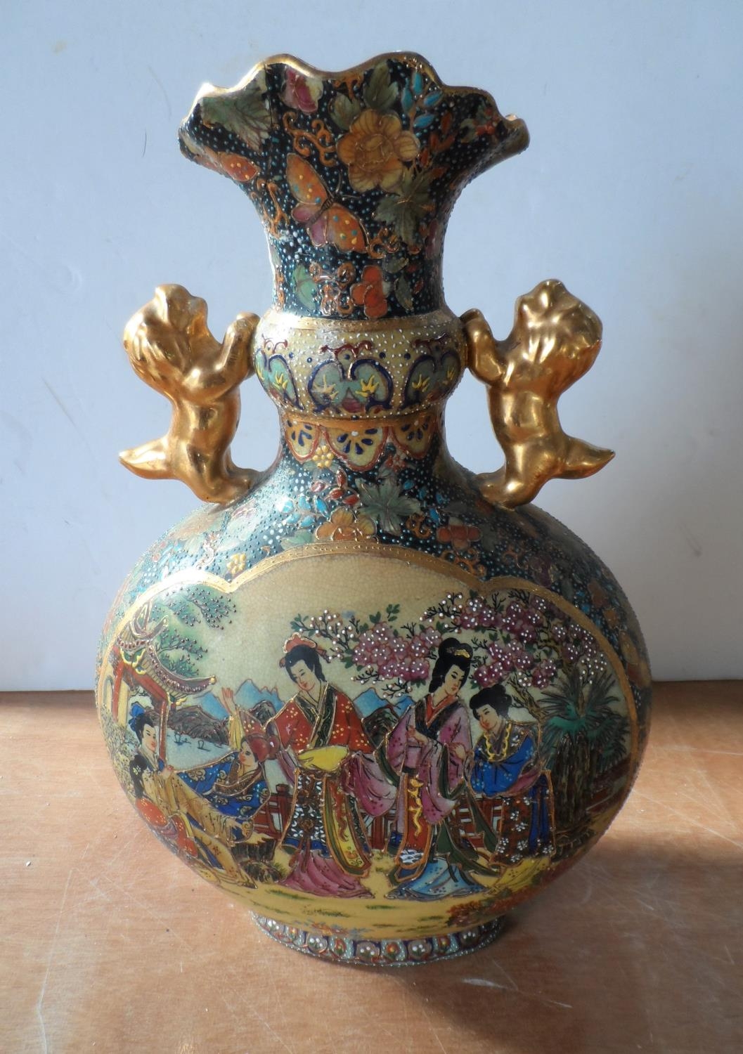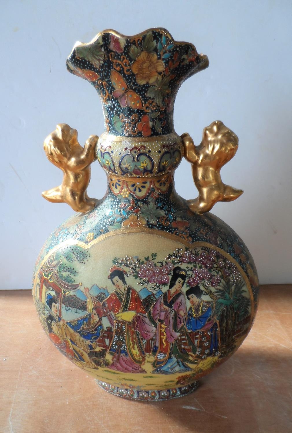 Asian 20thC highly decorated two-handled vase (a/f),36 cm tall