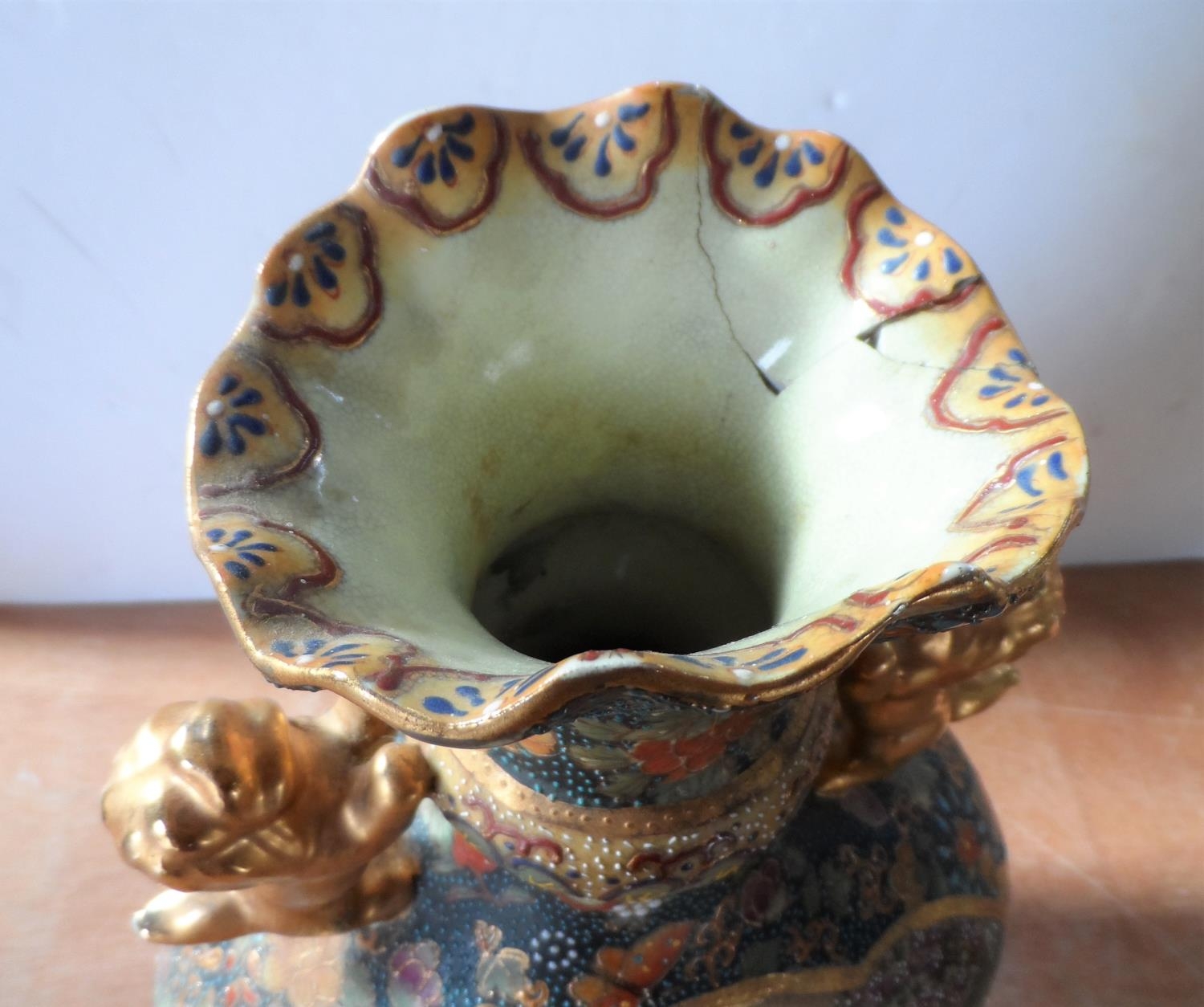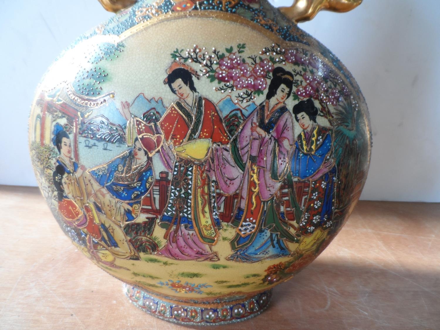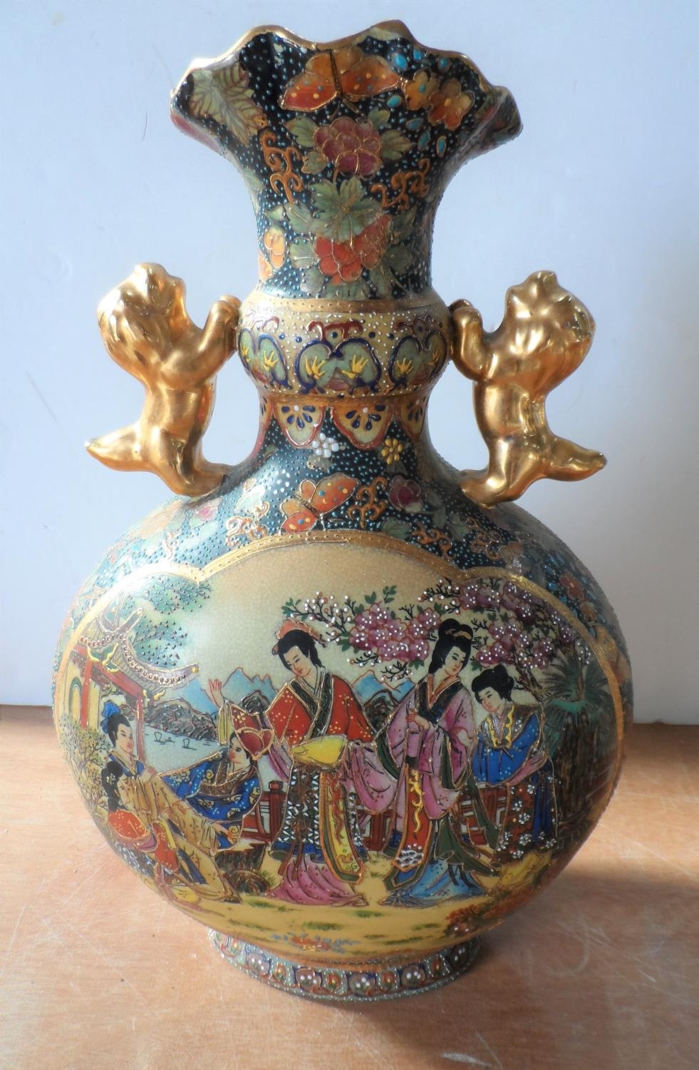 Asian 20thC highly decorated two-handled vase (a/f),36 cm tall
