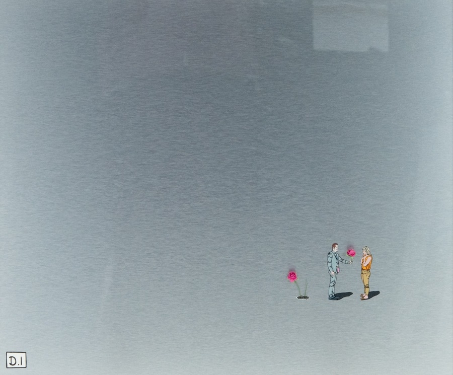 ‘Man With Flower III’ Signed bottom left, gallery label to verso