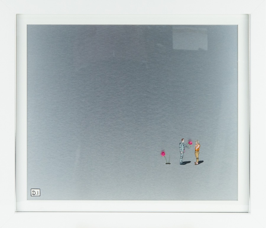 MIXED MEDIA ON ALUMINIUM BEHIND GLASS